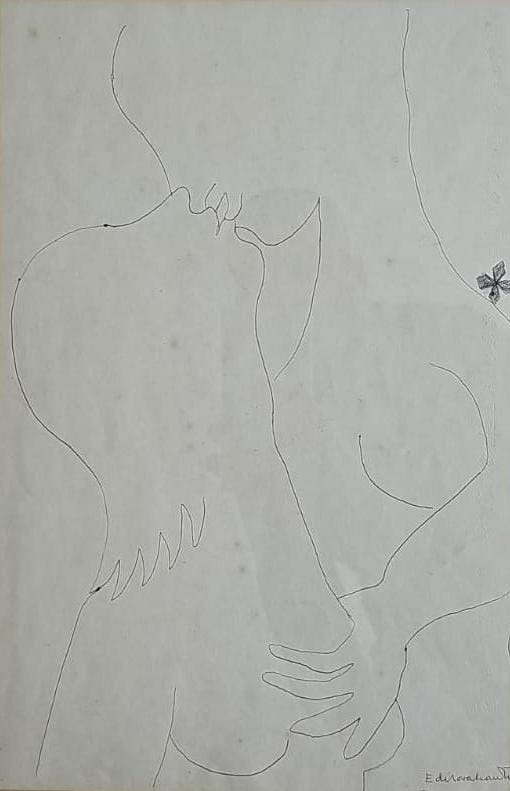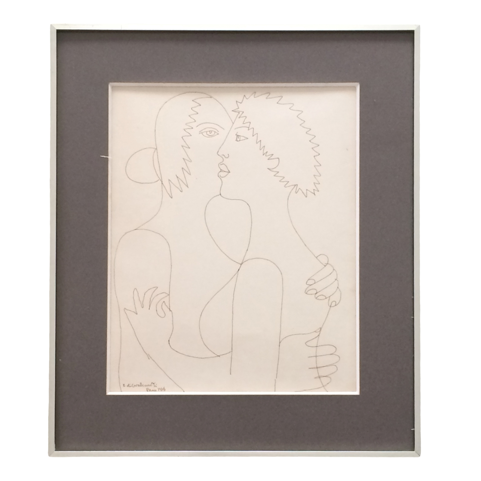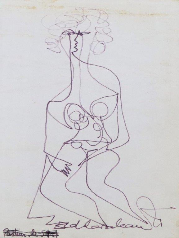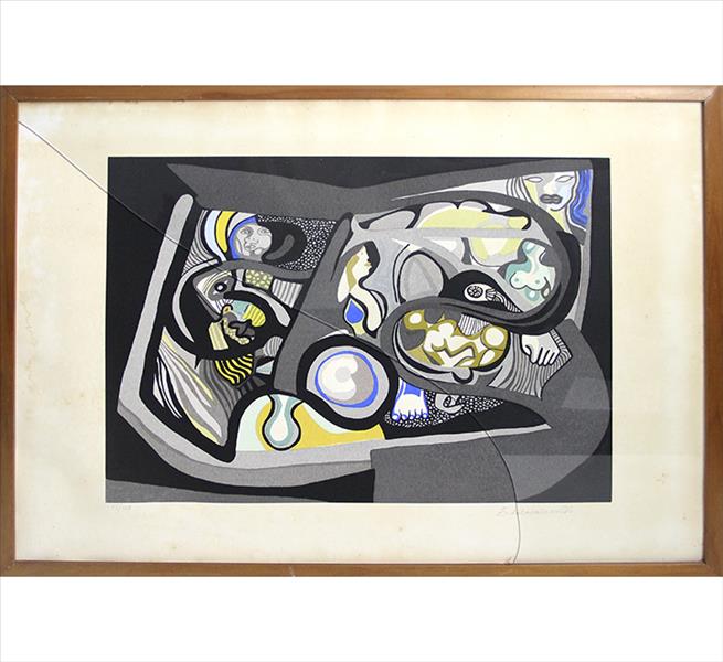 E. DI CAVALCANTI, Composição com Figuras, Técnica Mista sobre Papel, ACID, 29 x 20cm (m.i). Datado 1966