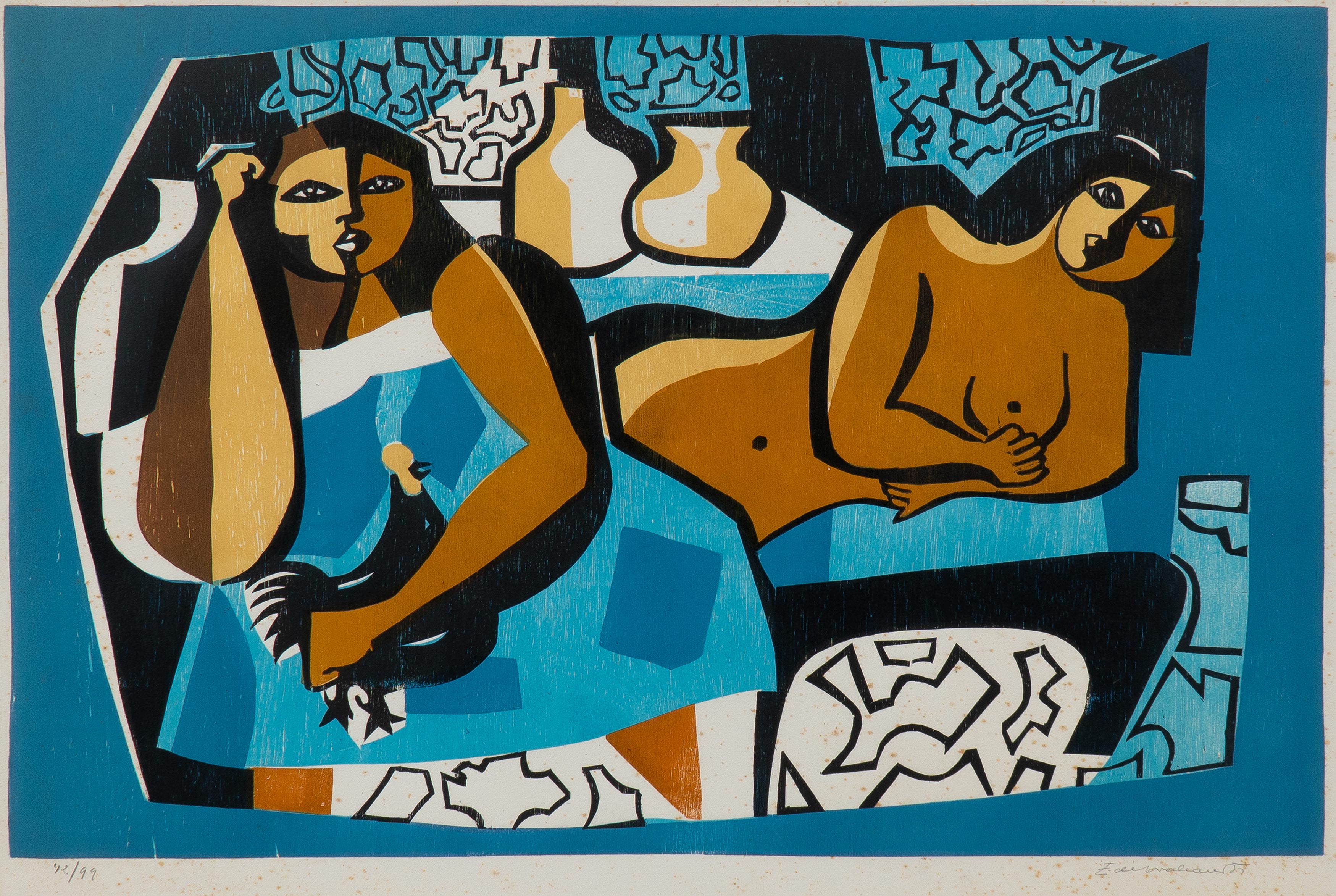 Edi Cavalcanti - Mulatas - 49 x 64 cm - Guache sobre papel - Assinatura canto inferior direito e Data 1966