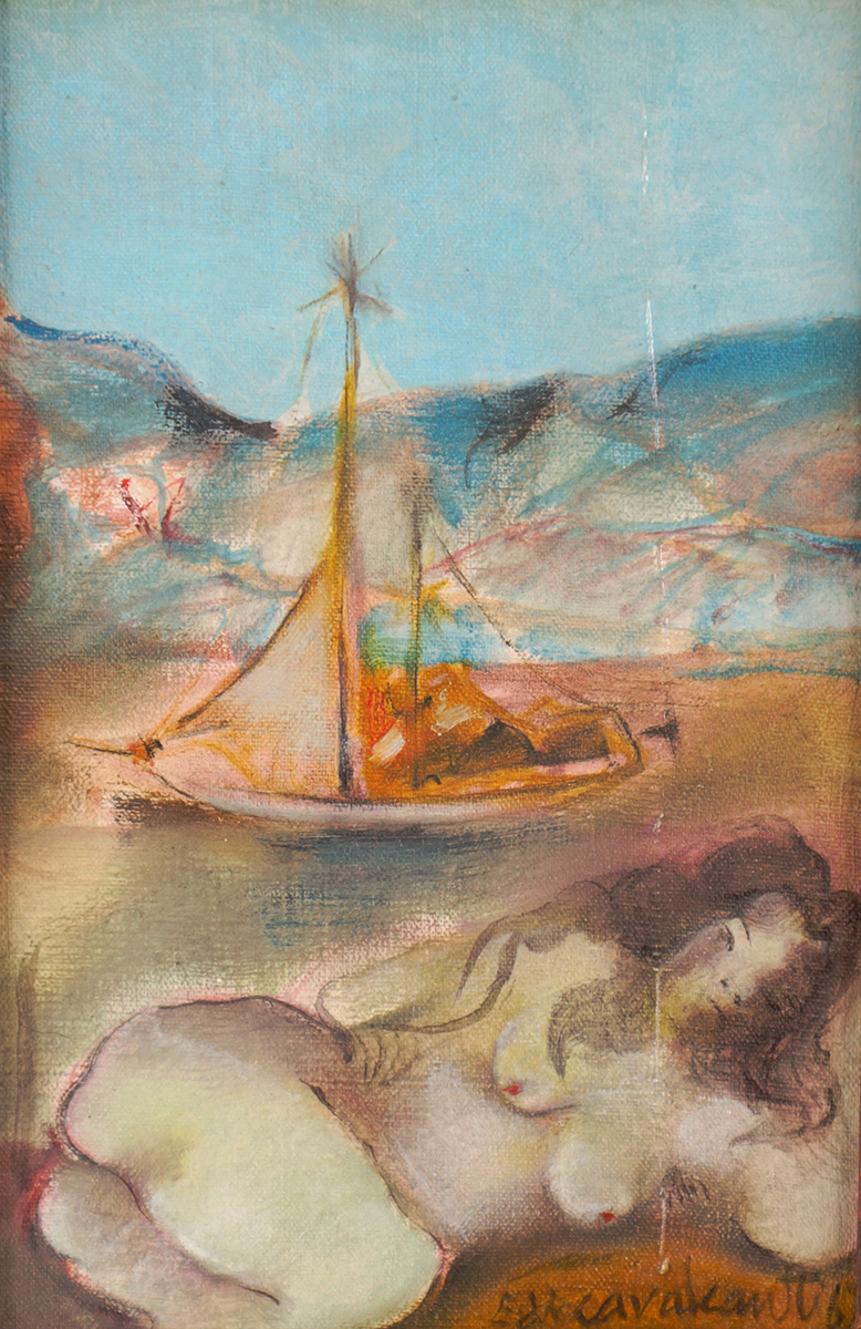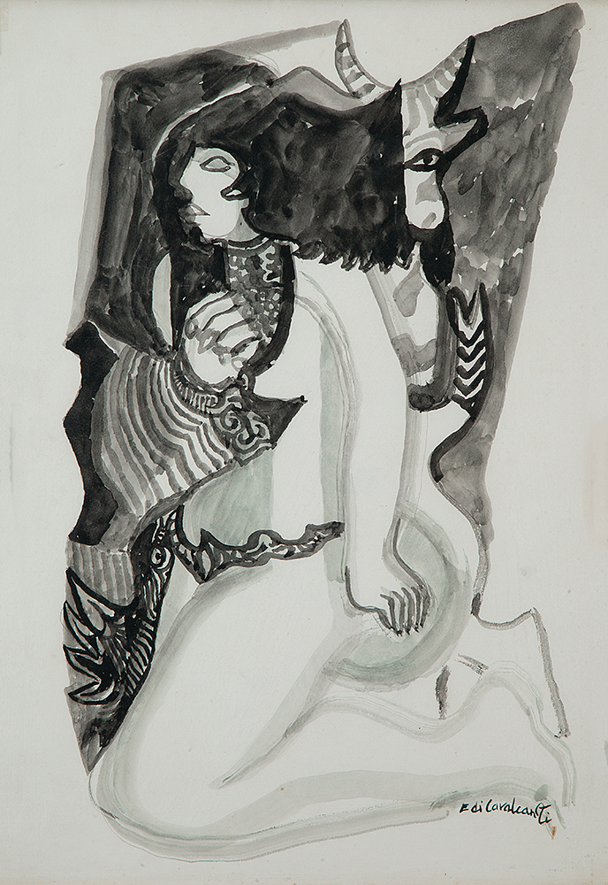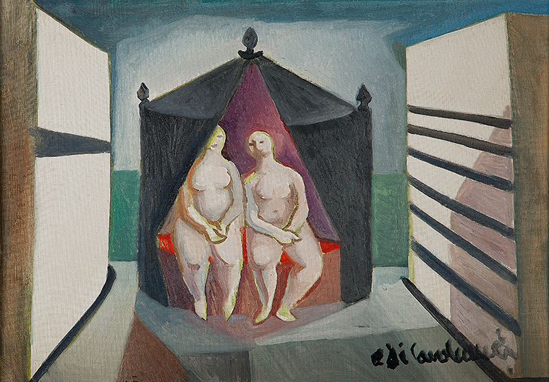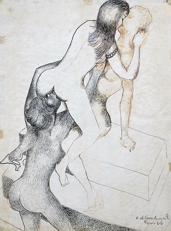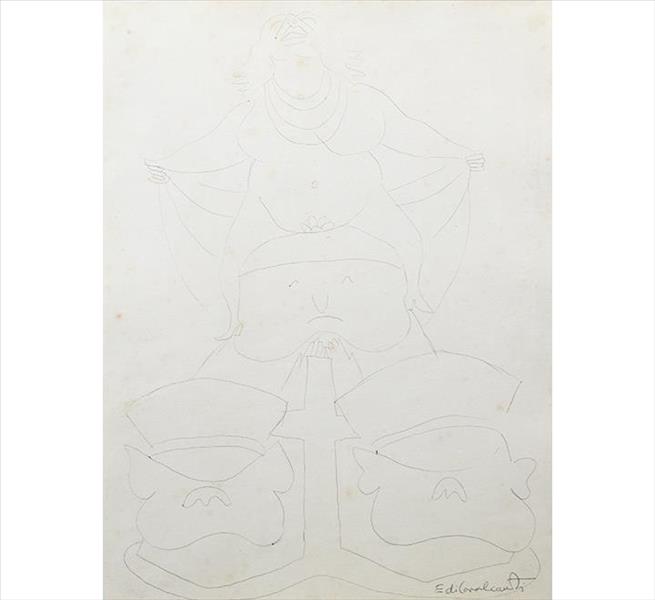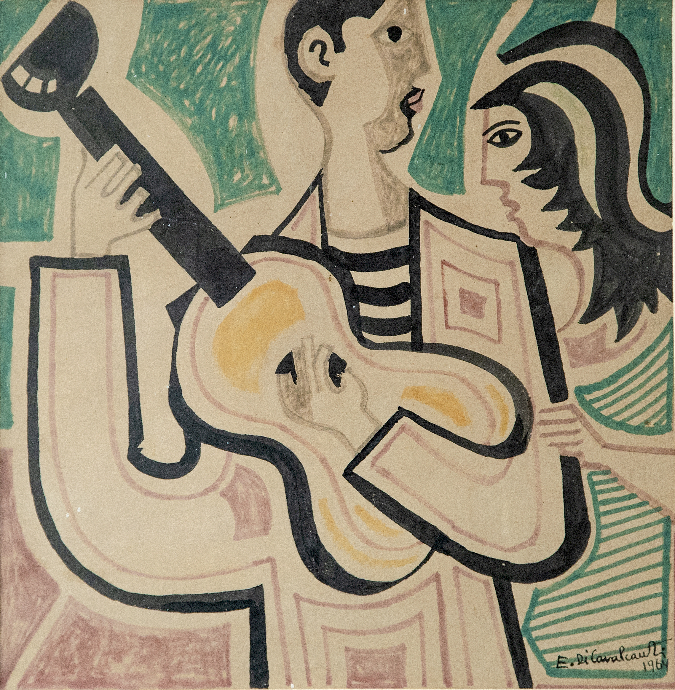 E. DI CAVALCANTI, Composição com Figuras, Técnica Mista sobre Papel, ACID, 29 x 20cm (m.i). Datado 1966