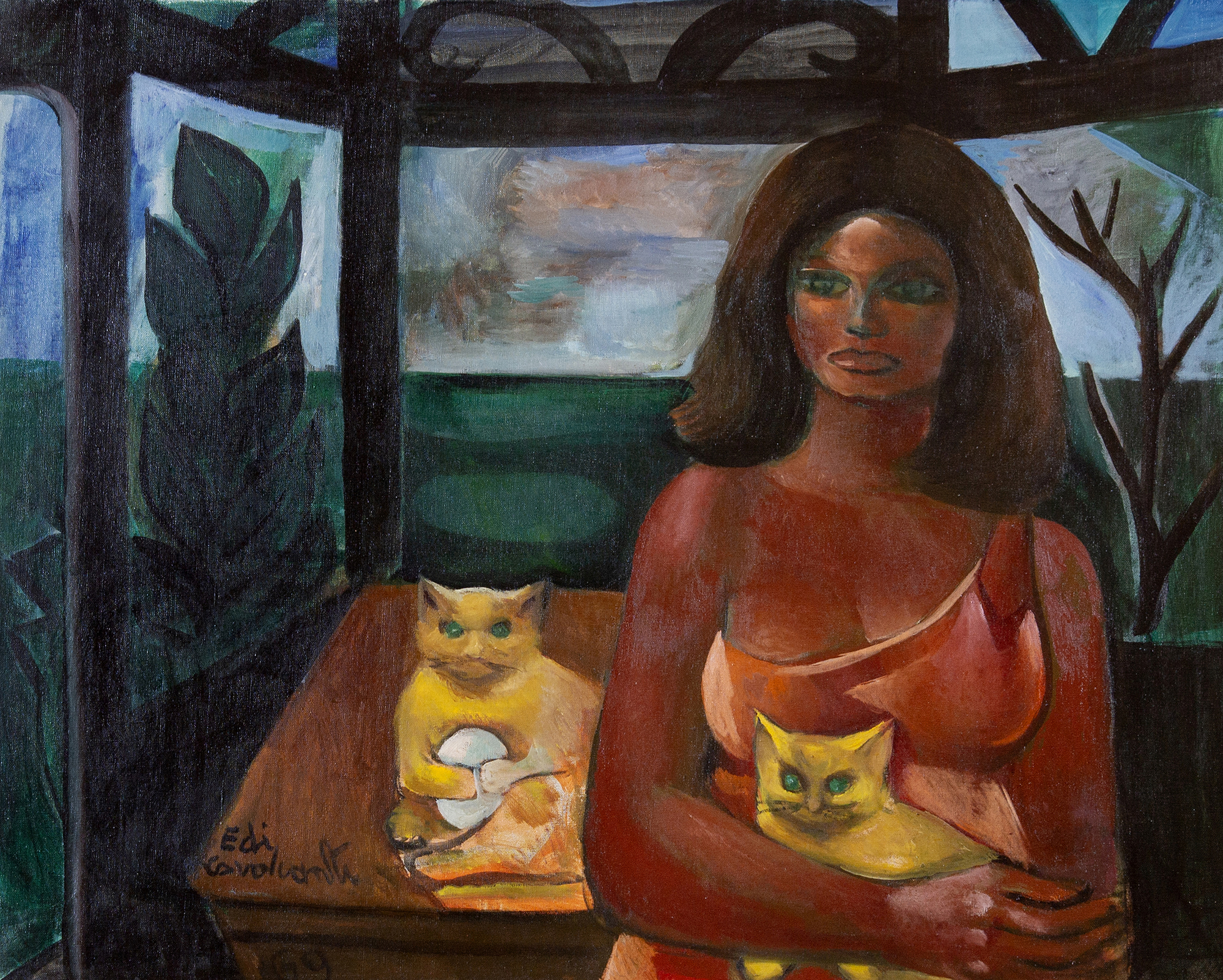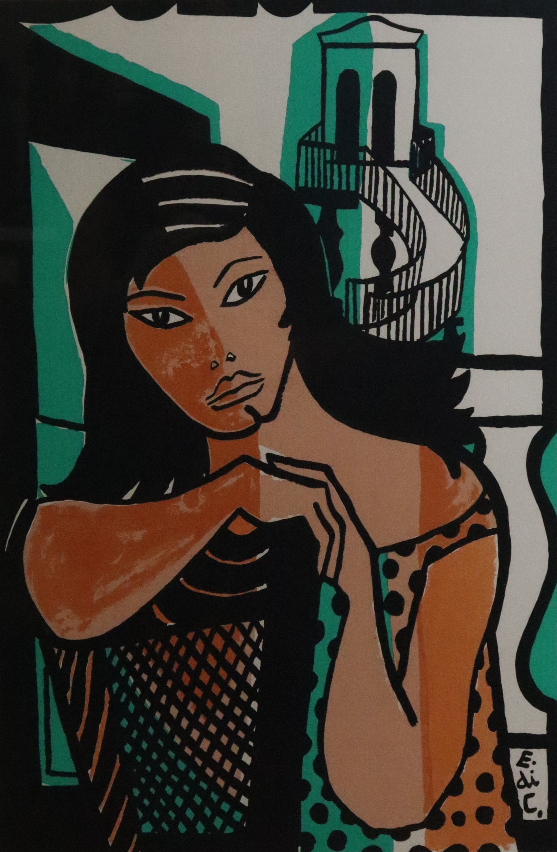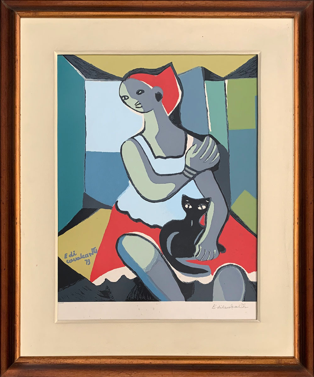 Emiliano Di Cavalcanti - Mulher com gato. Serigrafia, 50x40 cm, 1973, A.C.I.E. (serigrafada). Com moldura
