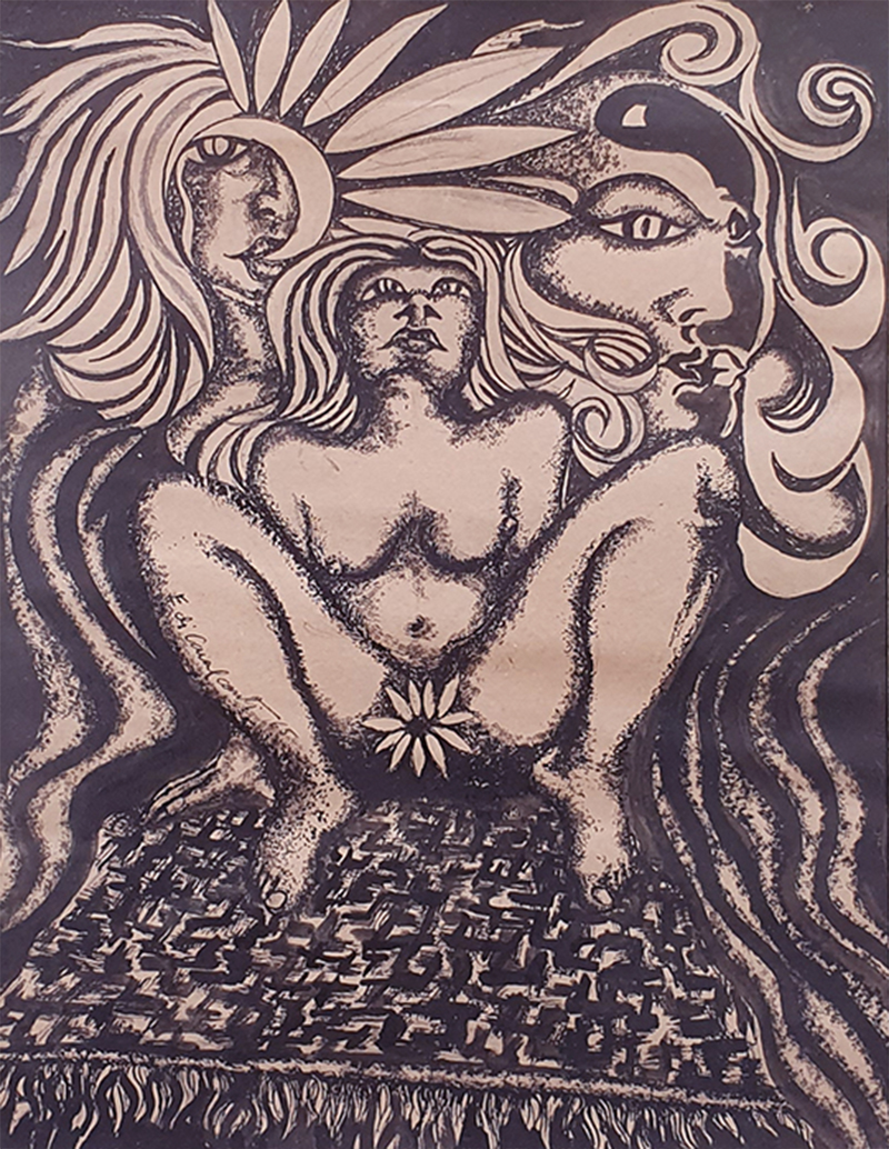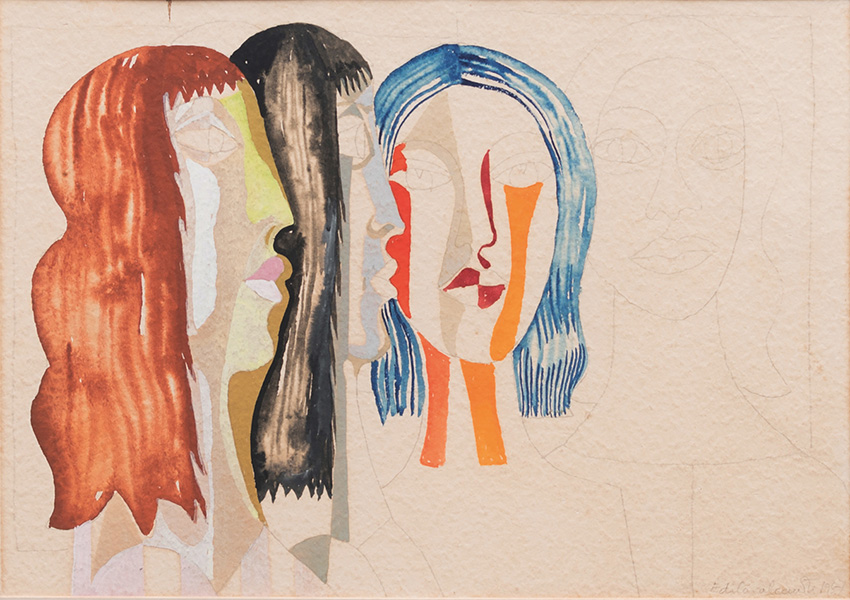 Edi Cavalcanti - Mulatas - 49 x 64 cm - Guache sobre papel - Assinatura canto inferior direito e Data 1966