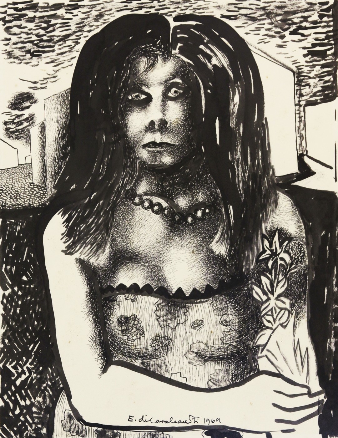 Emiliano Di Cavalcanti - Figura feminina - 1972 - Óleo sobre tela - Assinado canto inferior direito - 73 x 54 cm. Coleção Múcio Bandeira de Mello.