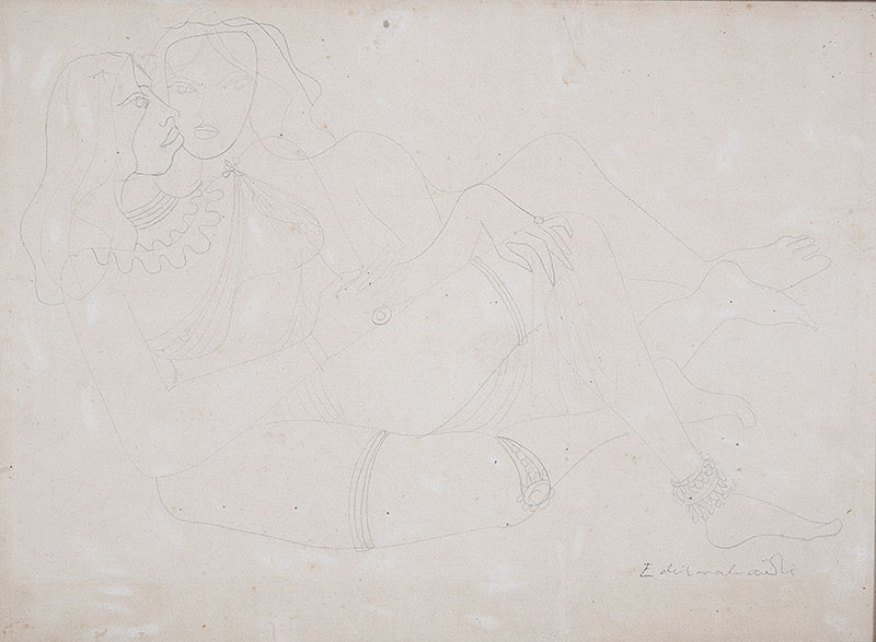 Emiliano Di Cavalcanti - Figura Feminina - Nanquim sobre papel - 29 alt x 21 larg - acid