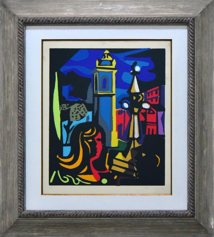 Emiliano Di Cavalcanti - Mulher com gato. Serigrafia, 50x40 cm, 1973, A.C.I.E. (serigrafada). Com moldura