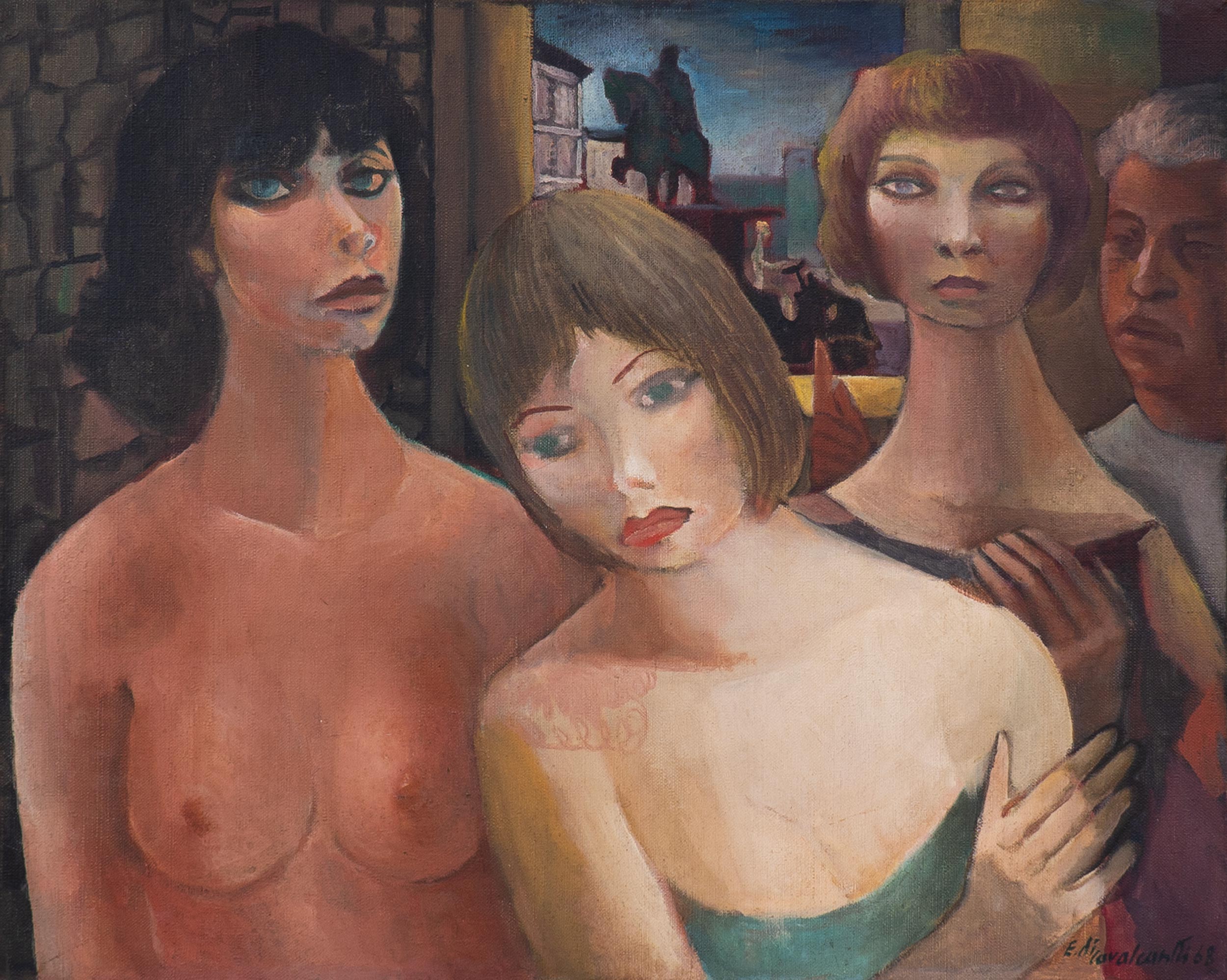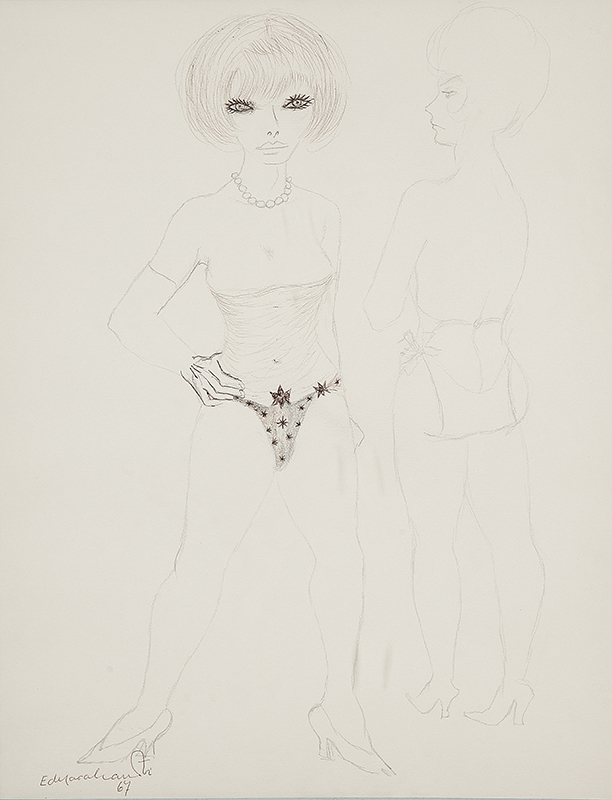 Edi Cavalcanti - Mulatas - 49 x 64 cm - Guache sobre papel - Assinatura canto inferior direito e Data 1966
