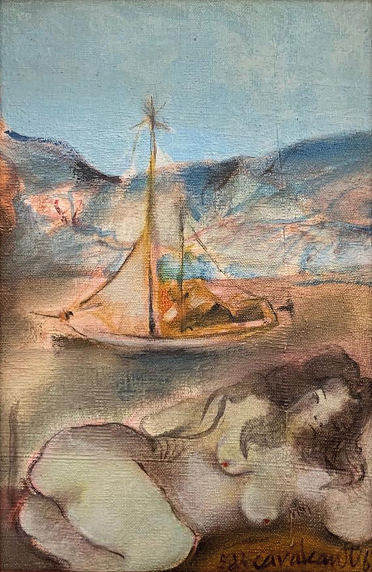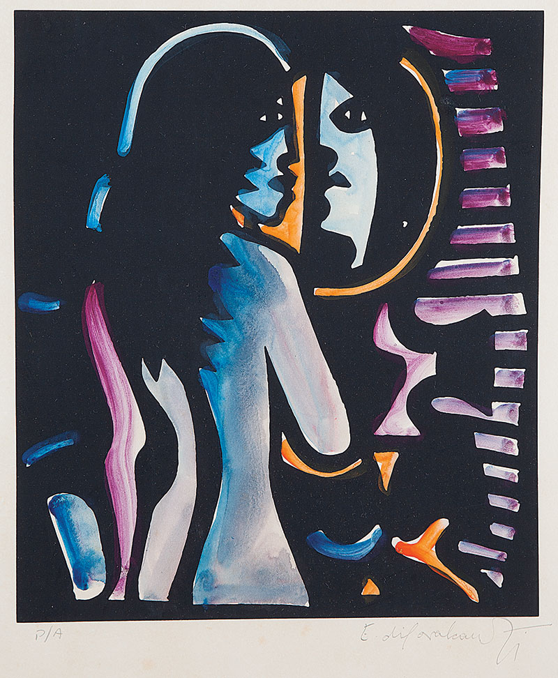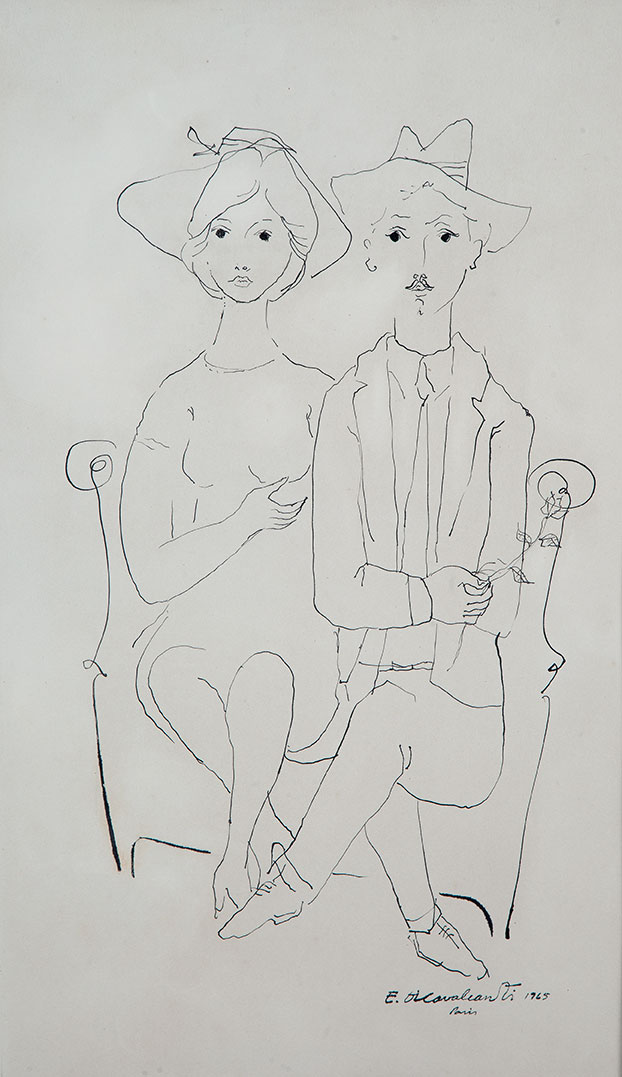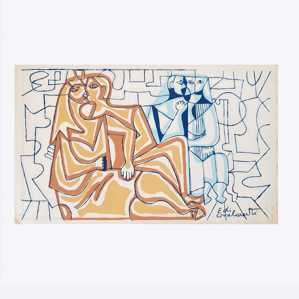 E. DI CAVALCANTI, Composição com Figuras, Técnica Mista sobre Papel, ACID, 29 x 20cm (m.i). Datado 1966