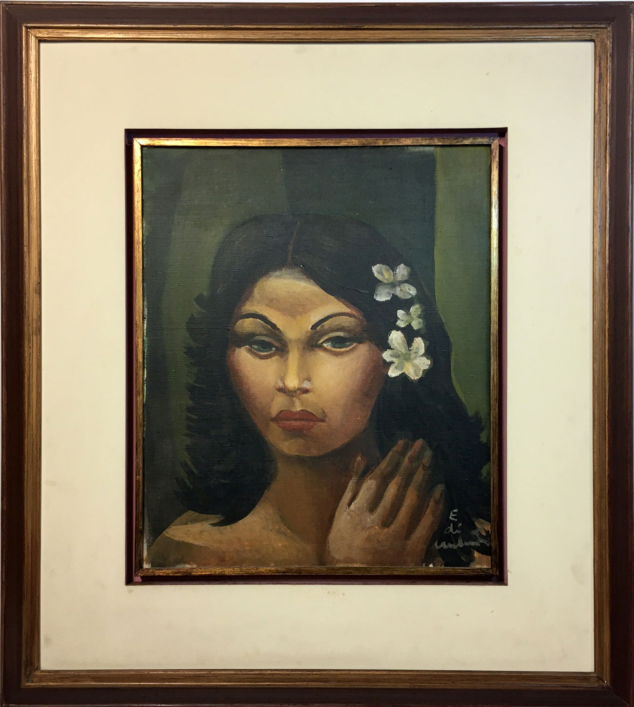 Emiliano Di Cavalcanti - Figura feminina - Óleo sobre tela - Assinado canto inferior direito - 54 x 45 cm. Coleção Múcio Bandeira de Mello.