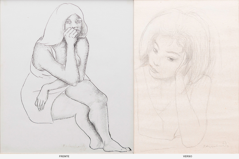 E. DI CAVALCANTI, Dípitco - Estudo para Peça de Teatro Toda Nudez Será Castigada, Guache sobre Papel, assinados, 45 x 10cm (cada) e 70 x 48cm (total c/ moldura). (verso com assinatura de Noemia Mourão indicando o estudo da obra para a peça de teatro)