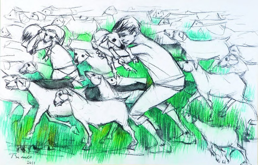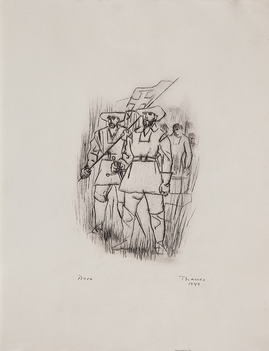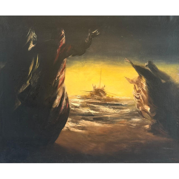 Enrico Bianco - A fuga da guerra - 60 x 73 cm - Óleo sobre tela - Assinatura canto inferior direito e Data 1947 - Essa obra partipou da exposição do Enrico Bianco no MASP e Museu Nacional de Belas Artes em 1982 no lançamento do livro do artista