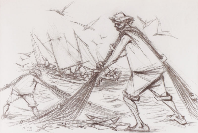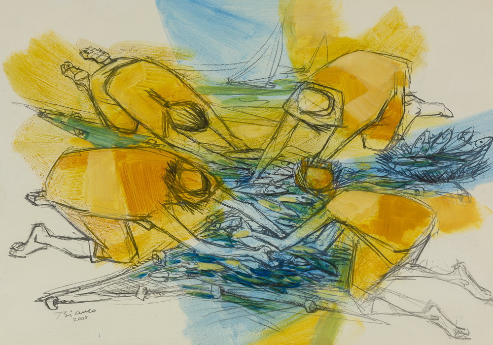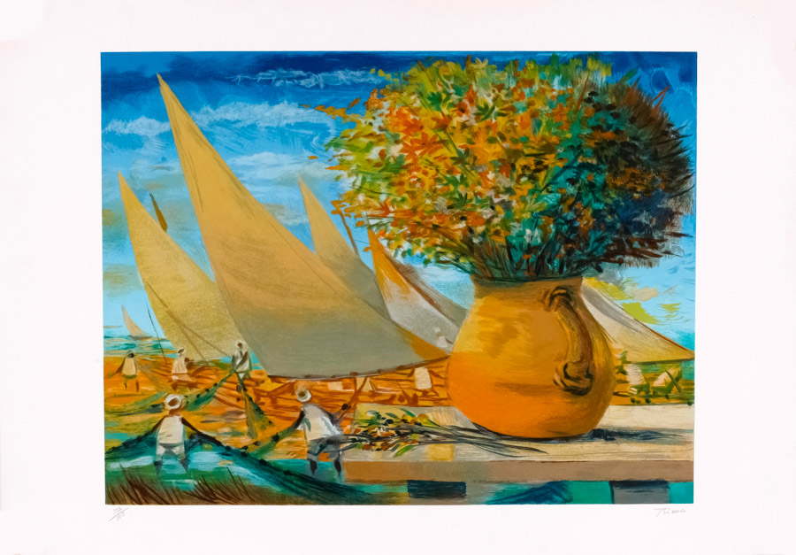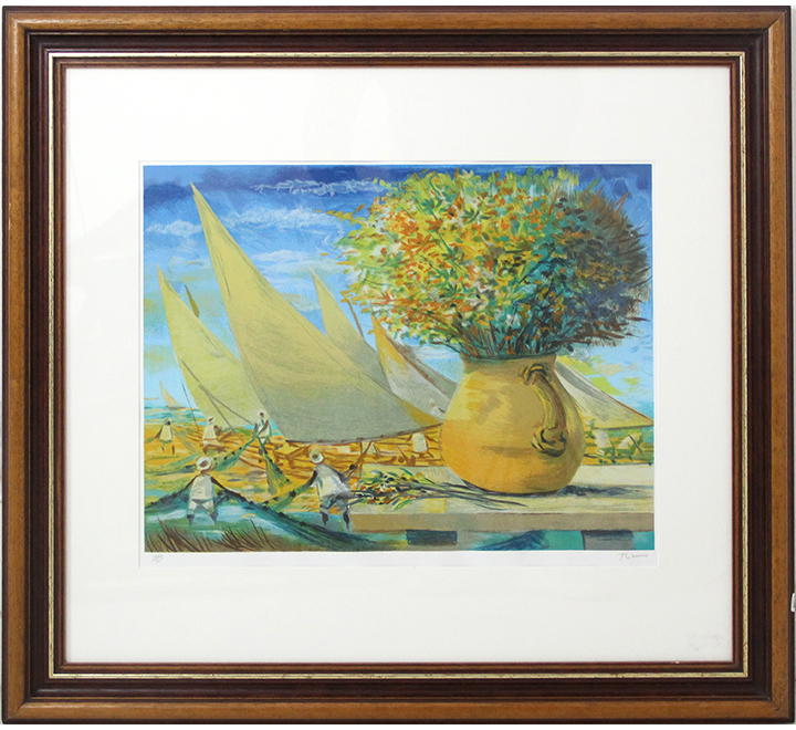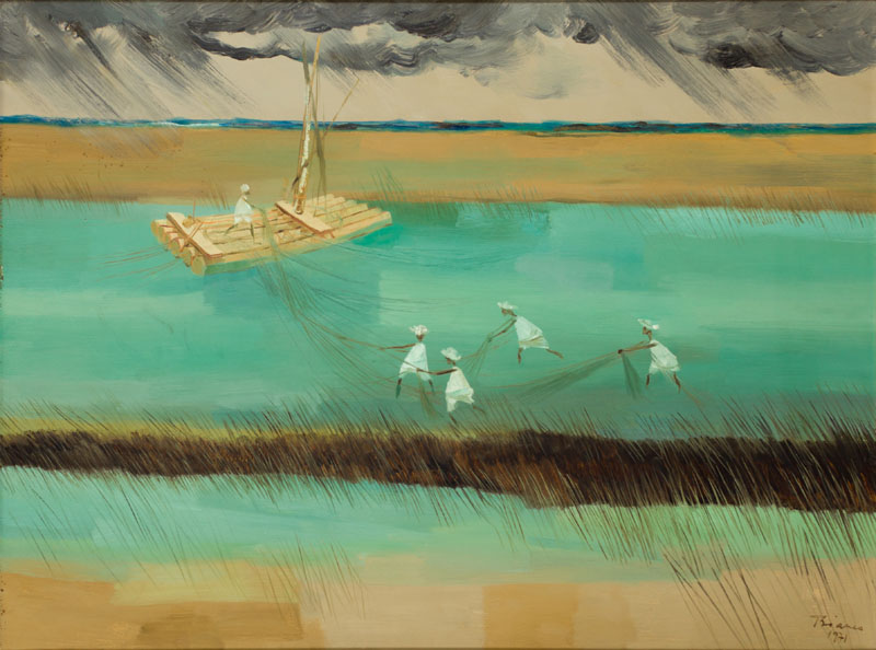 Enrico Bianco - Jangada. Óleo sobre eucatex, 45x59 cm, 1970, A.C.I.D. Com moldura e certificado de autenticidade de Paulo Bianco