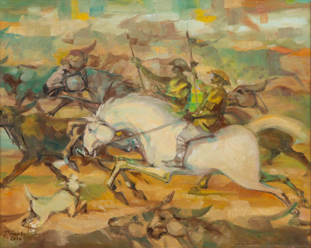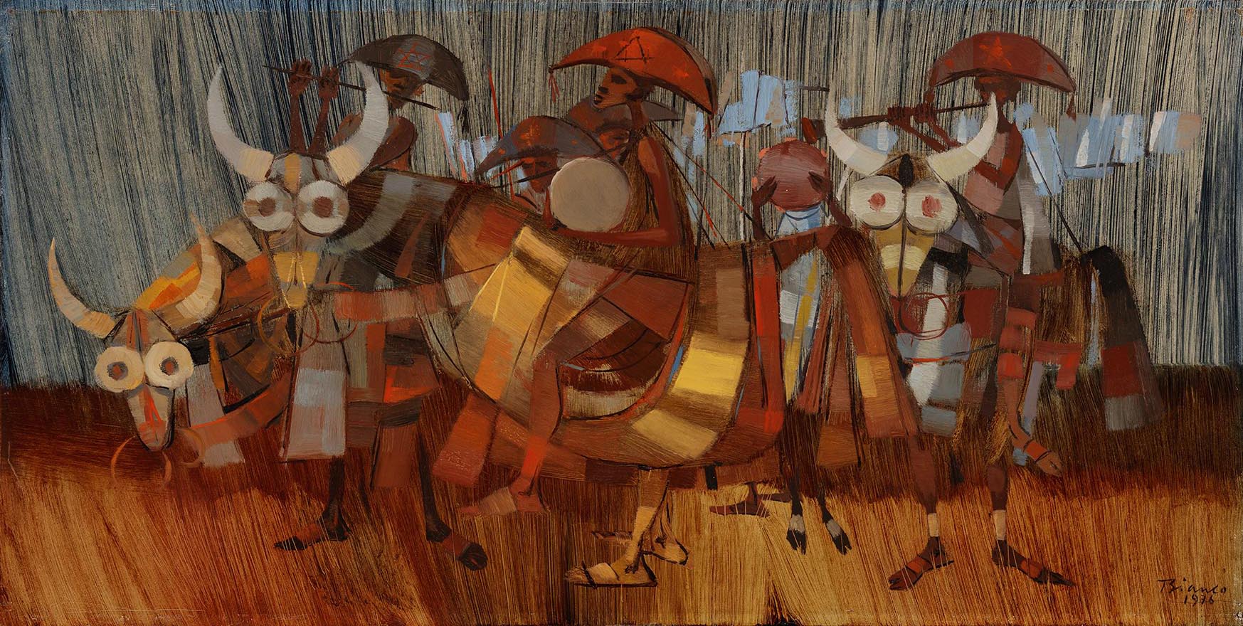 Enrico Bianco - Boiadeiros - 35 x 45 cm - Óleo sobre eucatex - Assinatura canto inferior direito e Data 1983