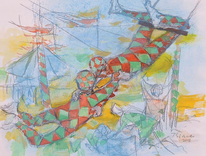 Enrico Bianco - Jangada. Óleo sobre eucatex, 45x59 cm, 1970, A.C.I.D. Com moldura e certificado de autenticidade de Paulo Bianco