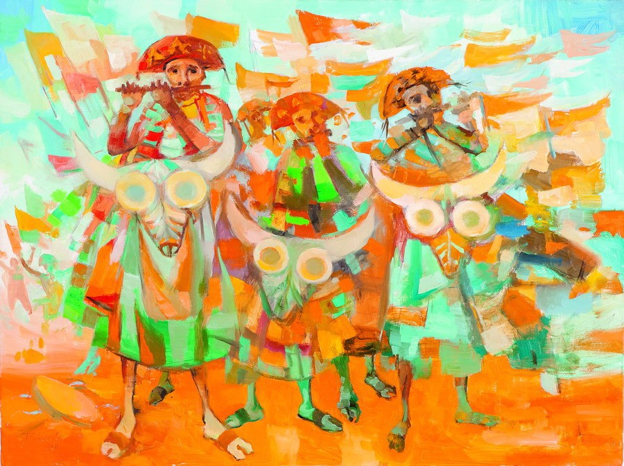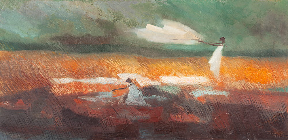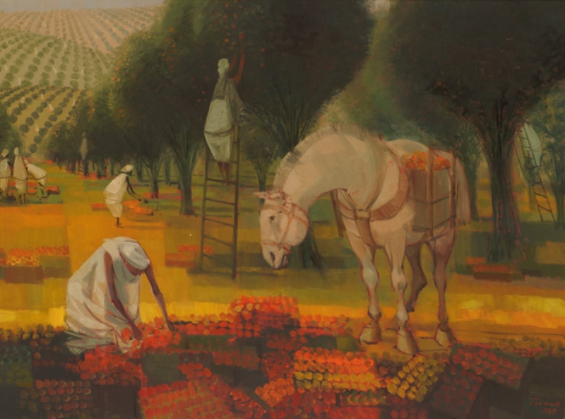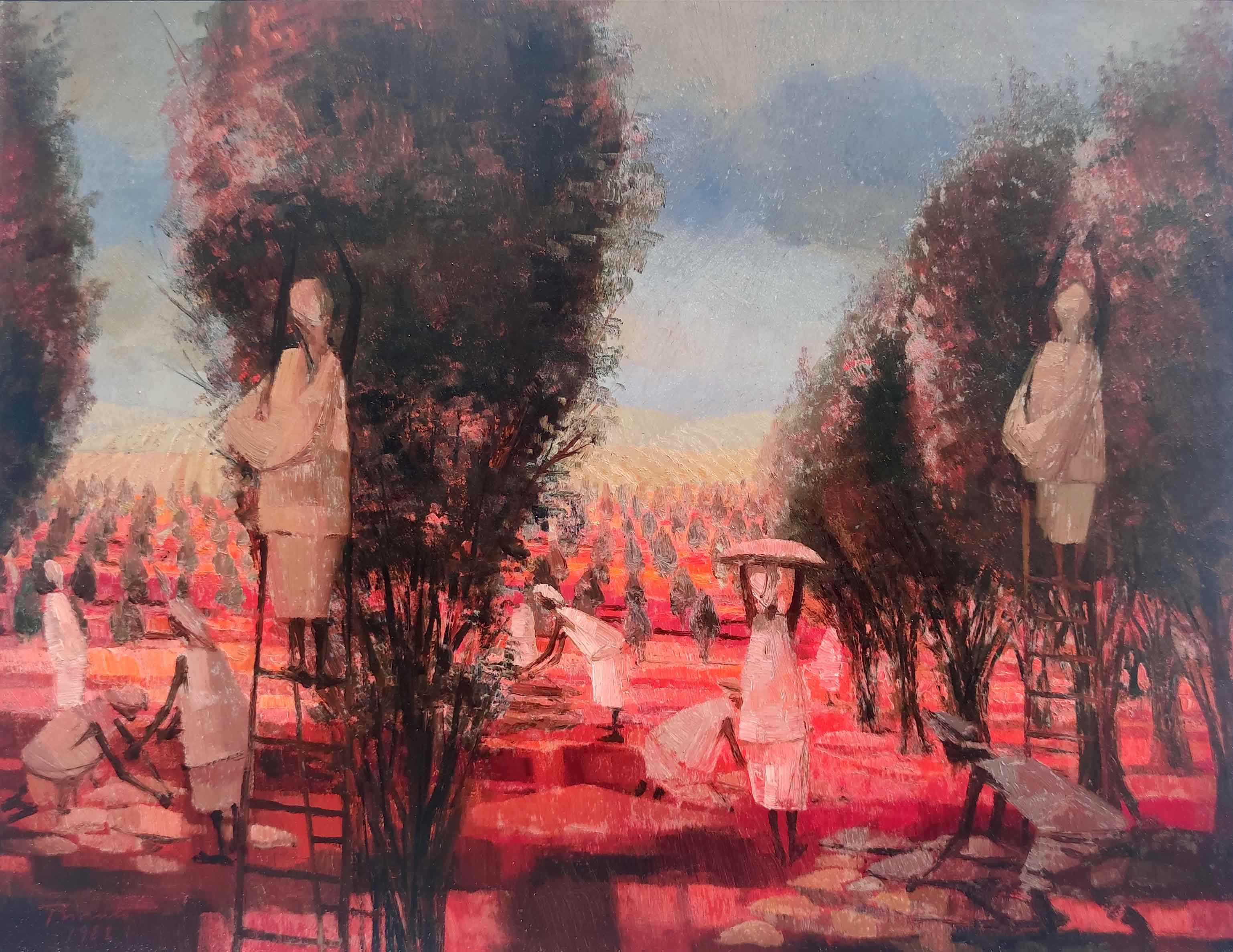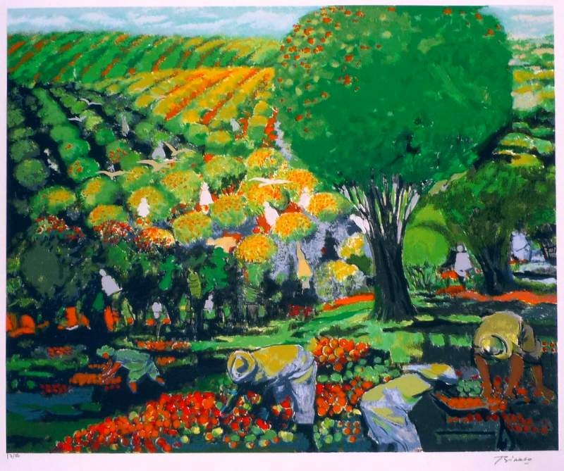 Enrico Bianco - Colhedores - 1993 - Óleo sobre tela - Assinado canto inferior direito - 40 x 50 cm.