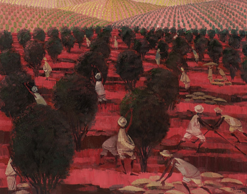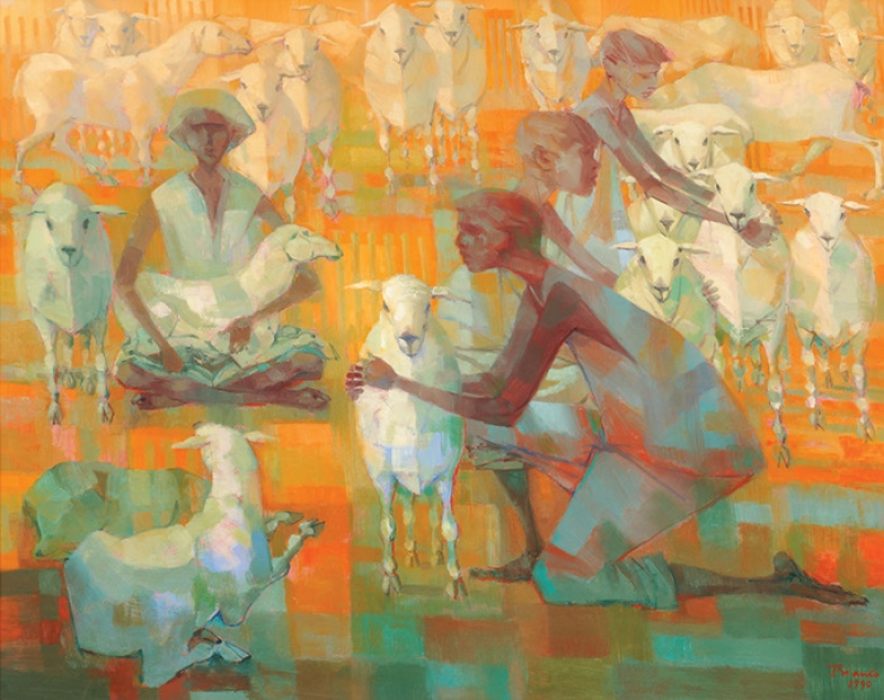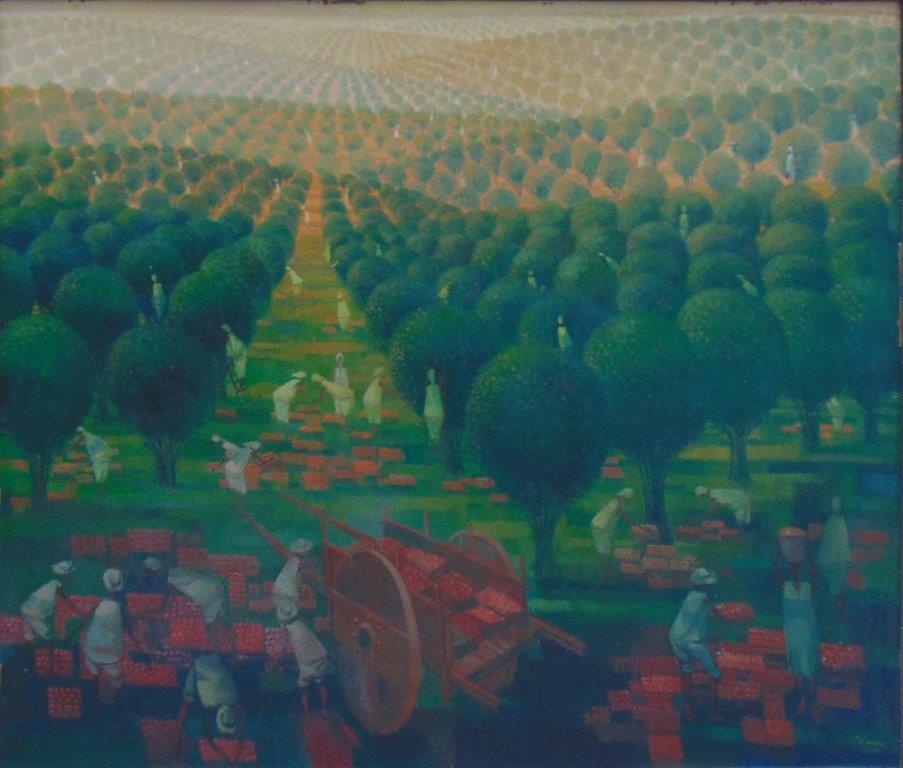 Enrico Bianco - Madona no trigal - 50 x 40 cm - Óleo sobre eucatex - Assinatura canto inferior direito e Data 1983 - No verso apresenta etiqueta da Galeria Contorno