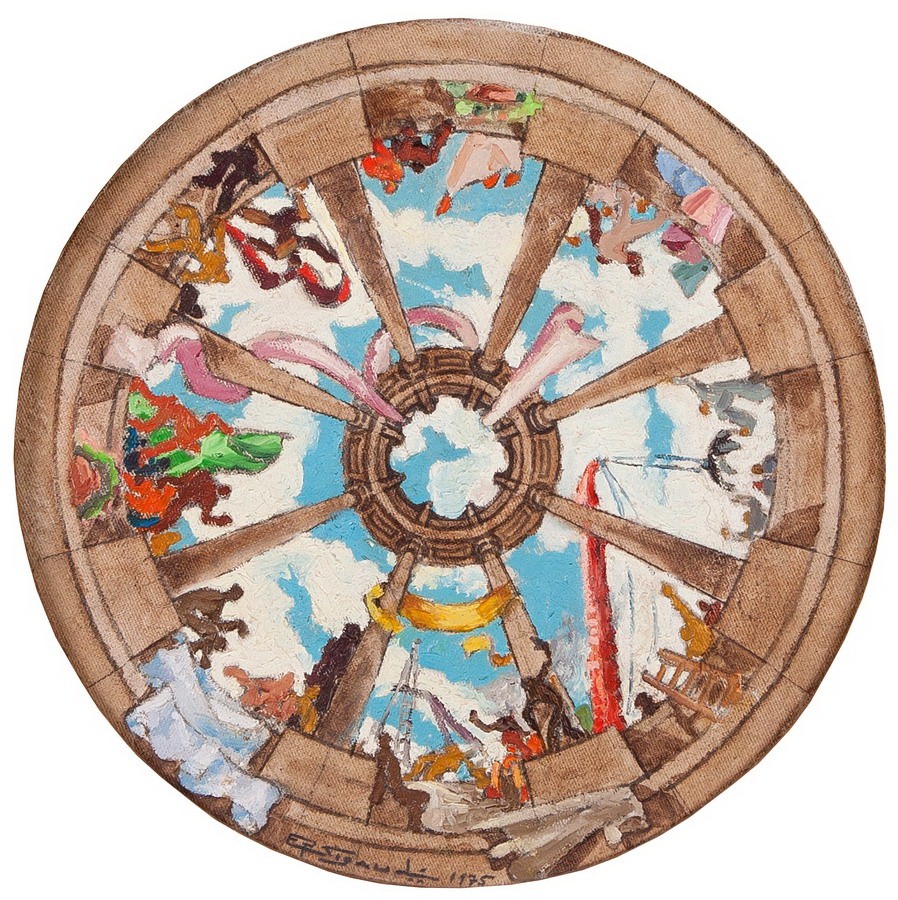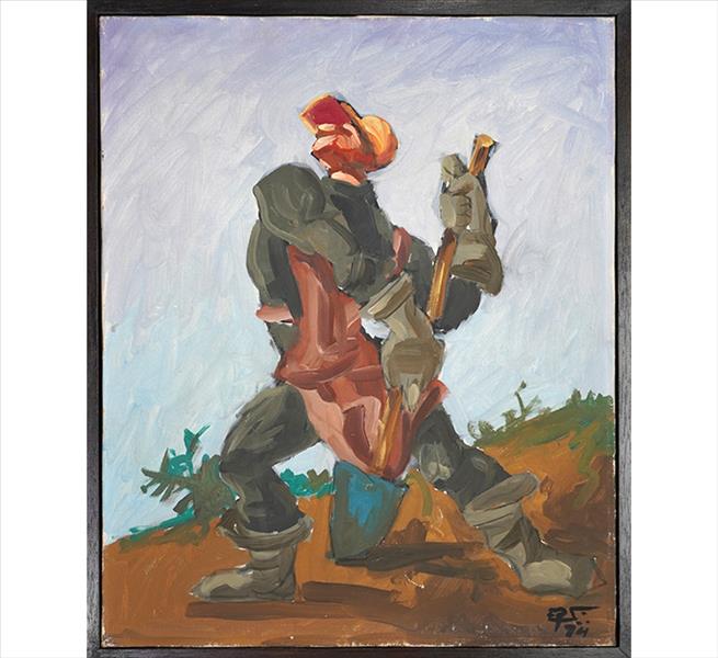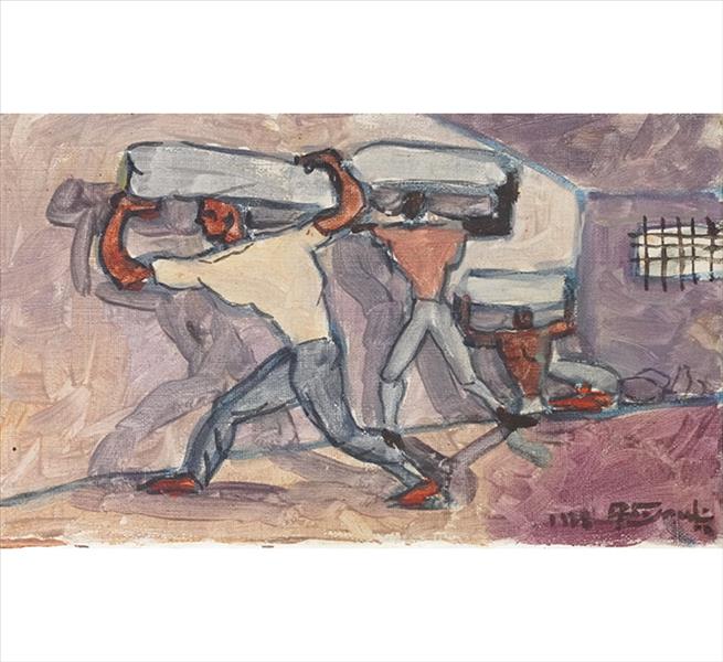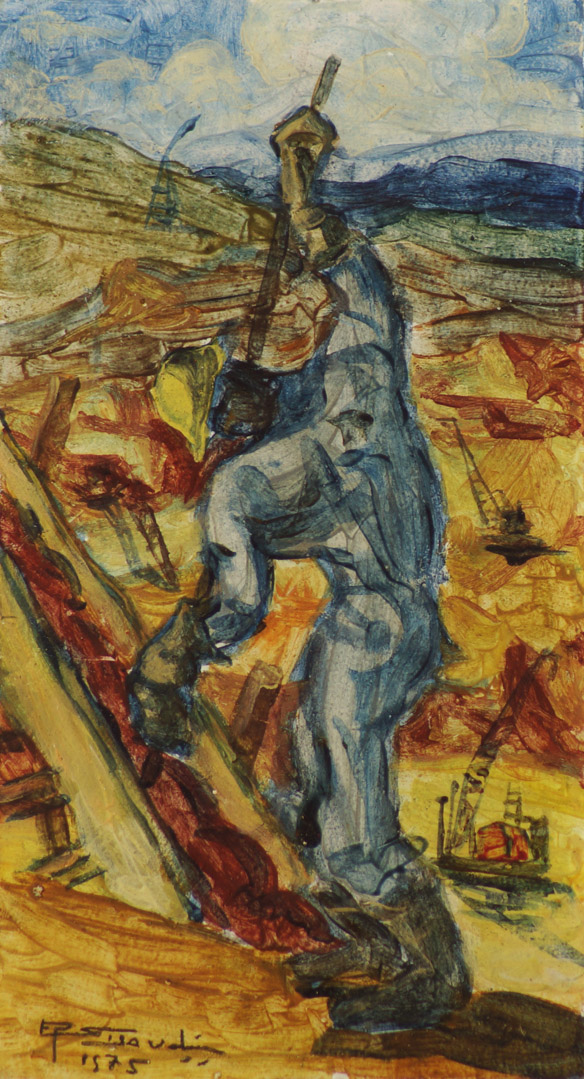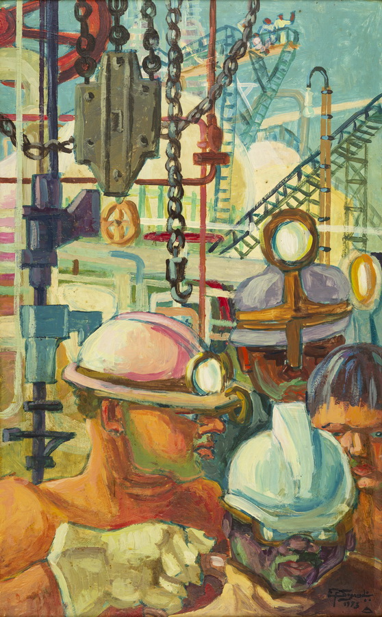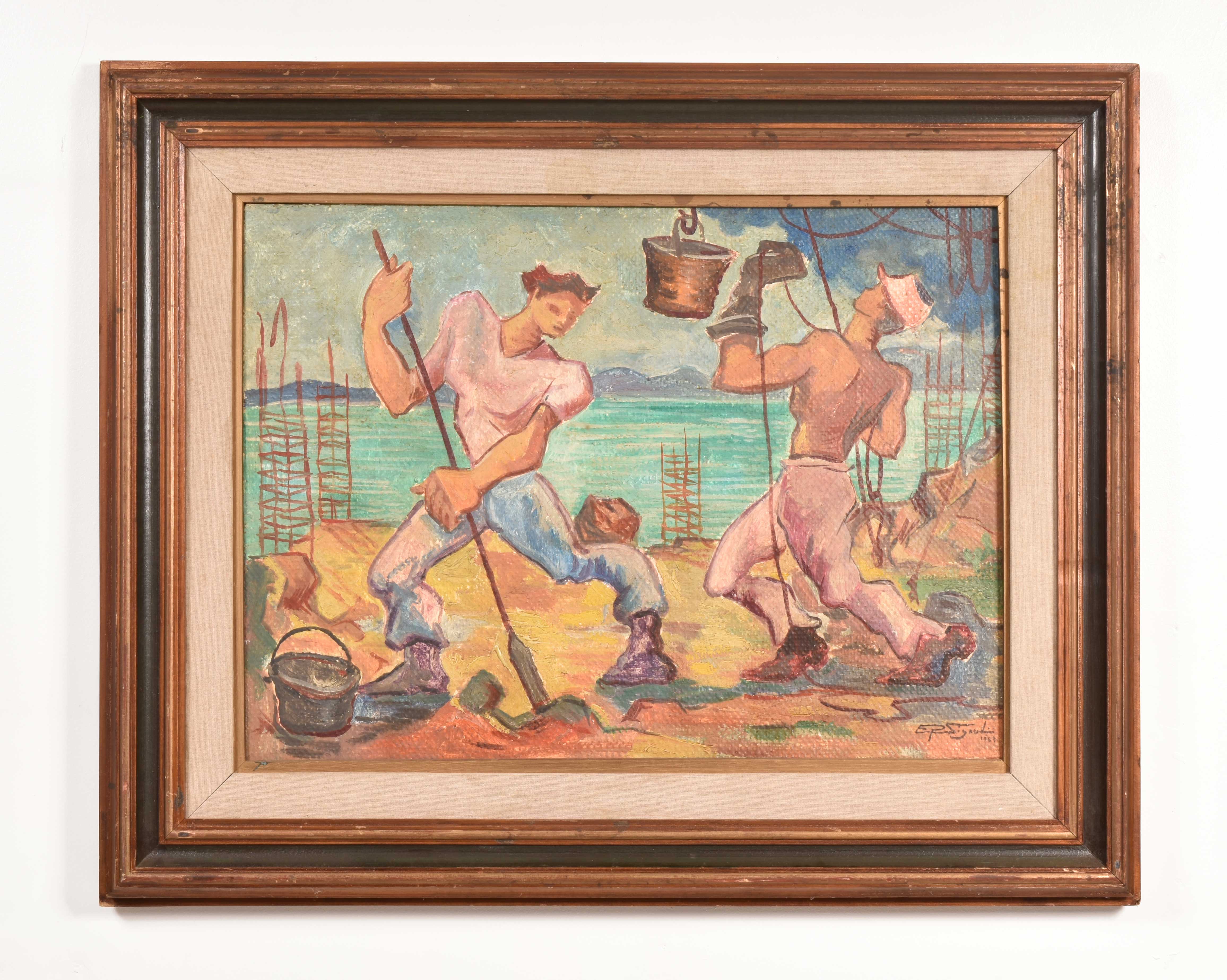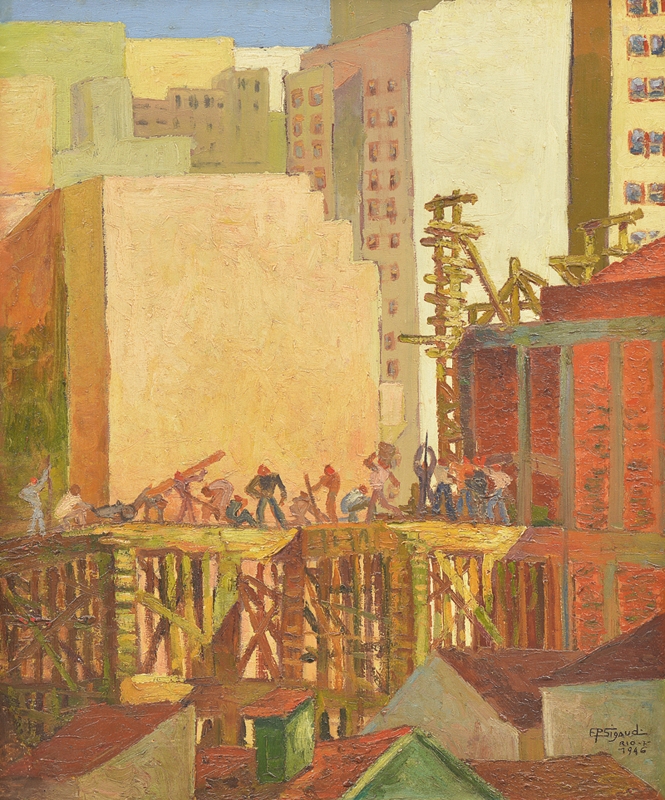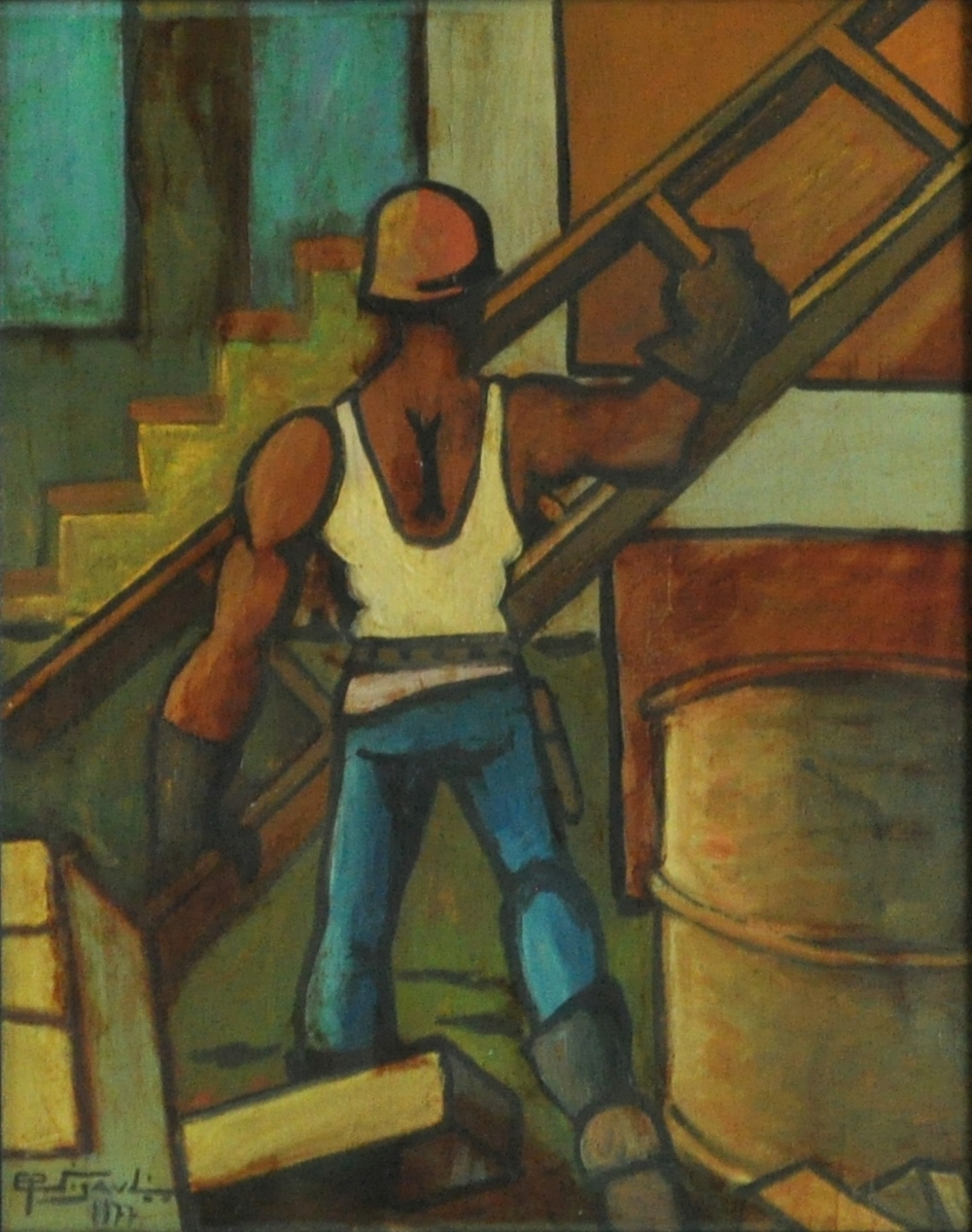 Nacionalista, influenciado pelo muralismo mexicano, usa a dramaticidade do expressionismo, reforçado de ângulos que ostensivamente deformam os personagens, para pintar e exaltar uma categoria que se arrisca muito e recebe pouco - os trabalhadores da construção civil.
