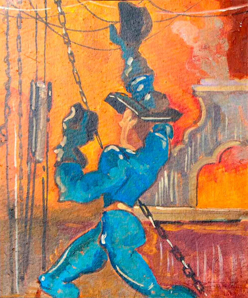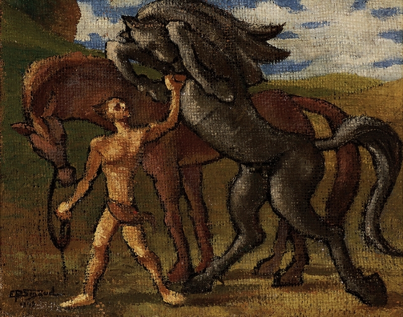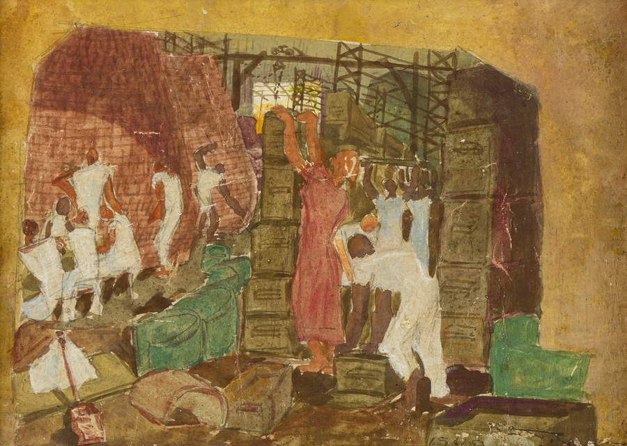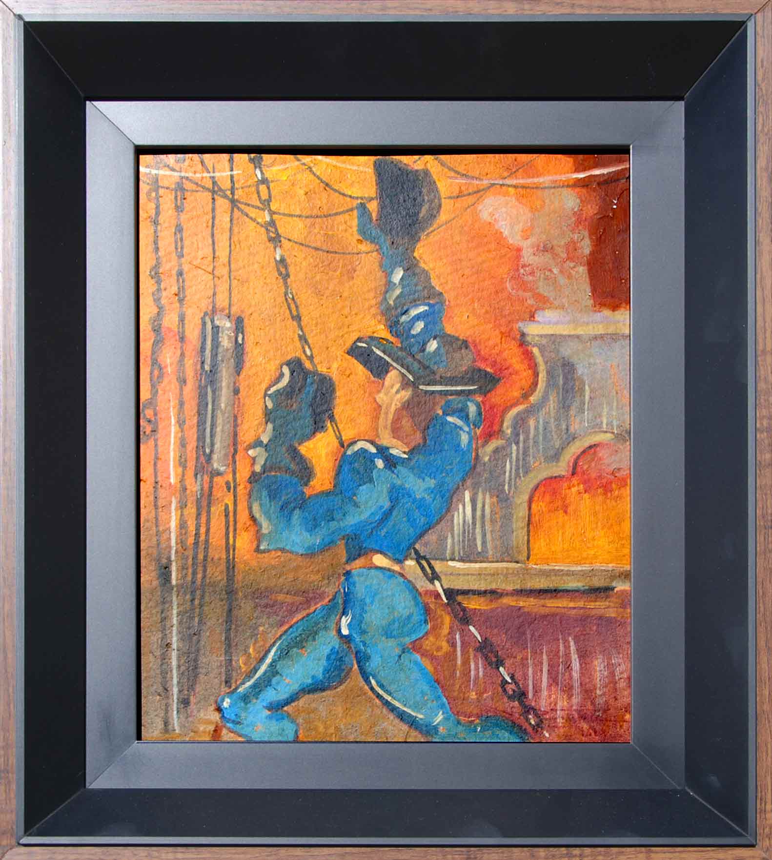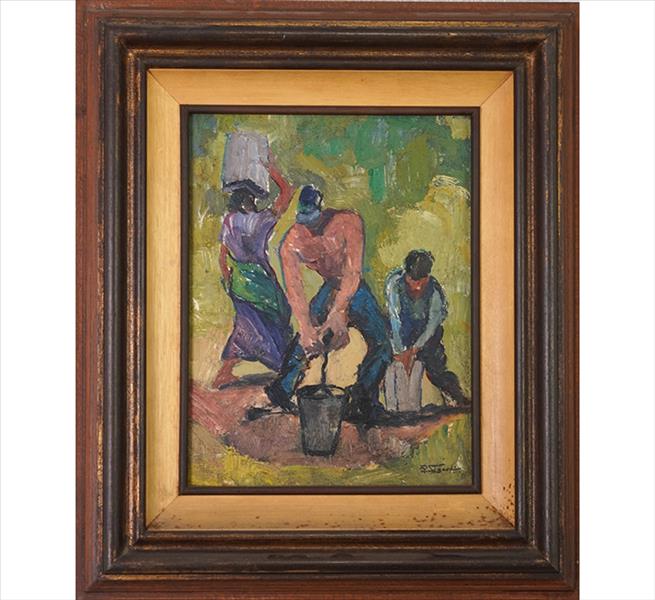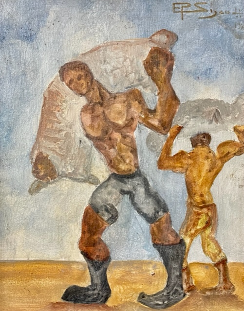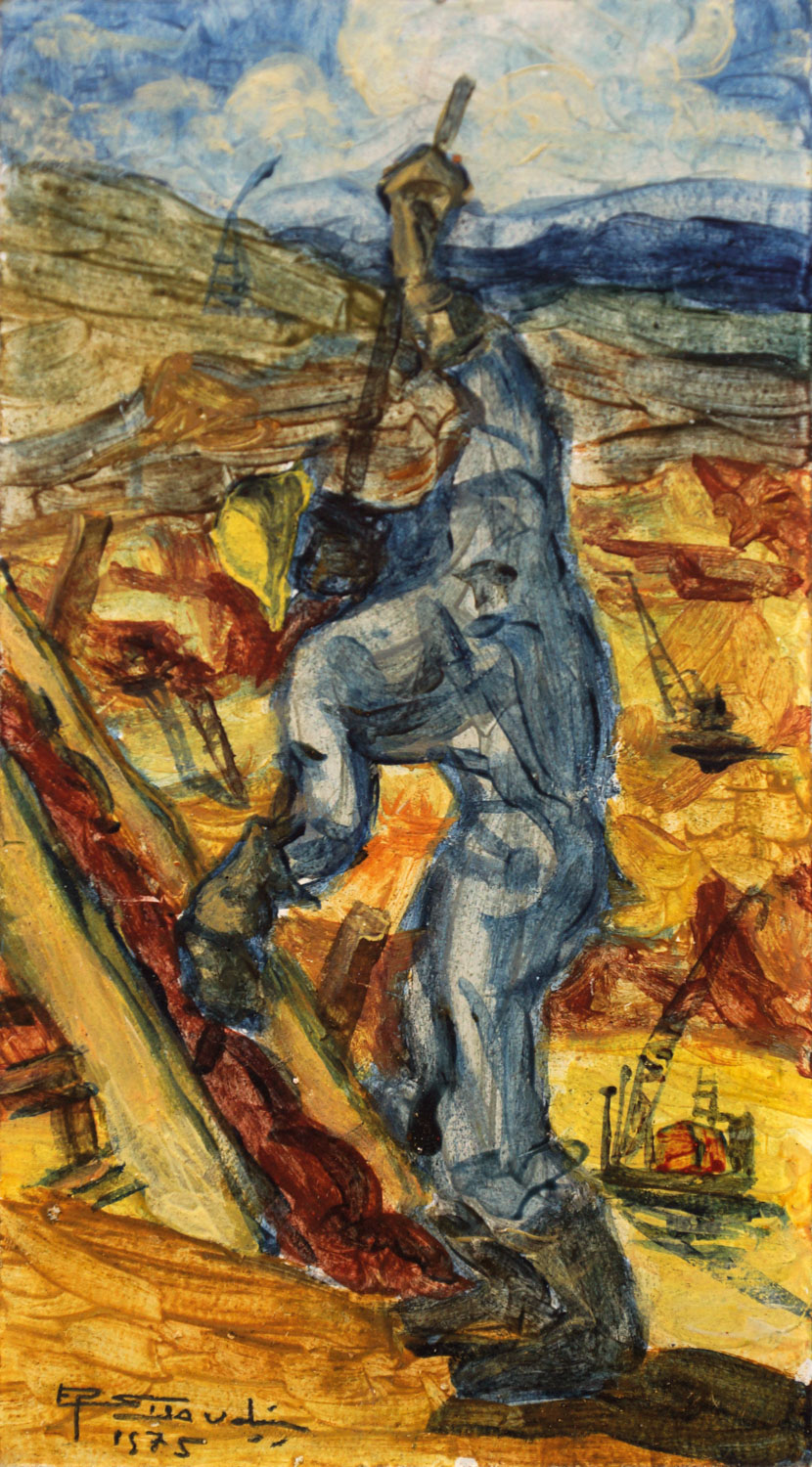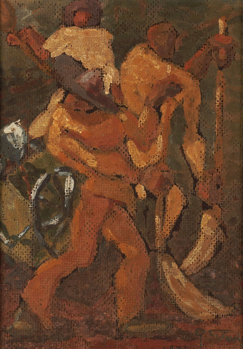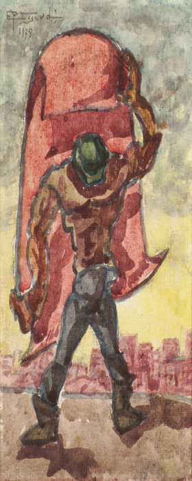 EUGENIO PROENÇA SIGAUD, Trabalhador, Encáustica sobre Eucatex, ACID, 33 x 25cm (m.i)