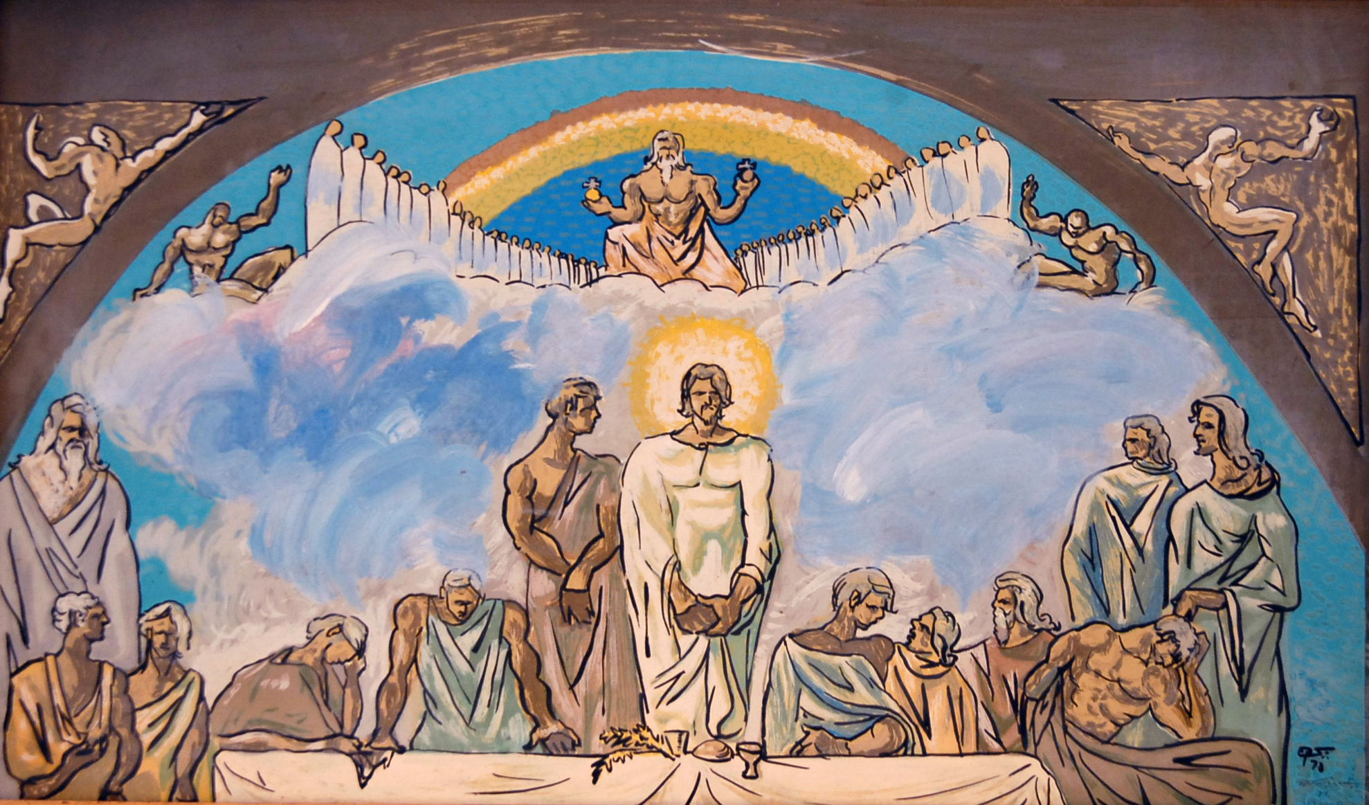 Sigaud contou a historia da primeira metade do século XX, misturando o sagrado e o profano, no interior da nave, as paredes laterais do transepto e a cúpula, aproximadamente 600 m², utilizando como modelos, pessoas da comunidade local de Jacarezinho.