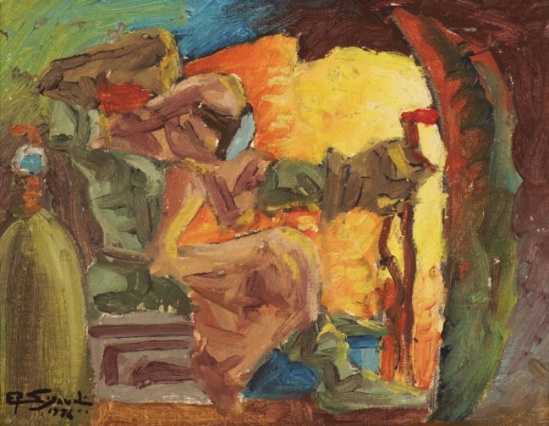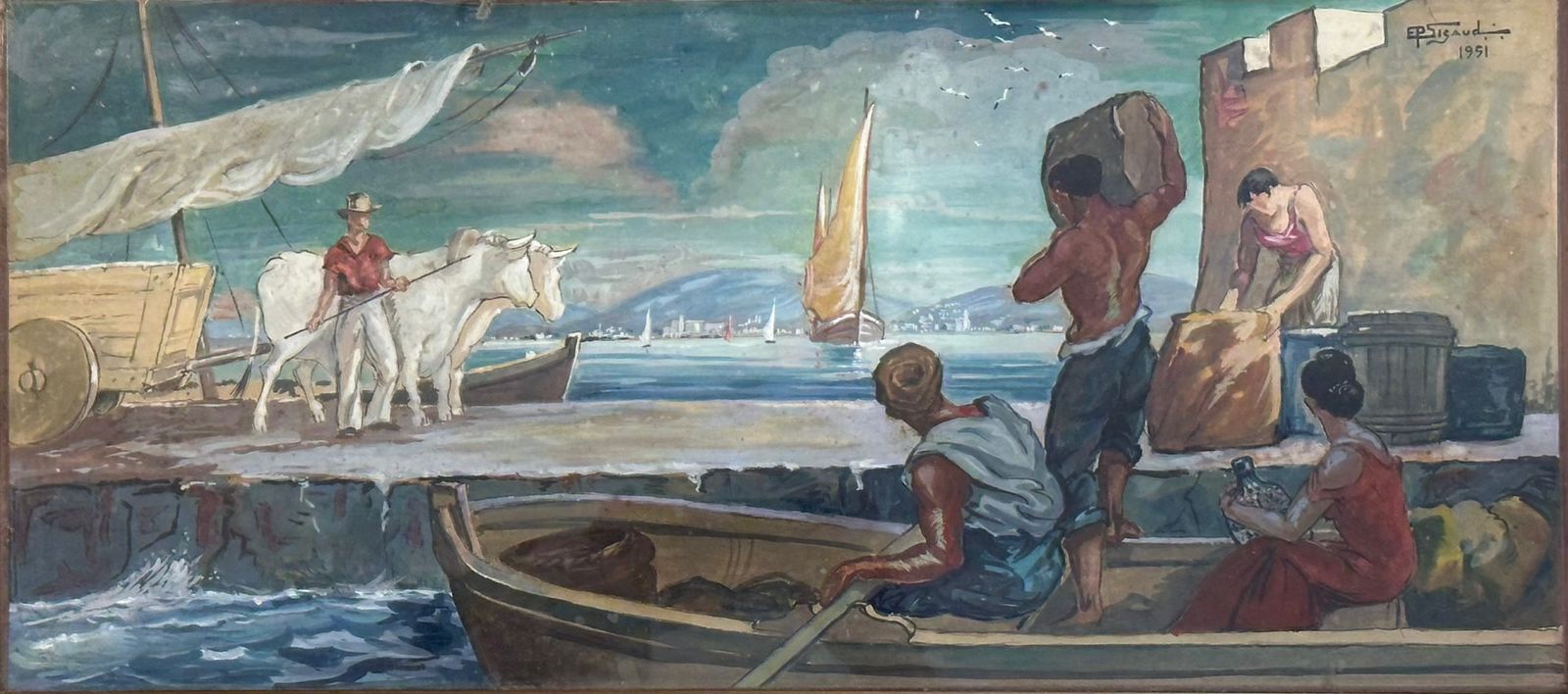 EUGENIO PROENÇA SIGAUD, A Salina, Encáustica sobre Papel, ACID, 25 x 18cm. (m.i). Datado 1973