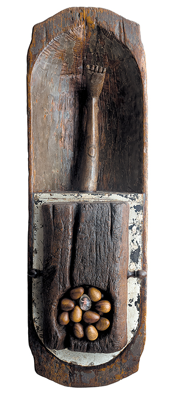 Farnese de Andrade Neto (Araguari, Minas Gerais, 1926 - Rio de Janeiro, Rio de Janeiro, 1996). Pintor, escultor, desenhista, gravador, ilustrador. Muda-se, em 1942, para Belo Horizonte onde, entre 1945 e 1948, estuda desenho com Guignard (1896-1962), na Escola do Parque. Em 1948 muda-se para o Rio de Janeiro para tratar uma tuberculose pulmonar. Entre 1950 e 1960, trabalha como ilustrador para o Suplemento Literário do Diário de Notícias, Correio da Manhã, o Jornal de Letras, e para as revistas Rio Magazine, Sombra, O Cruzeiro, Revista Branca e Manchete. Em 1959, começa a frequentar o Ateliê de Gravura do Museu de Arte Moderna do Rio de Janeiro (MAM/RJ), onde se aperfeiçoa em gravura em metal com orientações de Johnny Friedlaender (1912-1992). Convive com vários artistas que frequentam o Ateliê, entre eles Rossini Perez (1932), com quem desenvolve trabalhos de 1959 a 1961. Em 1964, começa a criar obras com materiais descartados, coletados nas praias e nos aterros. Posteriormente utiliza armários, oratórios, gamelas, ex-votos, adquiridos em antiquários e depósitos de materiais usados. Fotografias antigas também estão presentes em sua obra. Desde 1967, utiliza resina de poliéster, envolvendo materiais perecíveis. No Salão Nacional de Arte Moderna de 1970, recebe o prêmio de viagem ao exterior. Parte para a Espanha, instala um estúdio em Barcelona e lá permanece até 1975.