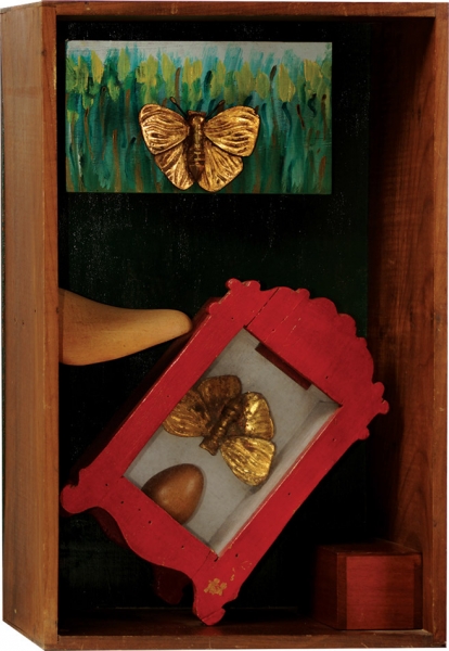 Farnese de Andrade Neto (Araguari, Minas Gerais, 1926 - Rio de Janeiro, Rio de Janeiro, 1996). Pintor, escultor, desenhista, gravador, ilustrador. Muda-se, em 1942, para Belo Horizonte onde, entre 1945 e 1948, estuda desenho com Guignard (1896-1962), na Escola do Parque. Em 1948 muda-se para o Rio de Janeiro para tratar uma tuberculose pulmonar. Entre 1950 e 1960, trabalha como ilustrador para o Suplemento Literário do Diário de Notícias, Correio da Manhã, o Jornal de Letras, e para as revistas Rio Magazine, Sombra, O Cruzeiro, Revista Branca e Manchete. Em 1959, começa a frequentar o Ateliê de Gravura do Museu de Arte Moderna do Rio de Janeiro (MAM/RJ), onde se aperfeiçoa em gravura em metal com orientações de Johnny Friedlaender (1912-1992). Convive com vários artistas que frequentam o Ateliê, entre eles Rossini Perez (1932), com quem desenvolve trabalhos de 1959 a 1961. Em 1964, começa a criar obras com materiais descartados, coletados nas praias e nos aterros. Posteriormente utiliza armários, oratórios, gamelas, ex-votos, adquiridos em antiquários e depósitos de materiais usados. Fotografias antigas também estão presentes em sua obra. Desde 1967, utiliza resina de poliéster, envolvendo materiais perecíveis. No Salão Nacional de Arte Moderna de 1970, recebe o prêmio de viagem ao exterior. Parte para a Espanha, instala um estúdio em Barcelona e lá permanece até 1975.