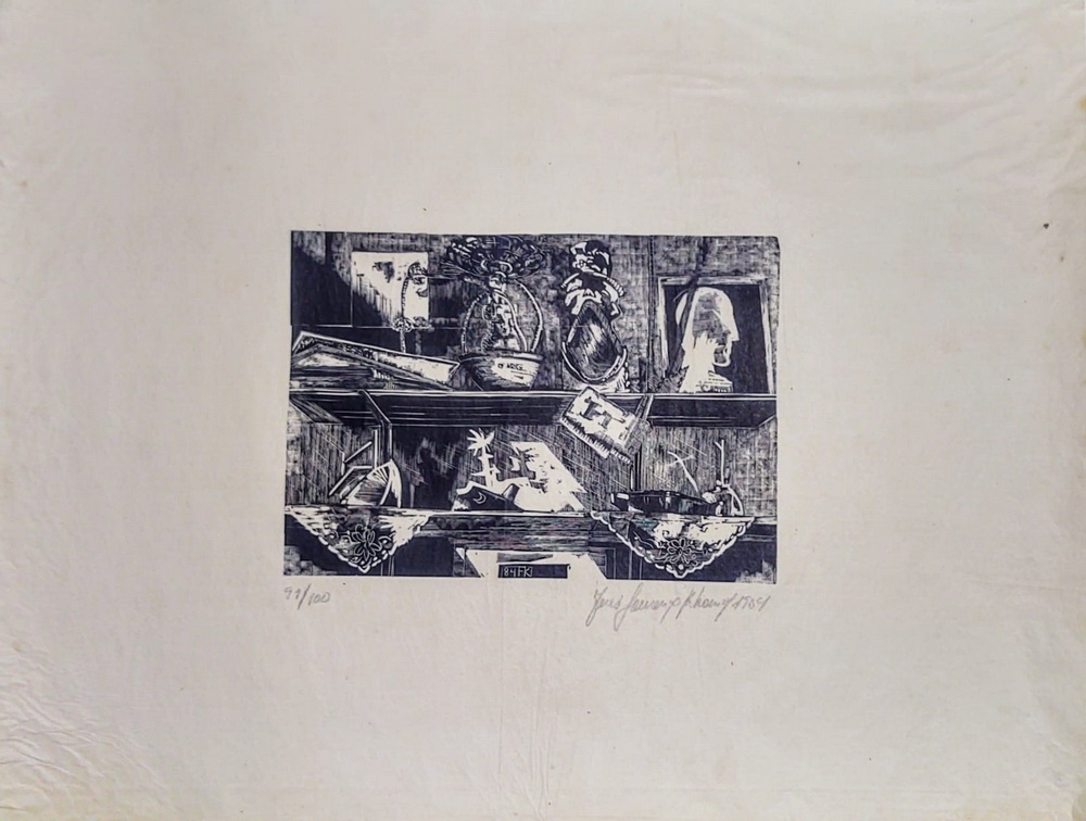 Prateleira - 48 x 66 cm - Gravura Sem Moldura - Ass. Canto Inferior Direito e Dat. 1984 - Exemplar 91/100 - Bom estado
