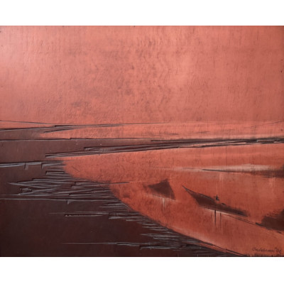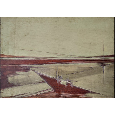 Fernando Calderari - Ponte sobre o Rio Tubarão - Óleo sobre tela - Medidas 55 x 80 cm - Assinado