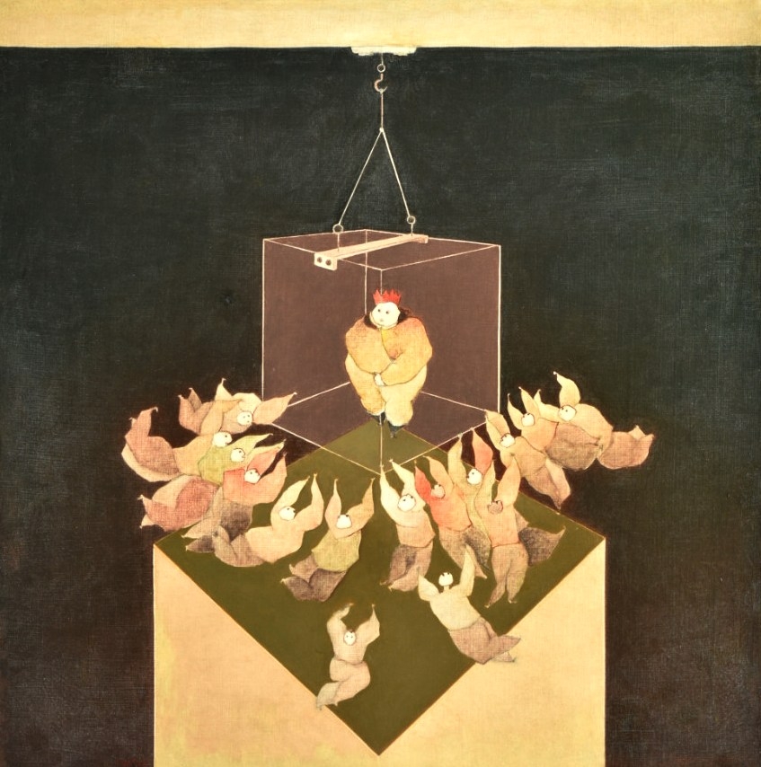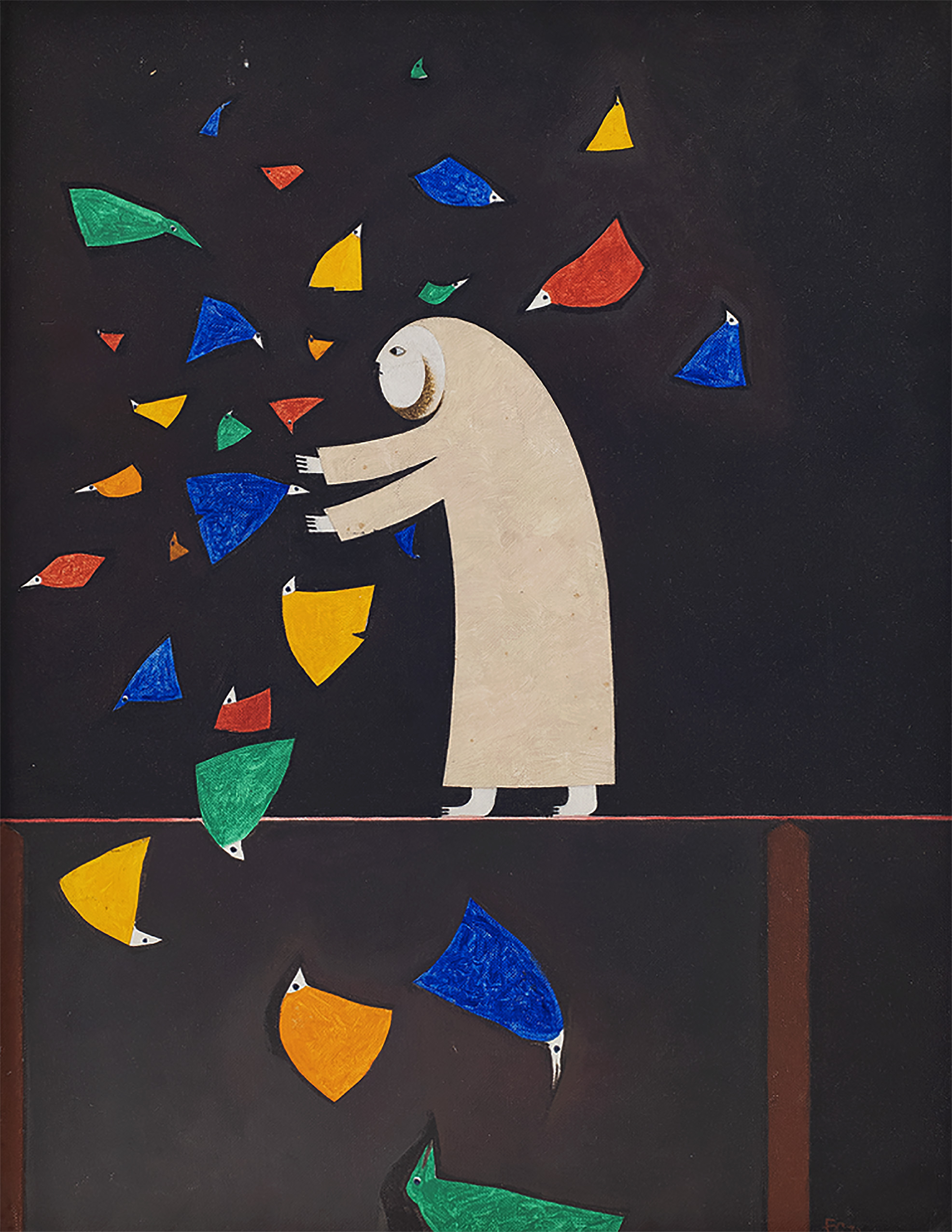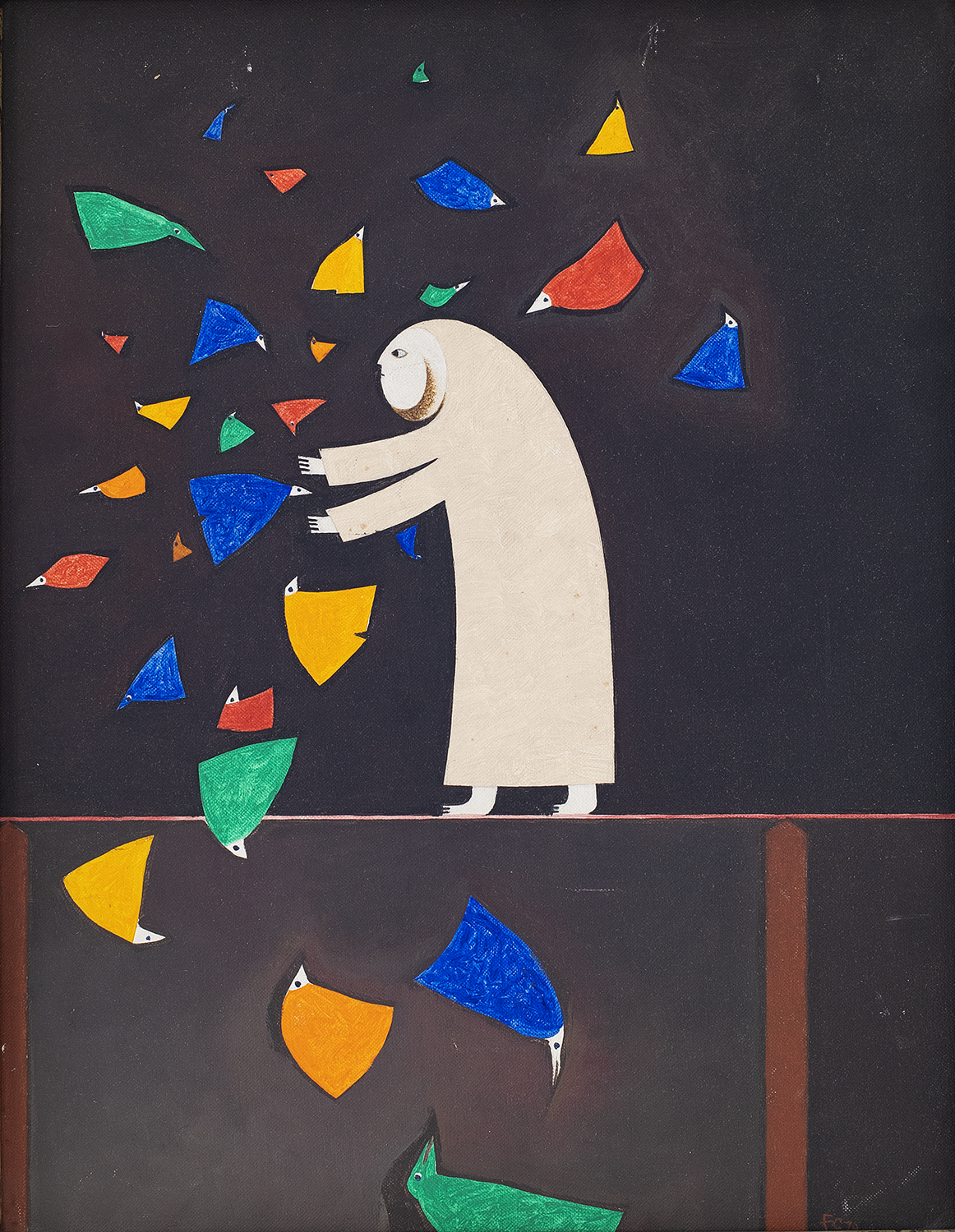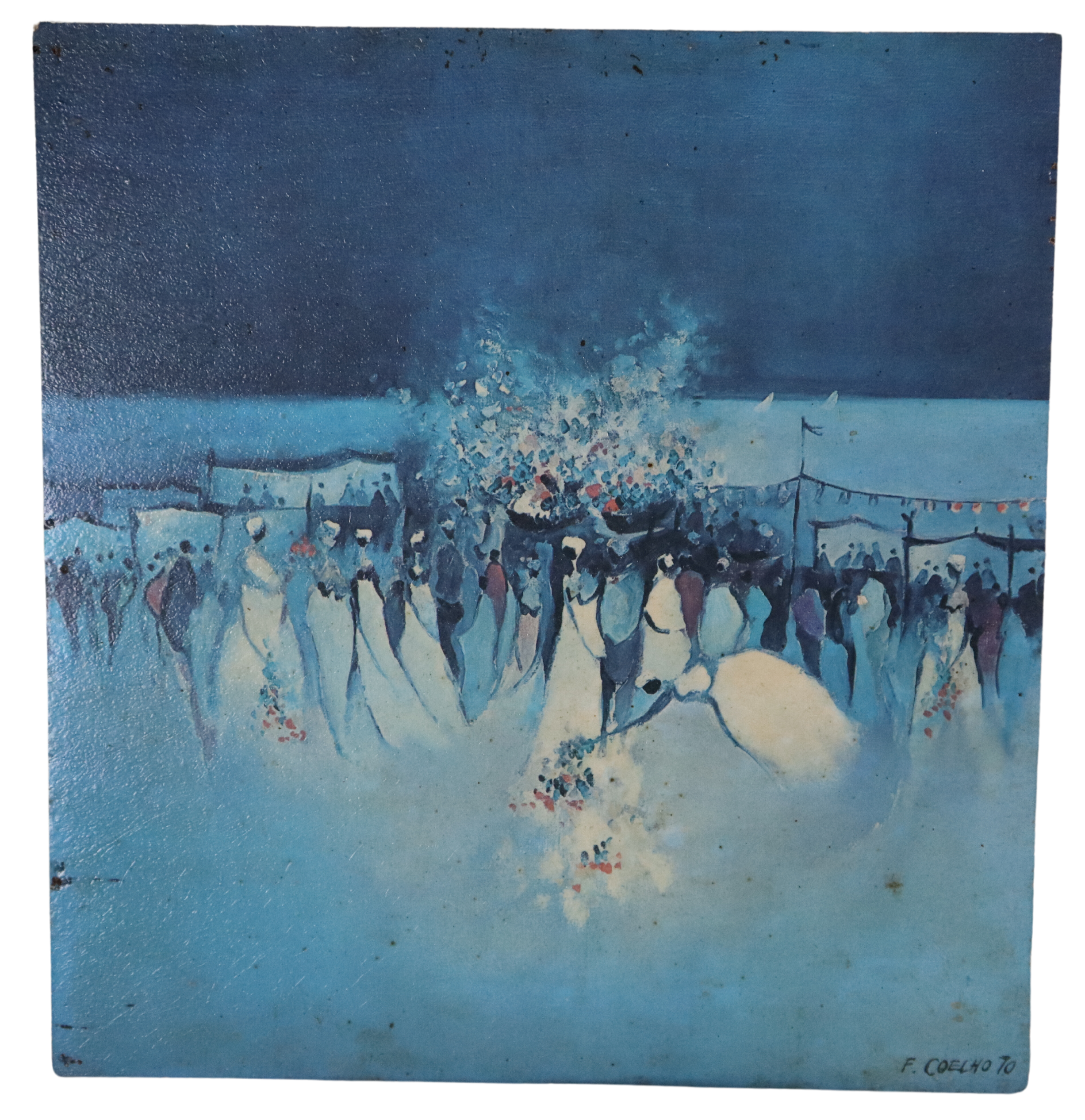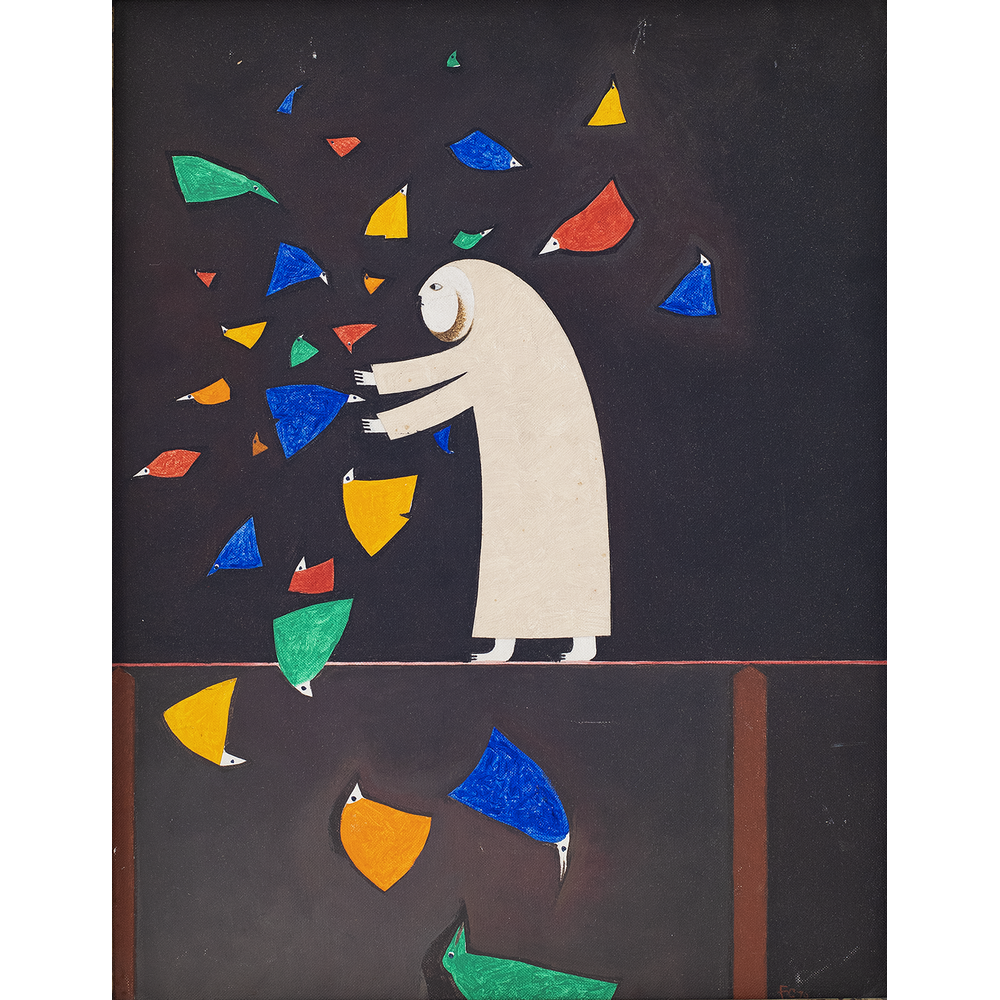 Fernando Coelho - Onde houver desespero que eu leve a esperança, 1979 - Acrílica sobre tela colado sobre placa, assinado e datado inferior direito; assinado e titulado no verso. - 48 x 37 cm.