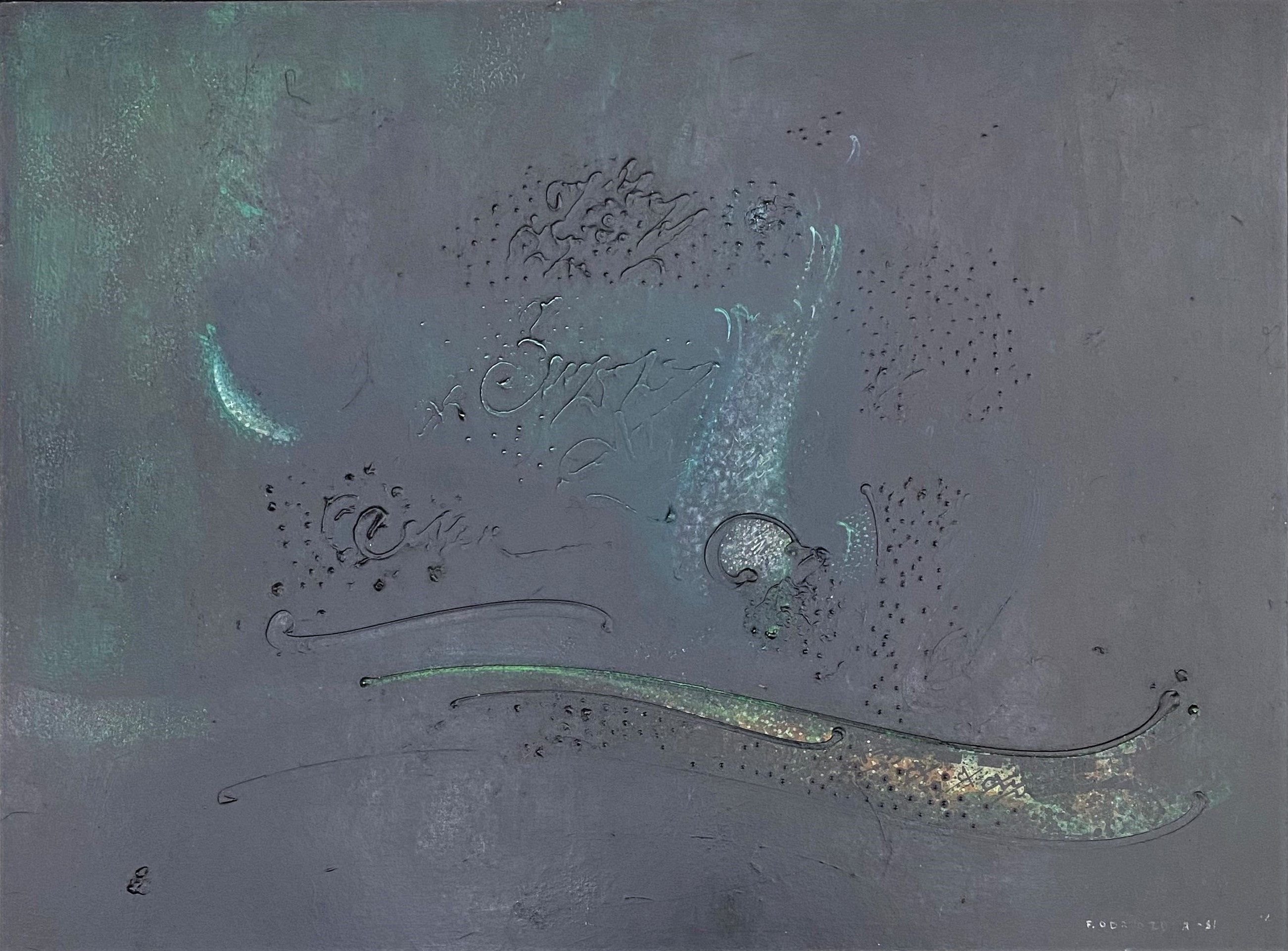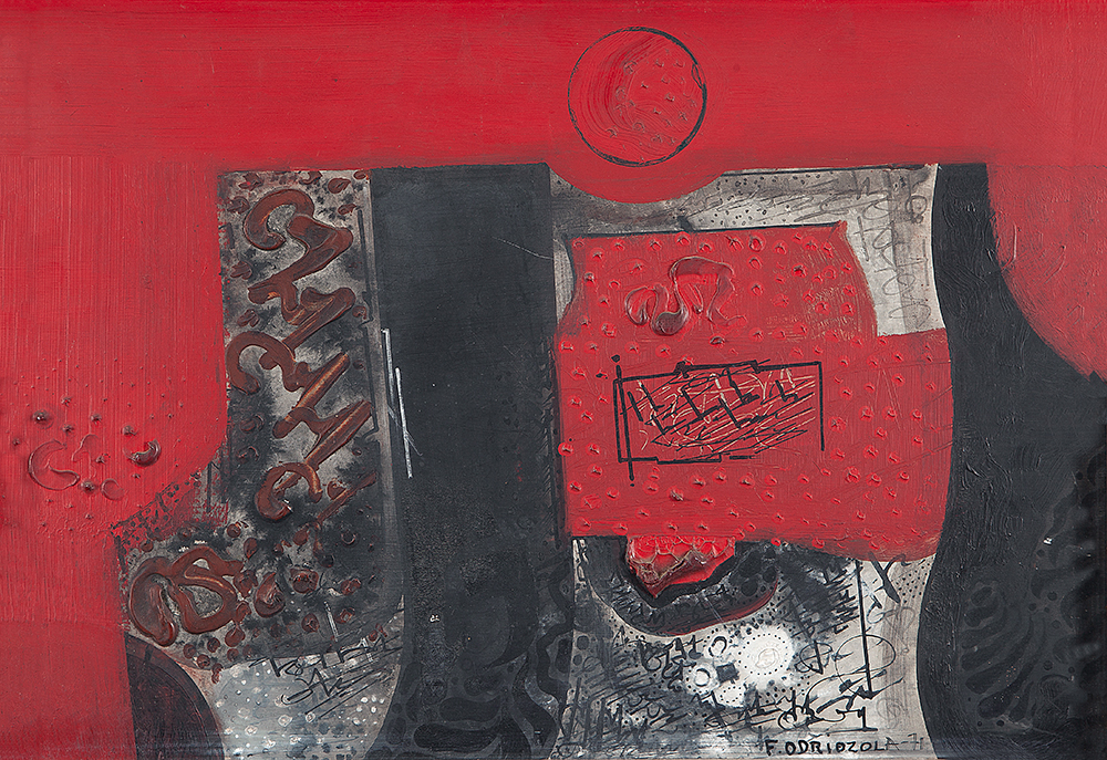 FERNANDO ODRIOZOLA, Composição, OSE, ACID, 46 x 67cm (m.i). Datado 1966