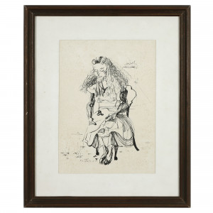 Flávio de Carvalho. Mulher Sentada. Reprodução fotomecânica, 33 cm x 24 cm. Assinado e datado acima à direita: Flávio de/ R. Carvalho/ 1957.Origem: espólio de Cárbia Sabatel Bourroul e José Celestino Monteiro de Barros Bourroul.