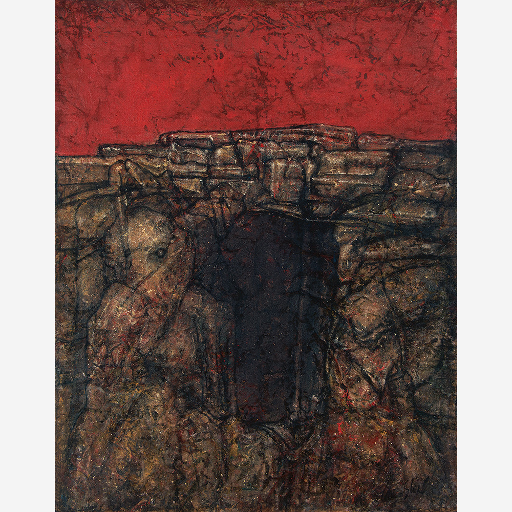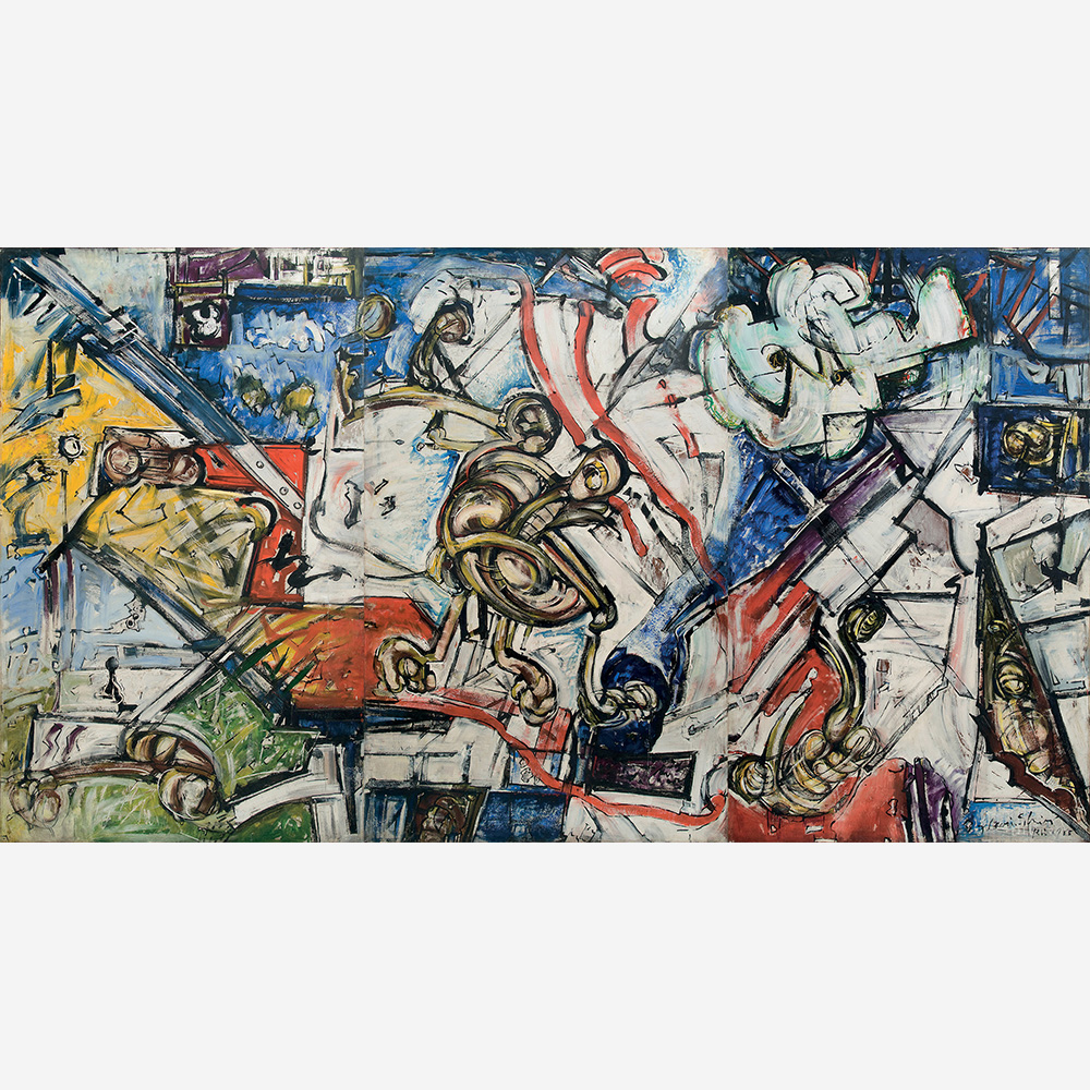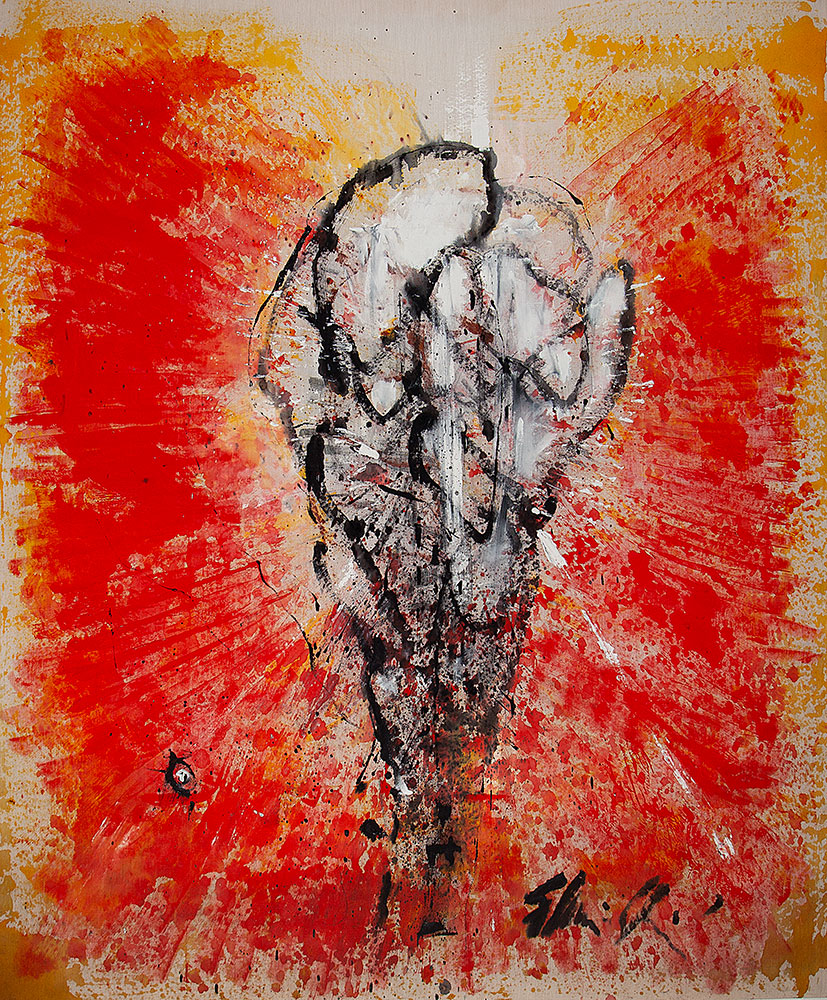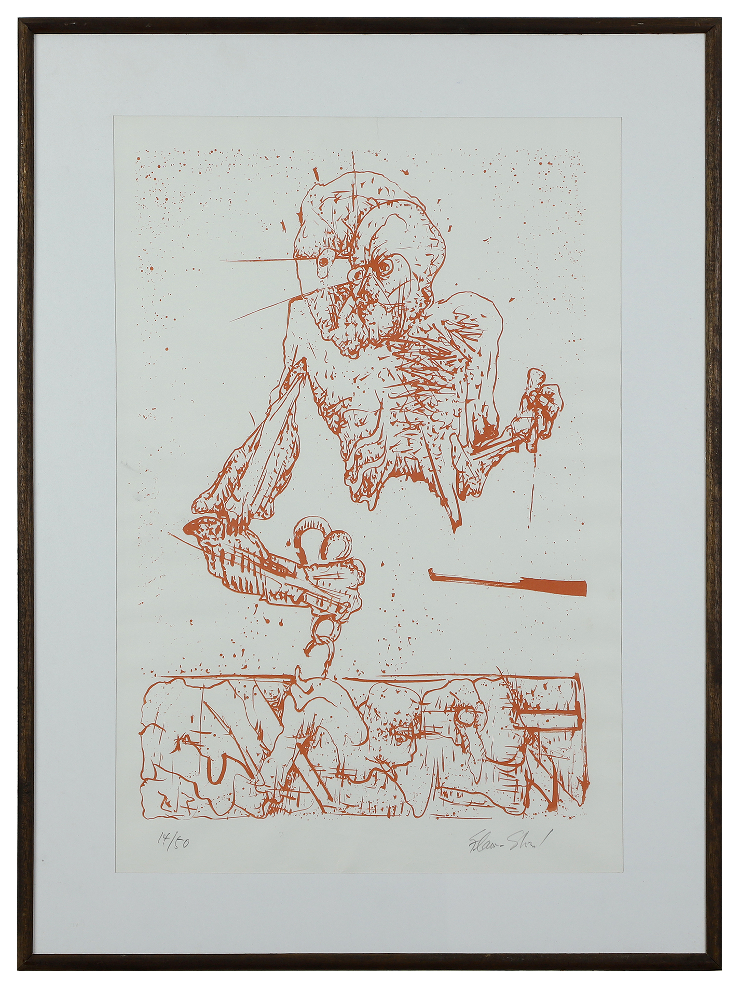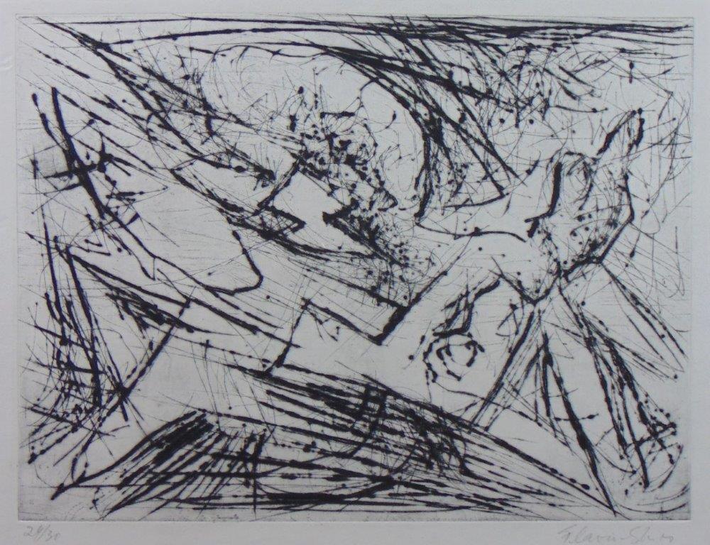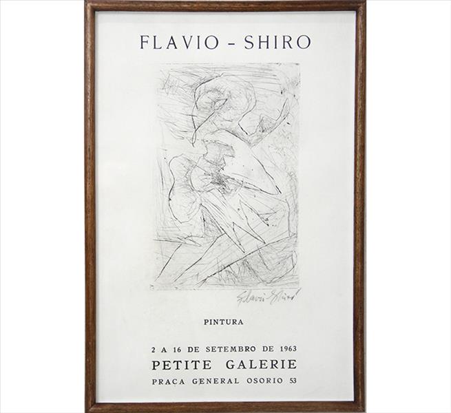 Shiro Tanaka (Sapporo, Japão 1928). Pintor, gravador, desenhista e cenógrafo. Chega ao Brasil em 1932, e instala-se com a família numa colônia japonesa em Tomé-Açu, no Pará. Reside em São Paulo a partir de 1940. Estuda na Escola Profissional Getúlio Vargas, onde conhece Octávio Araújo (1926-2015), Marcelo Grassmann (1925-2013) e Luiz Sacilotto (1924-2003). Por volta de 1943 tem contato com Alfredo Volpi (1896-1988) e Francisco Rebolo (1902-1980) integrantes do Grupo Santa Helena. Em 1947, integra o Grupo Seibi. No ano seguinte, trabalha na molduraria do pintor Tadashi Kaminagai (1899-1982). Com bolsa de estudo, viaja a Paris, onde permanece de 1953 a 1983. Estuda mosaico com Gino Severini (1883-1966), gravura em metal com Johnny Friedlaender (1912-1992) e litografia na École National Supérieure des Beaux-Arts [Escola Nacional Superior de Belas Artes]; e freqüenta o ateliê de Sugai e Tabuchi. Na década de 1960, participa do movimento artístico brasileiro e integra o Grupo Austral (Movimento Phases) de São Paulo. Dedica-se à abstração informal, desde a década de 1950. A partir dos anos 1970, suas telas apresentam sugestões de figuras, por vezes seres fantásticos ou monstruosos. Em 1990, é publicado o livro Flávio-Shiró, pela editora Salamandra. A exposição Trajetória: 50 Anos de Pintura de Flavio-Shiró é apresentada no Museu de Arte Moderna do Rio de Janeiro (MAM/RJ) e no Hara Museum of Contemporary Art, em Tóquio, em 1993, e no Museu de Arte de São Paulo Assis Chateaubriand (Masp), em 1994.