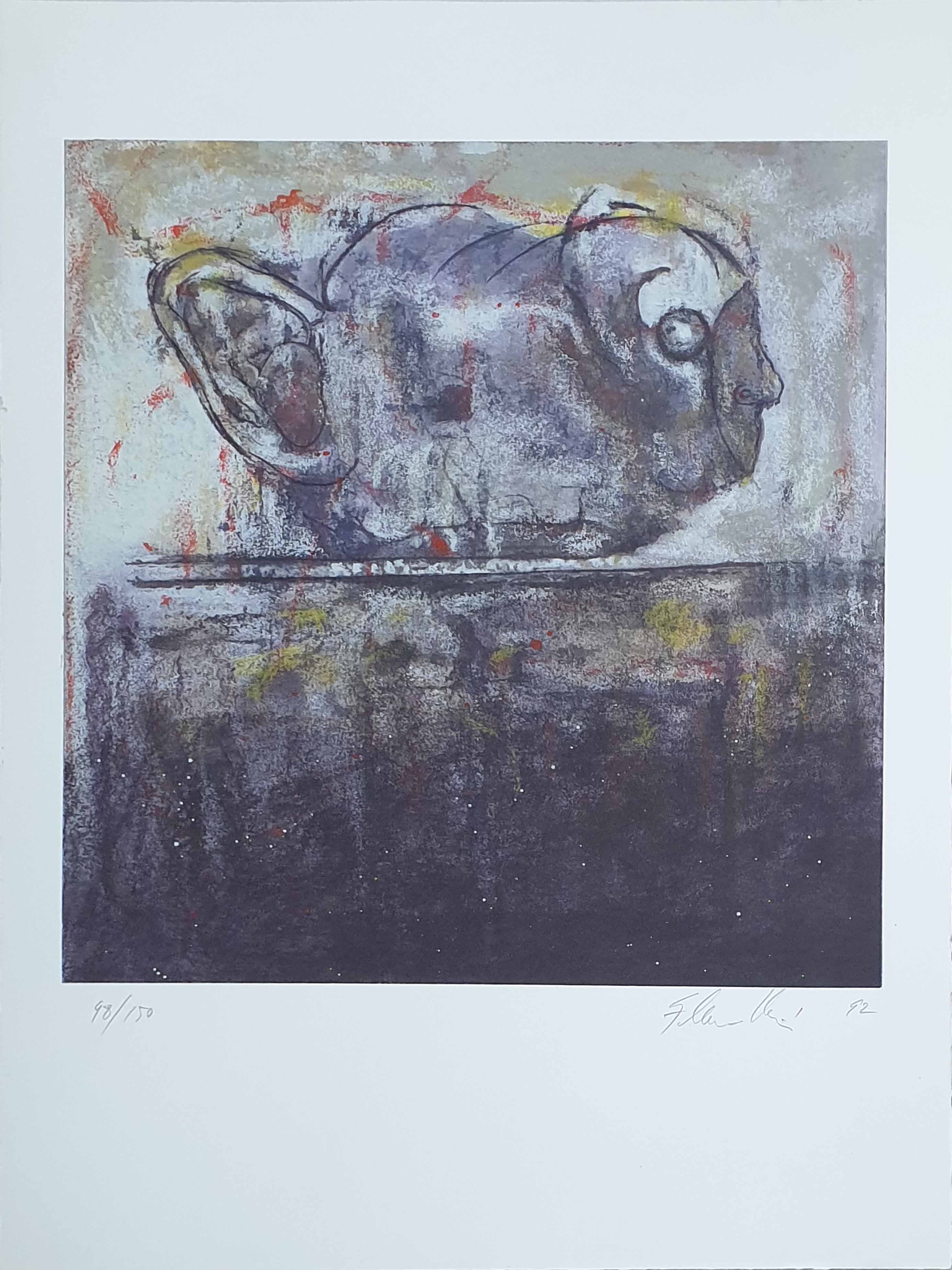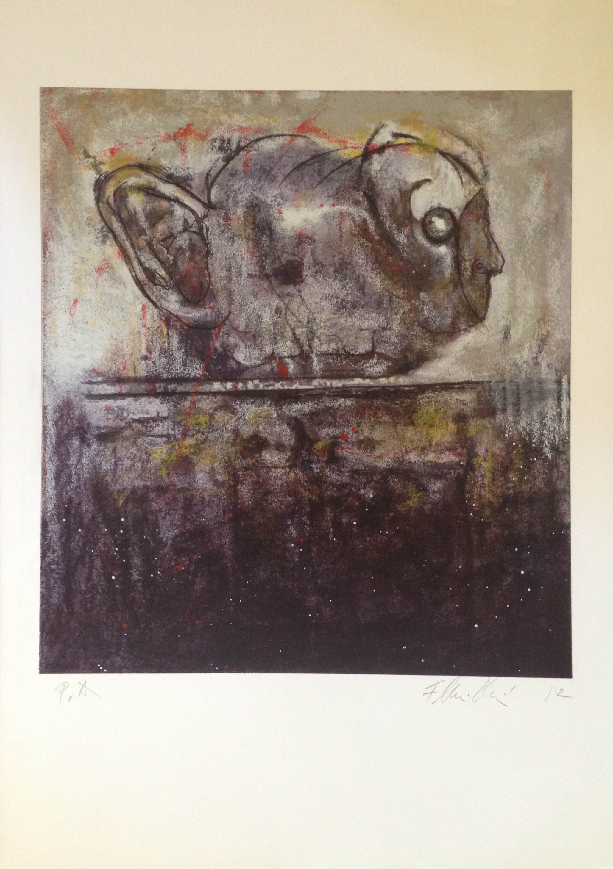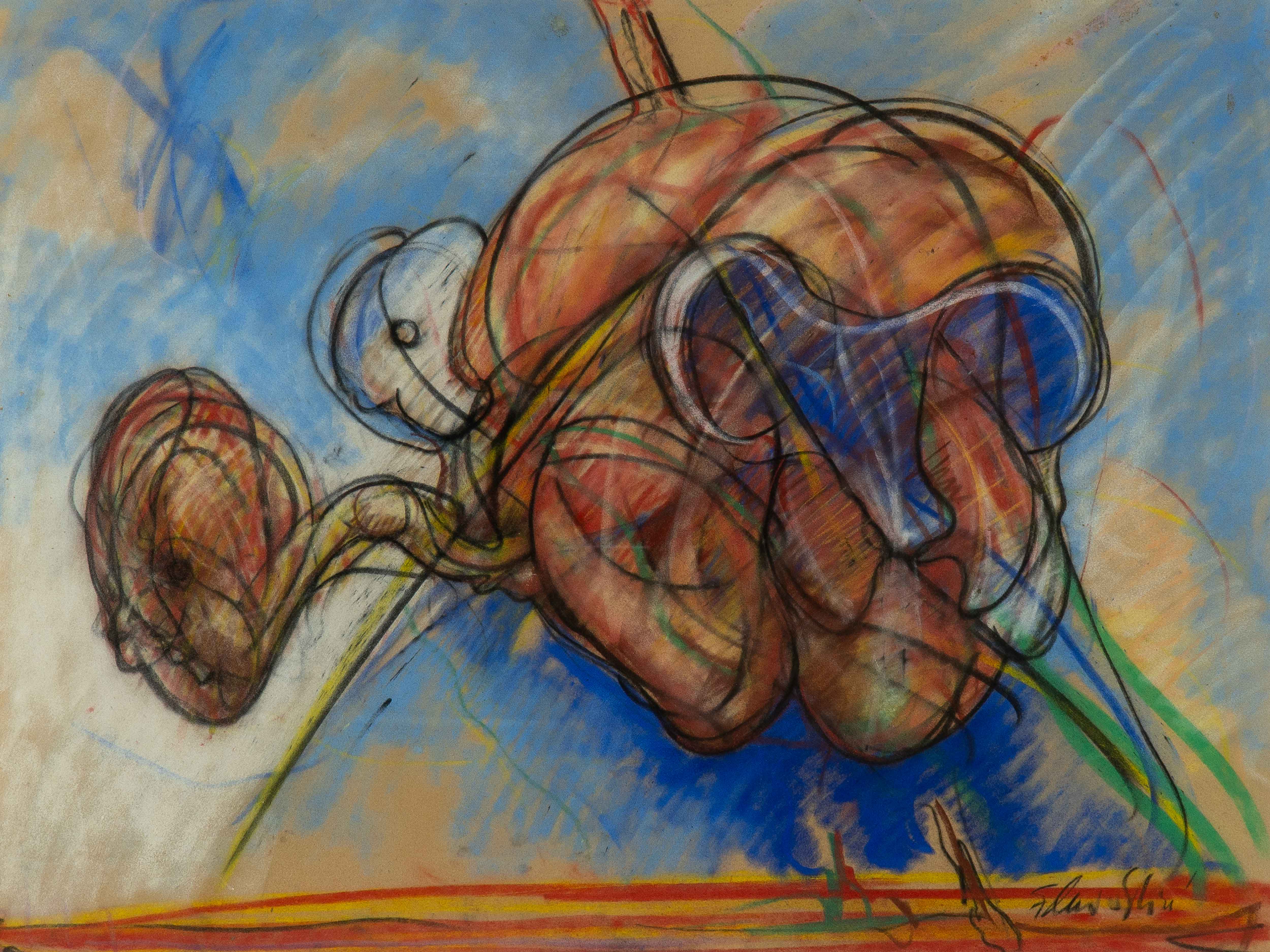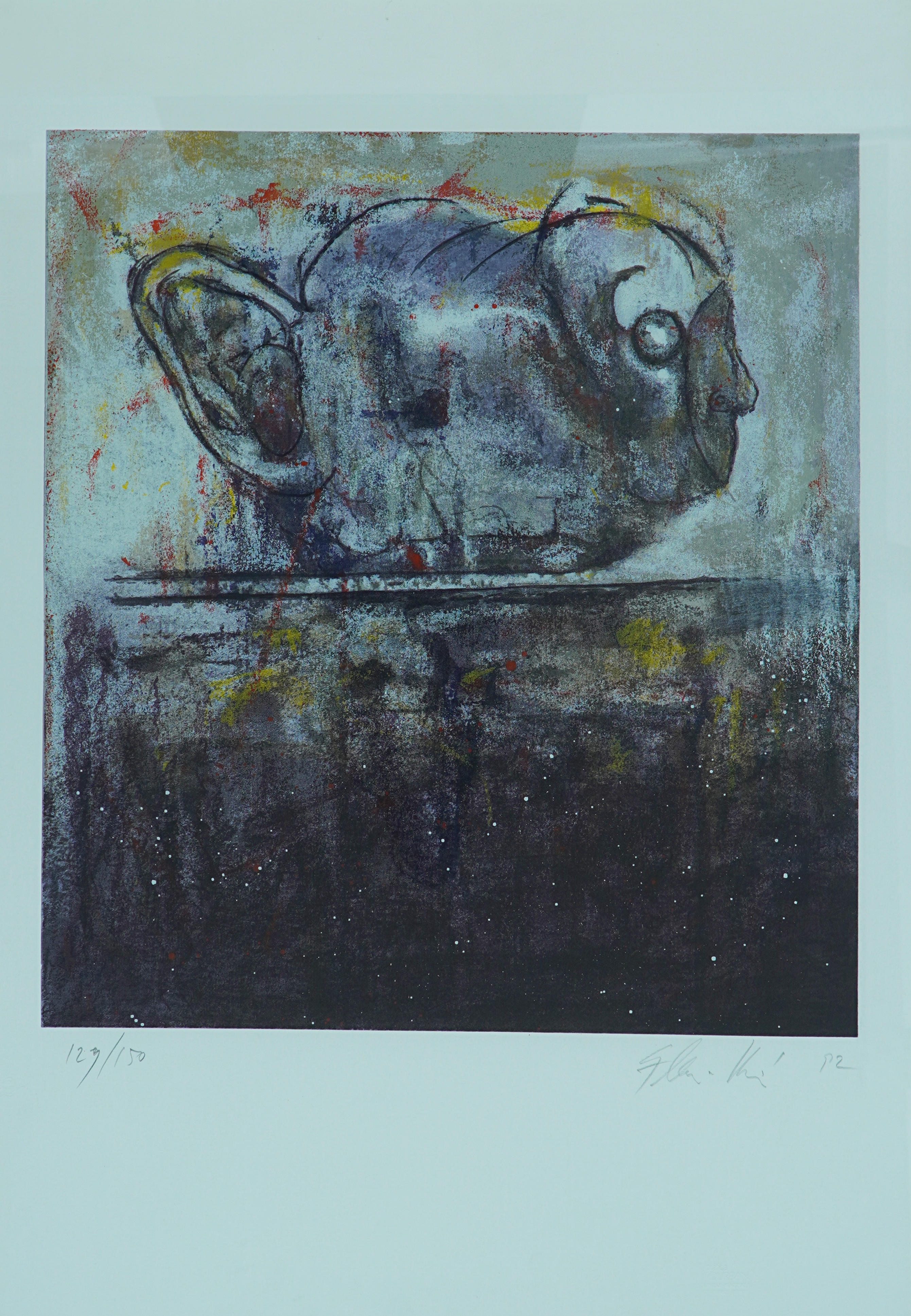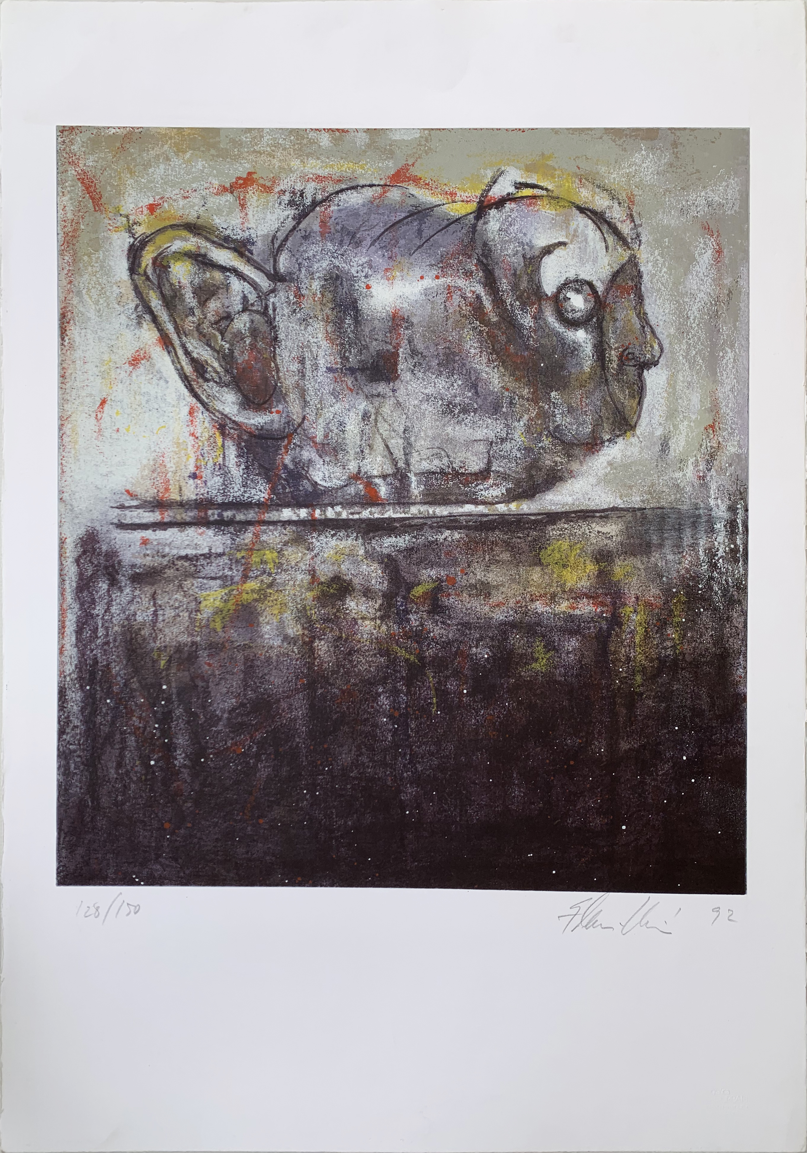 Shiro Tanaka (Sapporo, Japão 1928). Pintor, gravador, desenhista e cenógrafo. Chega ao Brasil em 1932, e instala-se com a família numa colônia japonesa em Tomé-Açu, no Pará. Reside em São Paulo a partir de 1940. Estuda na Escola Profissional Getúlio Vargas, onde conhece Octávio Araújo (1926-2015), Marcelo Grassmann (1925-2013) e Luiz Sacilotto (1924-2003). Por volta de 1943 tem contato com Alfredo Volpi (1896-1988) e Francisco Rebolo (1902-1980) integrantes do Grupo Santa Helena. Em 1947, integra o Grupo Seibi. No ano seguinte, trabalha na molduraria do pintor Tadashi Kaminagai (1899-1982). Com bolsa de estudo, viaja a Paris, onde permanece de 1953 a 1983. Estuda mosaico com Gino Severini (1883-1966), gravura em metal com Johnny Friedlaender (1912-1992) e litografia na École National Supérieure des Beaux-Arts [Escola Nacional Superior de Belas Artes]; e freqüenta o ateliê de Sugai e Tabuchi. Na década de 1960, participa do movimento artístico brasileiro e integra o Grupo Austral (Movimento Phases) de São Paulo. Dedica-se à abstração informal, desde a década de 1950. A partir dos anos 1970, suas telas apresentam sugestões de figuras, por vezes seres fantásticos ou monstruosos. Em 1990, é publicado o livro Flávio-Shiró, pela editora Salamandra. A exposição Trajetória: 50 Anos de Pintura de Flavio-Shiró é apresentada no Museu de Arte Moderna do Rio de Janeiro (MAM/RJ) e no Hara Museum of Contemporary Art, em Tóquio, em 1993, e no Museu de Arte de São Paulo Assis Chateaubriand (Masp), em 1994.
