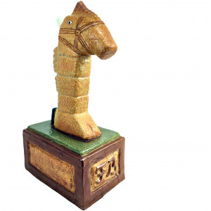 Escultura em cerâmica, representando "Cavalo de Troia". Monogramado em alto relevo, assinado e datado:1993.