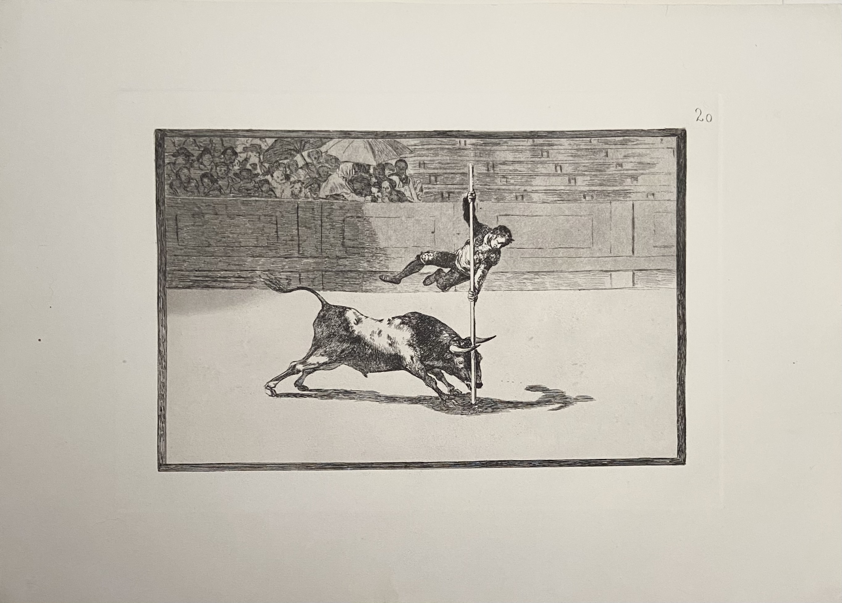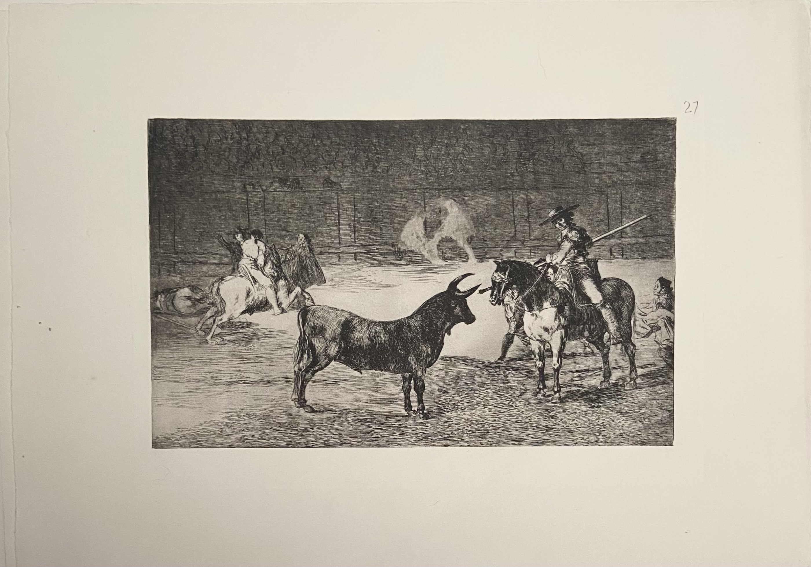 Alarmado pela reação antiliberal, Goya se muda, em 1824, para uma estação de águas na França, colocando a distância como meio de maior segurança. Visita Paris e depois se instala, com Leocadia Weiss, em Bordeaux, onde encontra alguns de seus melhores amigos exilados. Em ambiente mais tranqüilo e com a máxima ilusão, aprende a técnica da litografia e aperfeiçoa os seus conhecimentos e capacidades expressivas nesse meio gráfico tão recente. Los Toros de Burdeos foi o último ciclo que Goya fez pouco antes de morrer.