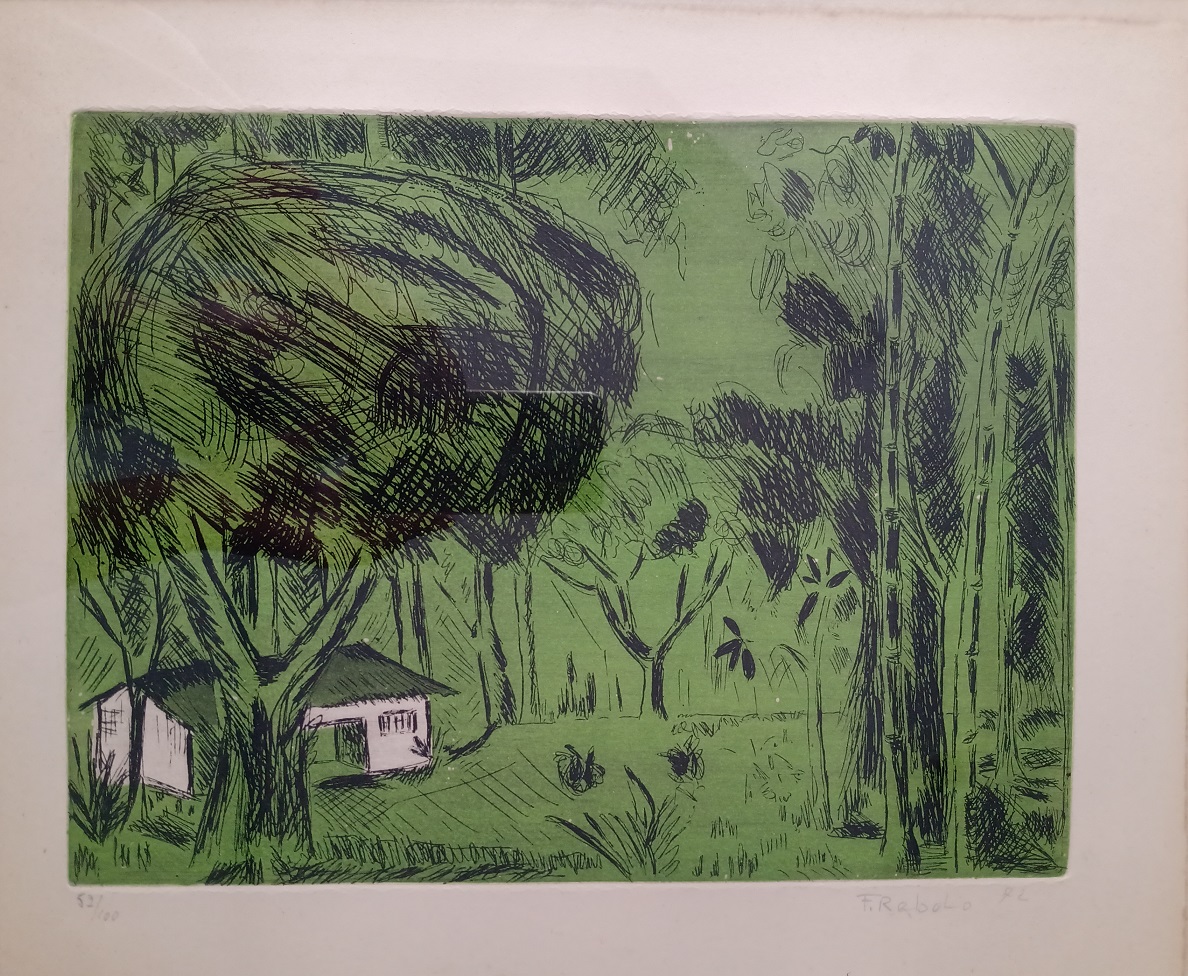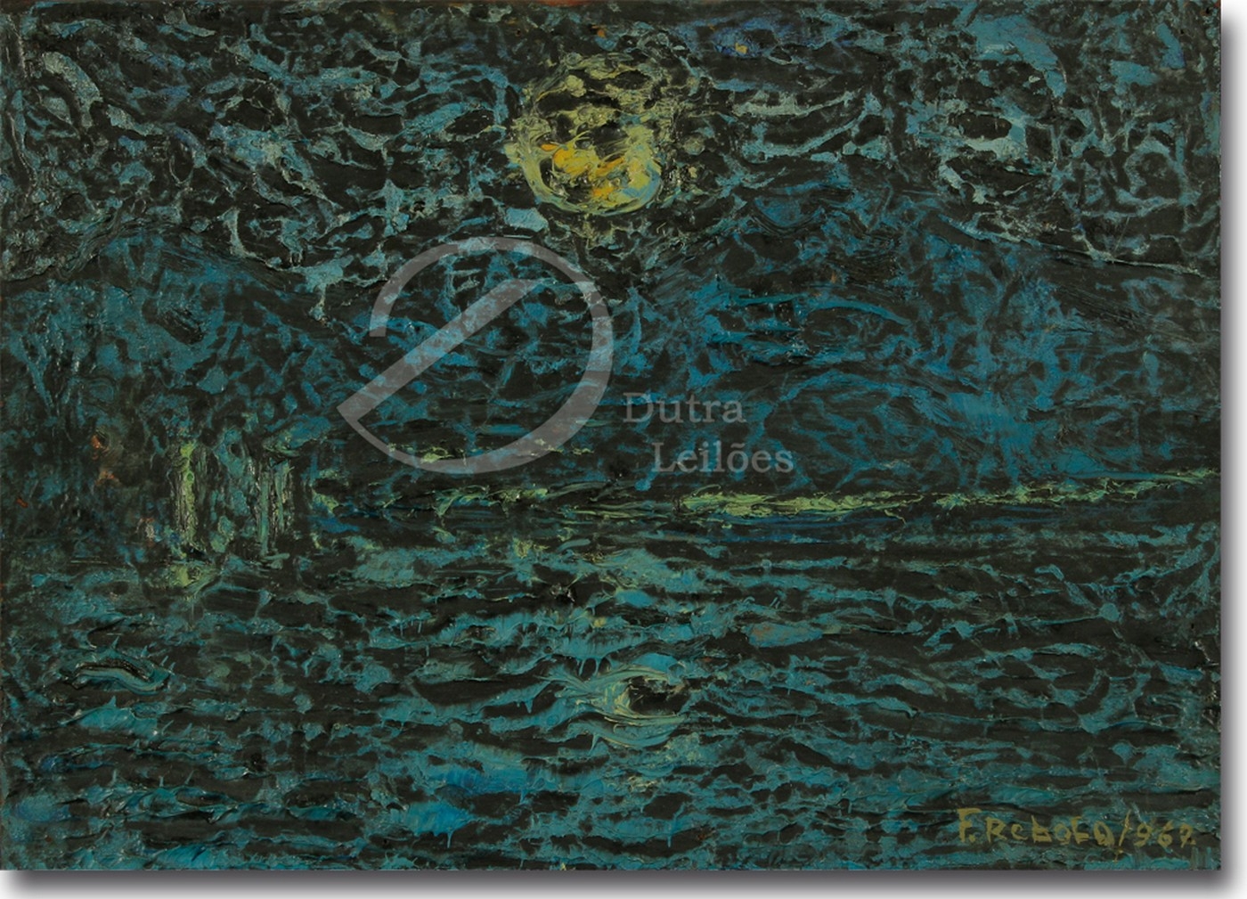 FRANCISCO REBOLO (1902 – 1980) CONSTA DA INSCRIÇÃO NO C.I.E.: "COLORIDO A MÃO". GRAVURA EM METAL - MONOTIPIA - DÉCADA 1960. ASSINADO EM BICO DE PENA E ASSINADO EM GRAFITE, ABAIXO. MEDIDAS: 33 X 40 CM. A Gravura na Obra de Rebolo. Em dois períodos de sua vida artística Rebolo dedicou-se à gravura. De 1959 a 1962 trabalhou mais de 20 matrizes de xilogravura. Depois entre 1970 e 1980, estimulado por Marcelo Grassmann e outros amigos gravadores, produziu cerca de 50 matrizes de águas-fortes e litogravuras. A xilogravura representou uma continuação das monotipias, praticada nos anos 1950 com expressivos resultados. Nos anos 1970, o artista passou para o metal e conseguiu usando o cobre uma forte simbiose ao aquarelar algumas de suas águas fortes. O pintor produziu gravuras por gosto e com gosto. Em sua obra a gravura tem autonomia e vai muito além da utilização como um instrumento adicional para o desenvolvimento de óleos. As gravuras de Rebolo podem ser e são apreciadas por sua condição de gravura.