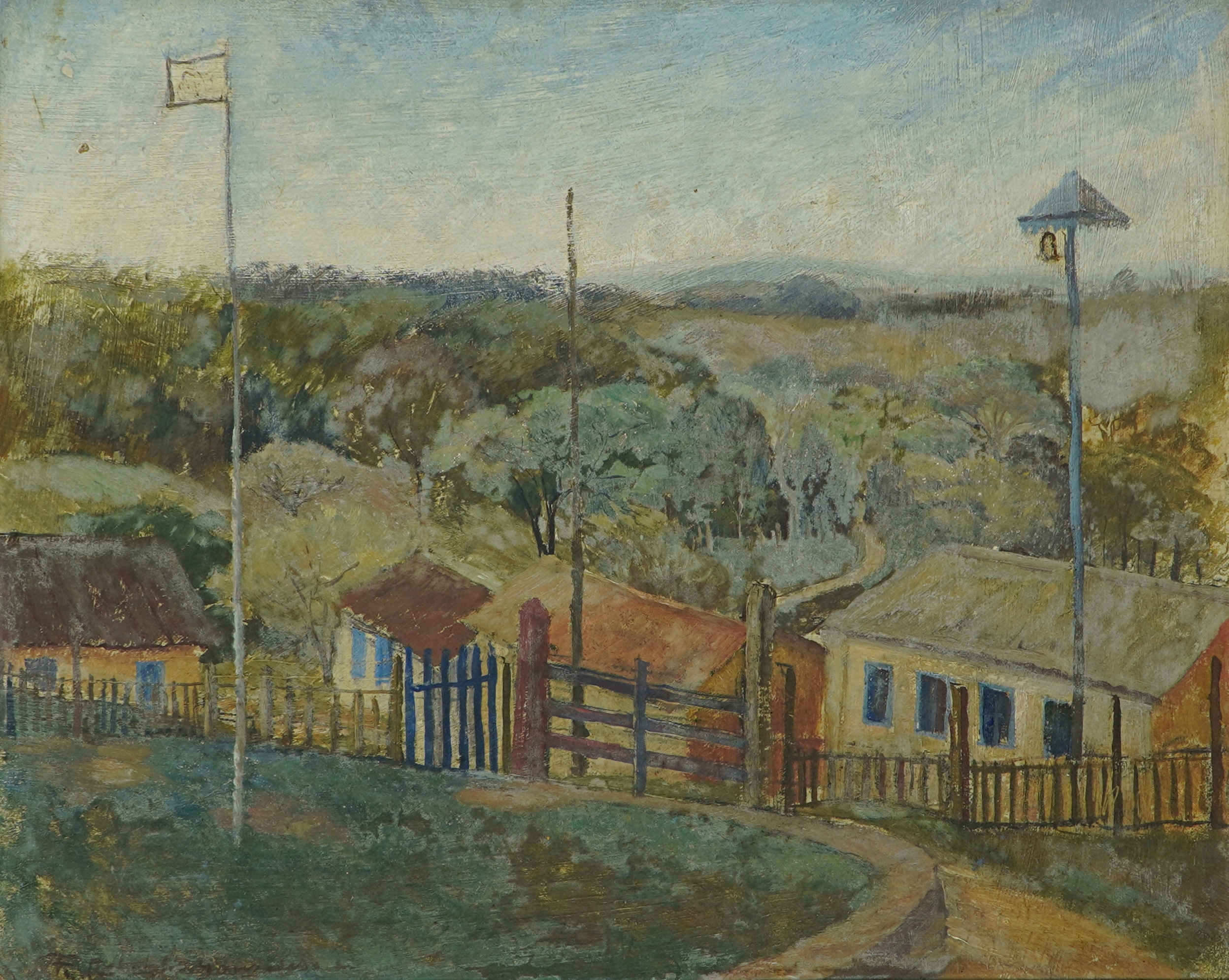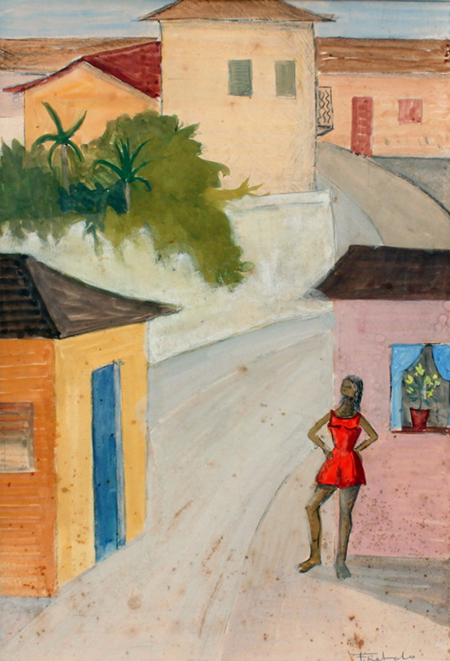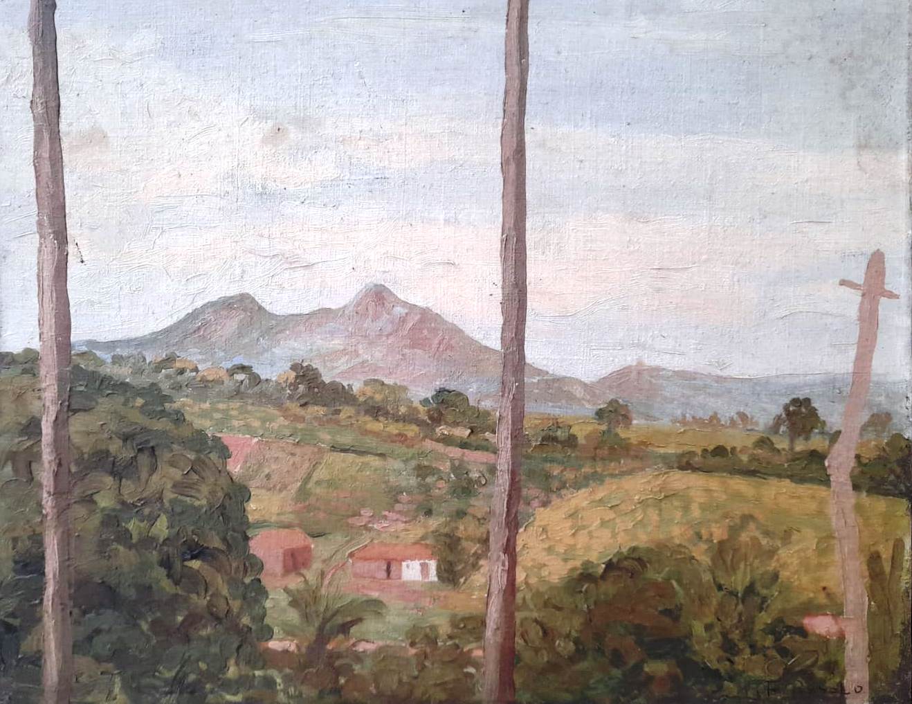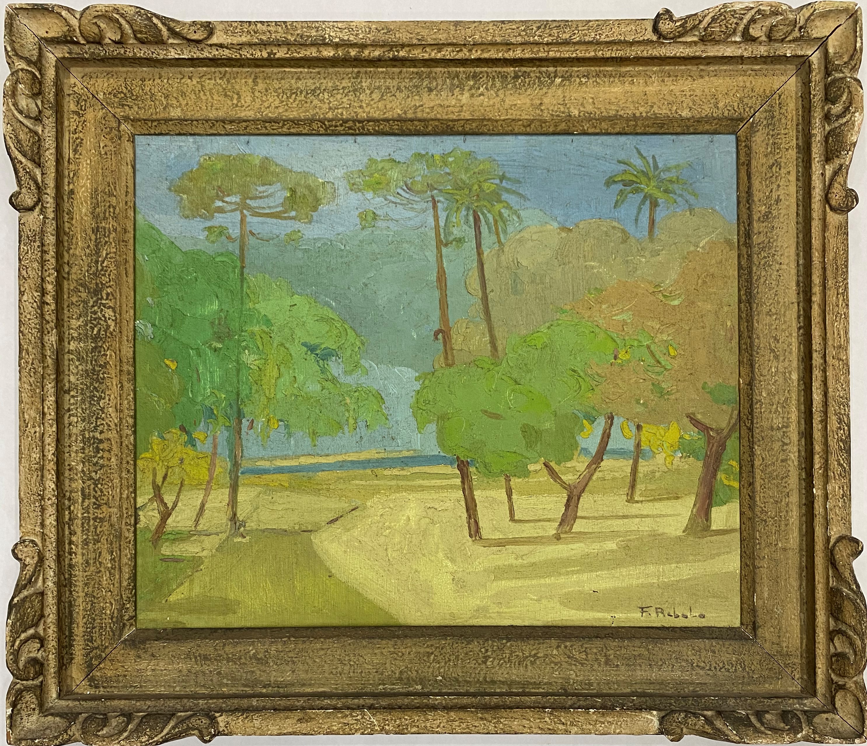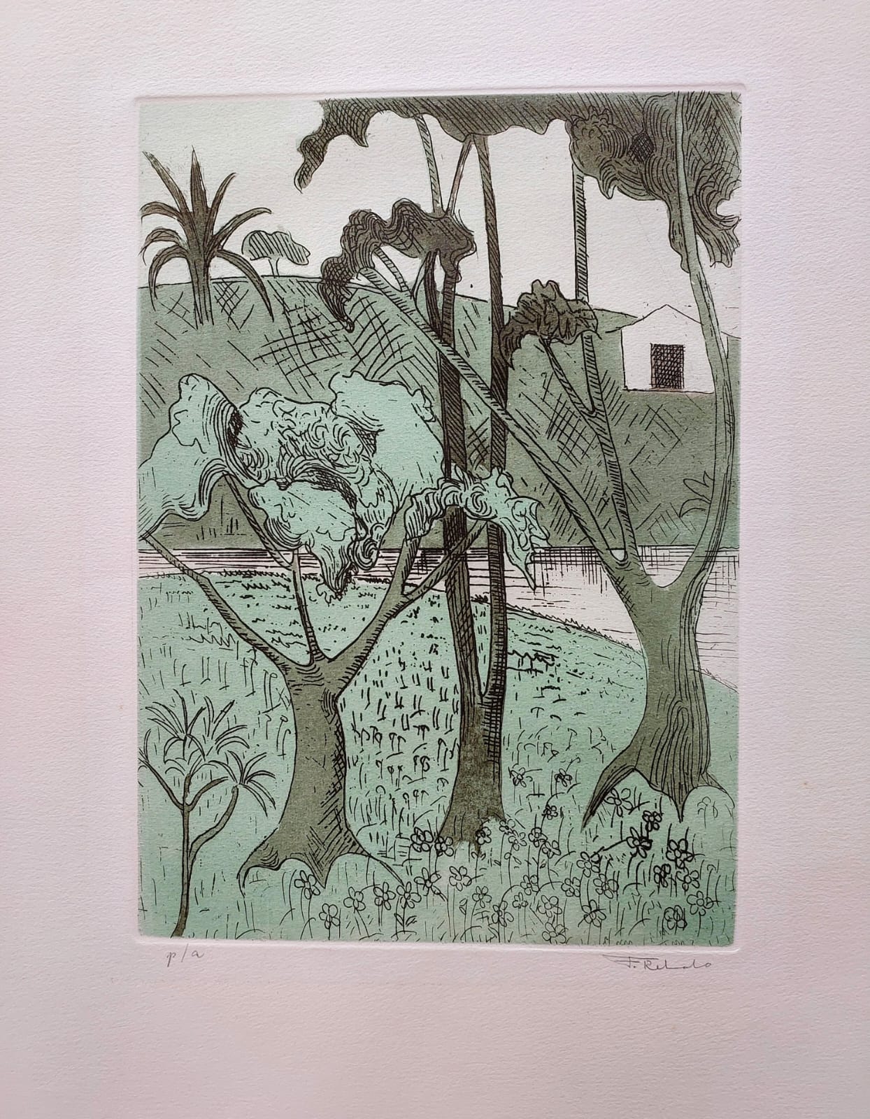 FRANCISCO REBOLO (1902 – 1980) CONSTA DA INSCRIÇÃO NO C.I.E.: "COLORIDO A MÃO". GRAVURA EM METAL - MONOTIPIA - DÉCADA 1960. ASSINADO EM BICO DE PENA E ASSINADO EM GRAFITE, ABAIXO. MEDIDAS: 33 X 40 CM. A Gravura na Obra de Rebolo. Em dois períodos de sua vida artística Rebolo dedicou-se à gravura. De 1959 a 1962 trabalhou mais de 20 matrizes de xilogravura. Depois entre 1970 e 1980, estimulado por Marcelo Grassmann e outros amigos gravadores, produziu cerca de 50 matrizes de águas-fortes e litogravuras. A xilogravura representou uma continuação das monotipias, praticada nos anos 1950 com expressivos resultados. Nos anos 1970, o artista passou para o metal e conseguiu usando o cobre uma forte simbiose ao aquarelar algumas de suas águas fortes. O pintor produziu gravuras por gosto e com gosto. Em sua obra a gravura tem autonomia e vai muito além da utilização como um instrumento adicional para o desenvolvimento de óleos. As gravuras de Rebolo podem ser e são apreciadas por sua condição de gravura.