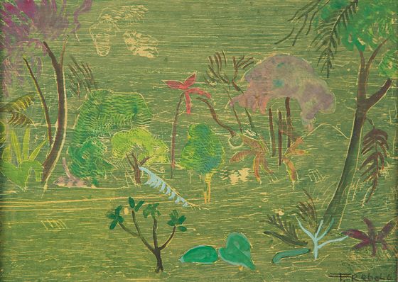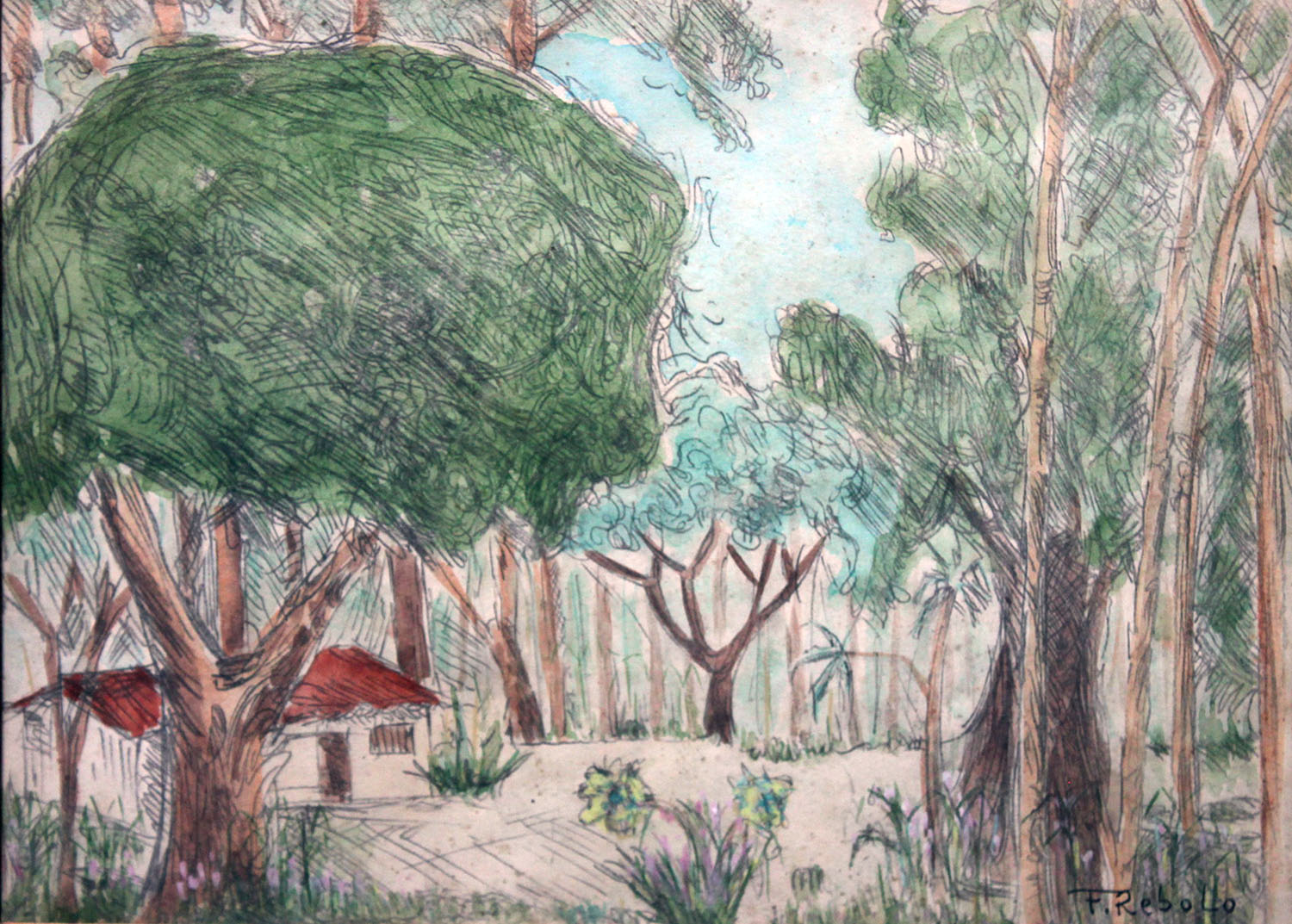 FRANCISCO REBOLO (1902 – 1980) CONSTA DA INSCRIÇÃO NO C.I.E.: "COLORIDO A MÃO". GRAVURA EM METAL - MONOTIPIA - DÉCADA 1960. ASSINADO EM BICO DE PENA E ASSINADO EM GRAFITE, ABAIXO. MEDIDAS: 33 X 40 CM. A Gravura na Obra de Rebolo. Em dois períodos de sua vida artística Rebolo dedicou-se à gravura. De 1959 a 1962 trabalhou mais de 20 matrizes de xilogravura. Depois entre 1970 e 1980, estimulado por Marcelo Grassmann e outros amigos gravadores, produziu cerca de 50 matrizes de águas-fortes e litogravuras. A xilogravura representou uma continuação das monotipias, praticada nos anos 1950 com expressivos resultados. Nos anos 1970, o artista passou para o metal e conseguiu usando o cobre uma forte simbiose ao aquarelar algumas de suas águas fortes. O pintor produziu gravuras por gosto e com gosto. Em sua obra a gravura tem autonomia e vai muito além da utilização como um instrumento adicional para o desenvolvimento de óleos. As gravuras de Rebolo podem ser e são apreciadas por sua condição de gravura.