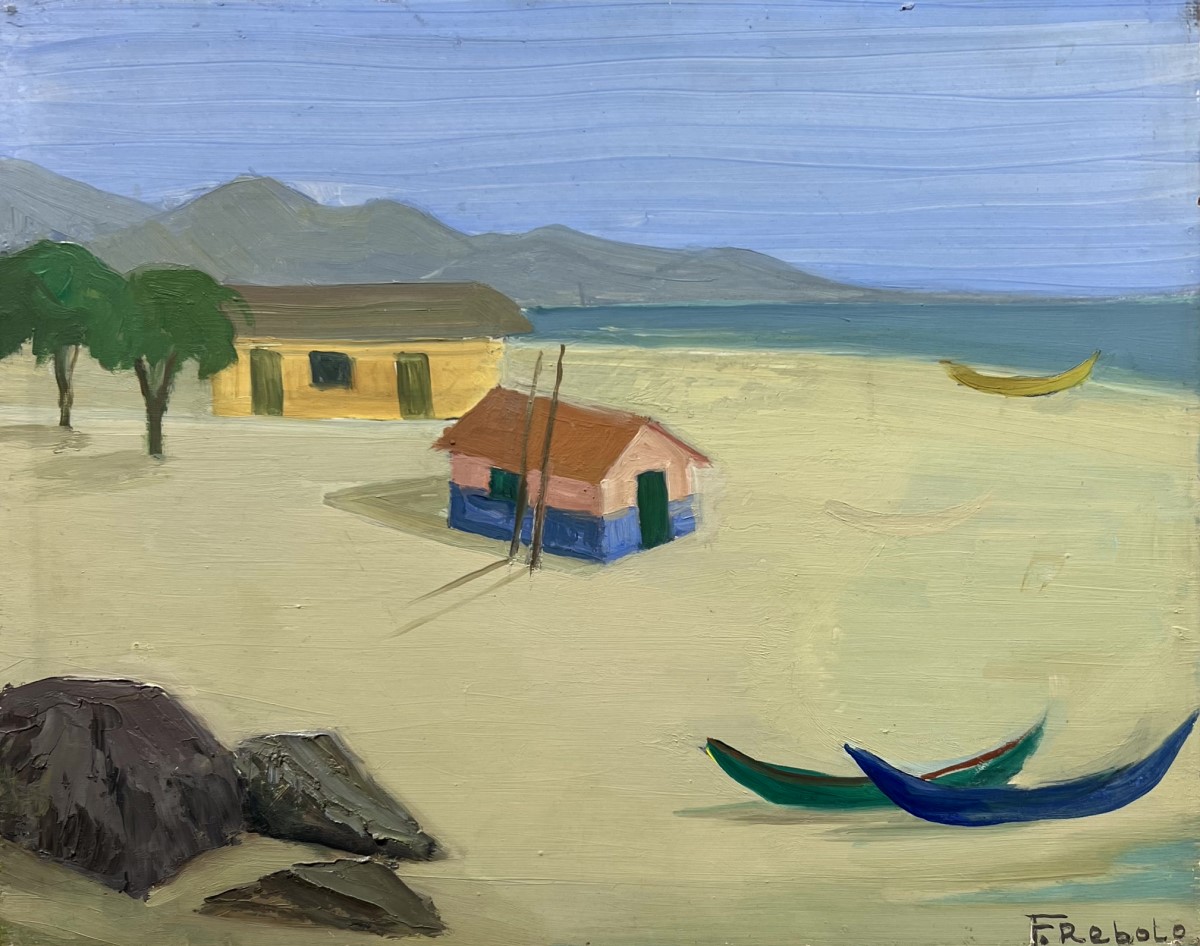 FRANCISCO REBOLO (1902 – 1980) CONSTA DA INSCRIÇÃO NO C.I.E.: "COLORIDO A MÃO". GRAVURA EM METAL - MONOTIPIA - DÉCADA 1960. ASSINADO EM BICO DE PENA E ASSINADO EM GRAFITE, ABAIXO. MEDIDAS: 33 X 40 CM. A Gravura na Obra de Rebolo. Em dois períodos de sua vida artística Rebolo dedicou-se à gravura. De 1959 a 1962 trabalhou mais de 20 matrizes de xilogravura. Depois entre 1970 e 1980, estimulado por Marcelo Grassmann e outros amigos gravadores, produziu cerca de 50 matrizes de águas-fortes e litogravuras. A xilogravura representou uma continuação das monotipias, praticada nos anos 1950 com expressivos resultados. Nos anos 1970, o artista passou para o metal e conseguiu usando o cobre uma forte simbiose ao aquarelar algumas de suas águas fortes. O pintor produziu gravuras por gosto e com gosto. Em sua obra a gravura tem autonomia e vai muito além da utilização como um instrumento adicional para o desenvolvimento de óleos. As gravuras de Rebolo podem ser e são apreciadas por sua condição de gravura.
