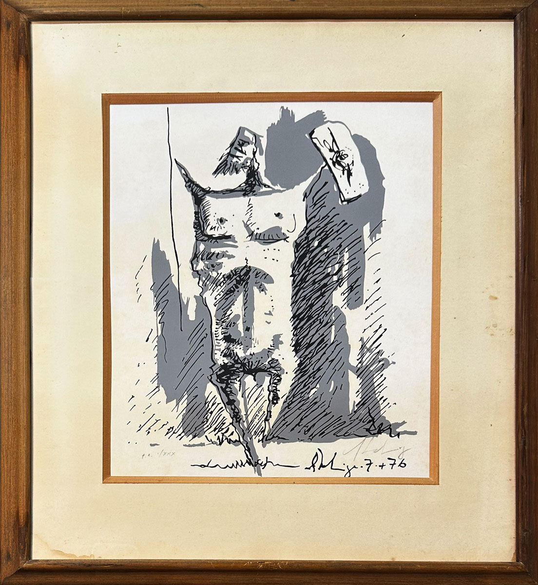 Francisco Stockinger - Guerreira deitada. Nanquim e aguada sobre papel, 33x45 cm, 1966, A.C.I.D. Com moldura