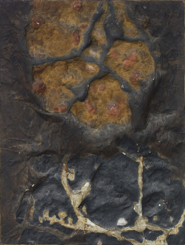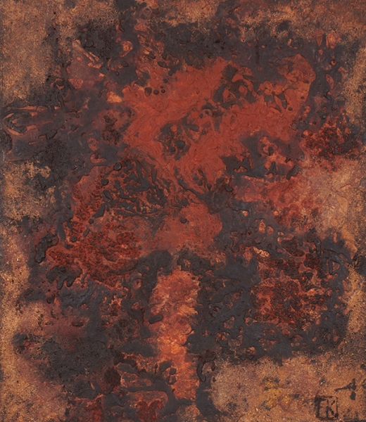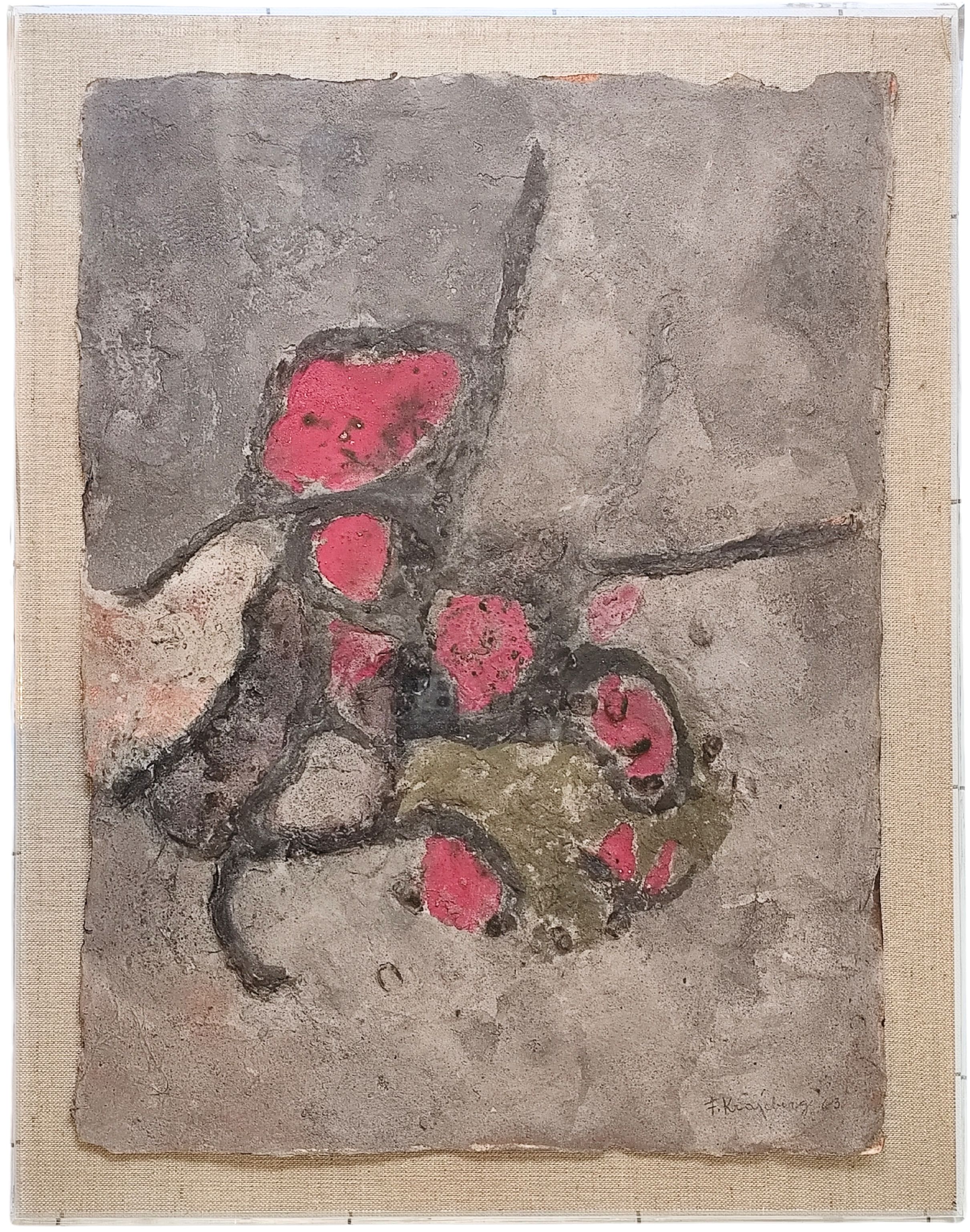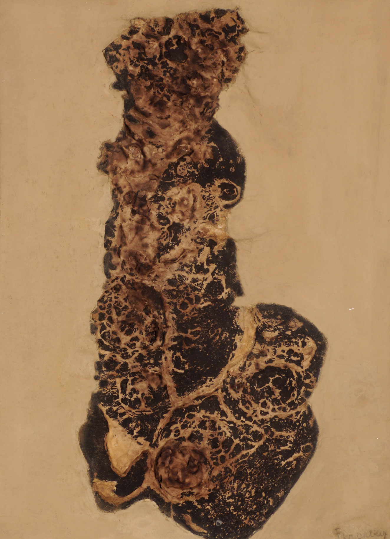FRANS KRAJCBERG, Composição, Guache sobre Papel, ACID, 33 x 46cm (m.i). Datado 1952 ( com etiqueta no verso de RENATO MAGALHAES GOUVEIA E JAMES LISBOA)
