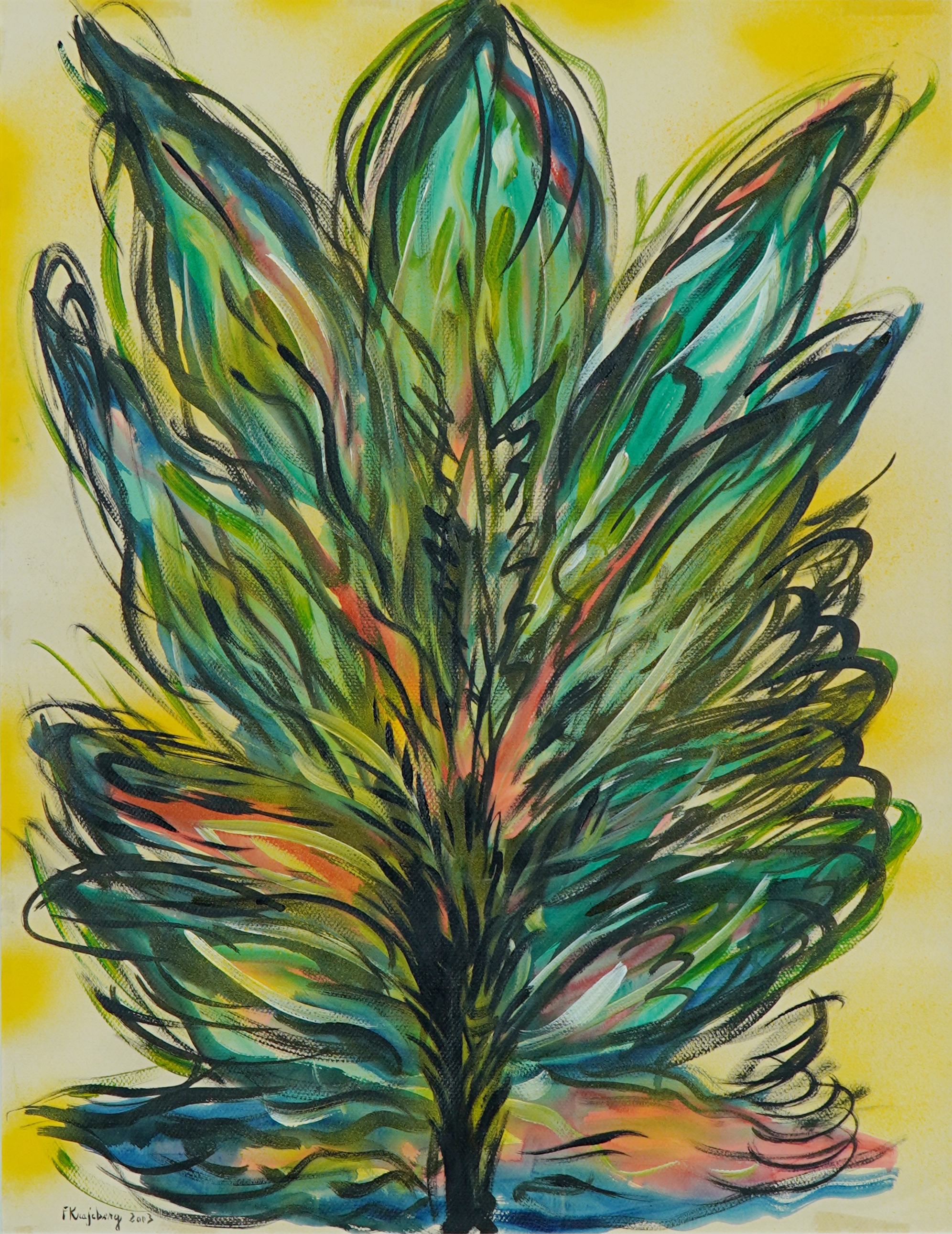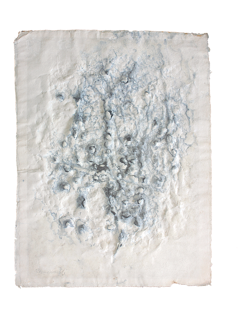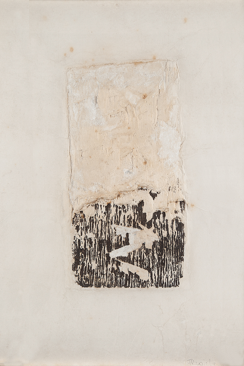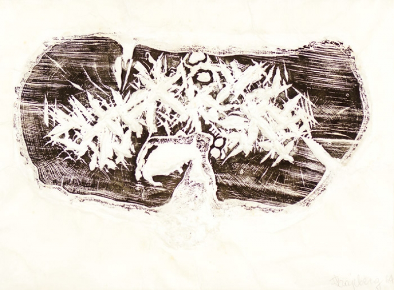 FRANS KRAJCBERG, Composição, Guache sobre Papel, ACID, 33 x 46cm (m.i). Datado 1952 ( com etiqueta no verso de RENATO MAGALHAES GOUVEIA E JAMES LISBOA)