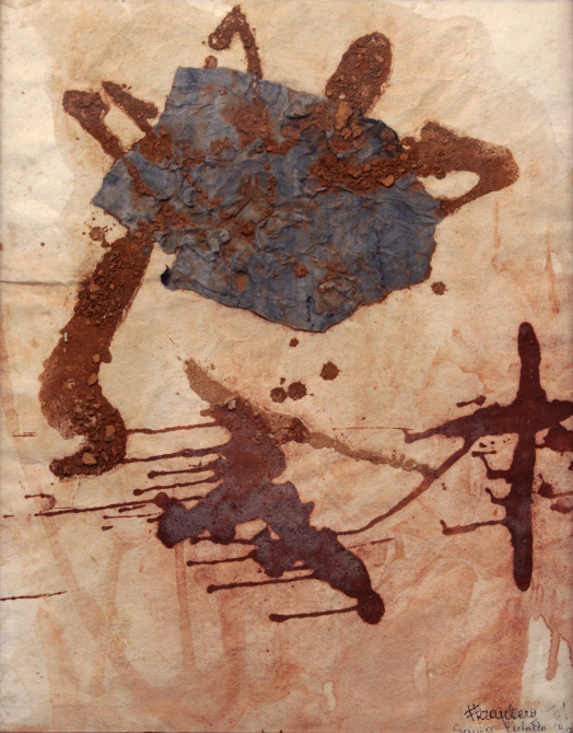 FRANS KRAJCBERG, Composição, Guache sobre Papel, ACID, 33 x 46cm (m.i). Datado 1952 ( com etiqueta no verso de RENATO MAGALHAES GOUVEIA E JAMES LISBOA)
