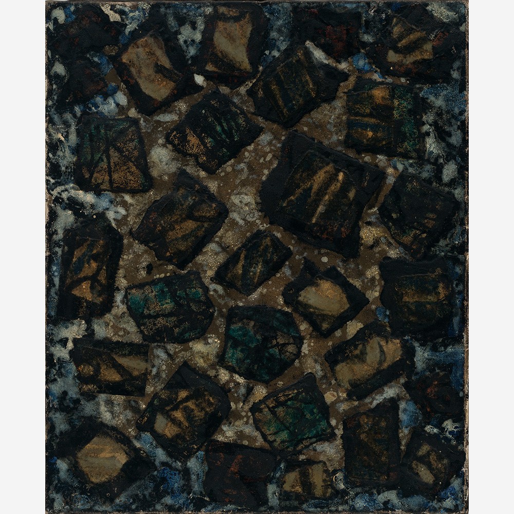 FRANS KRAJCBERG, Composição, Guache sobre Papel, ACID, 33 x 46cm (m.i). Datado 1952 ( com etiqueta no verso de RENATO MAGALHAES GOUVEIA E JAMES LISBOA)