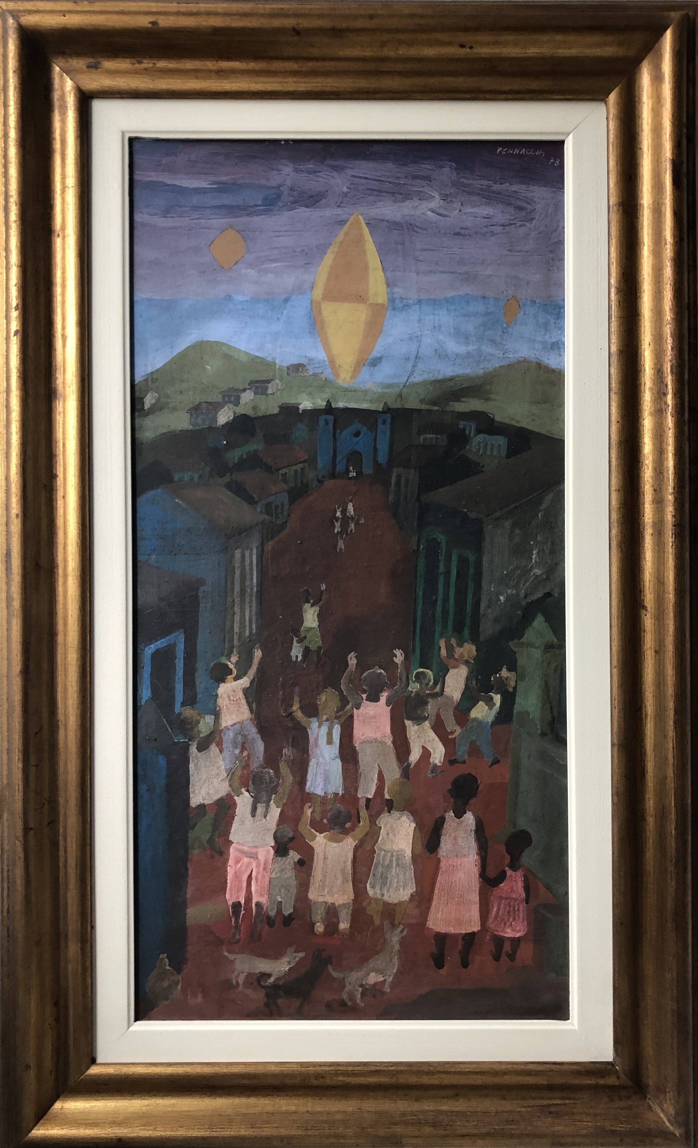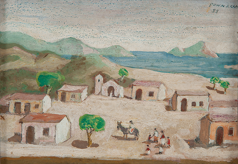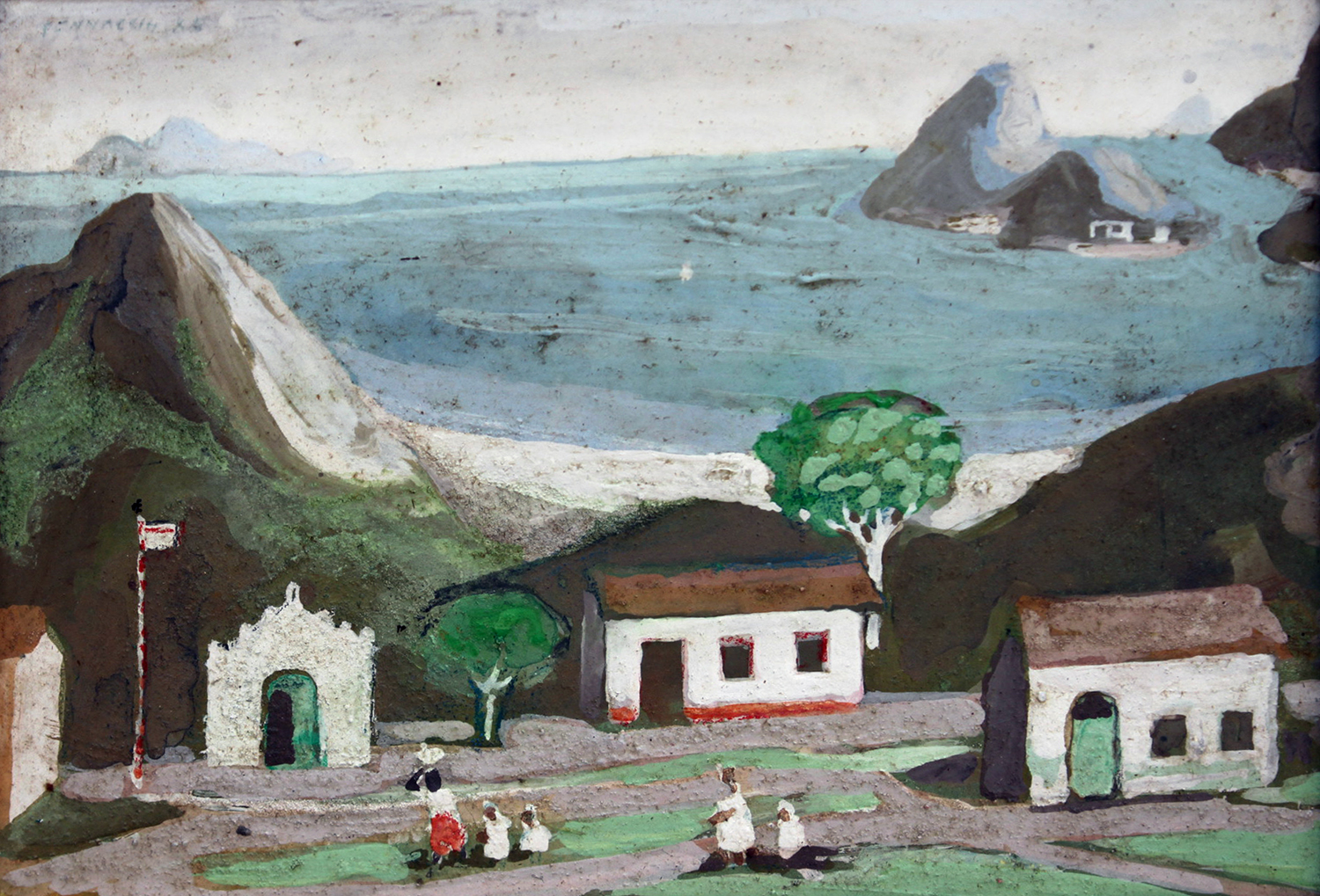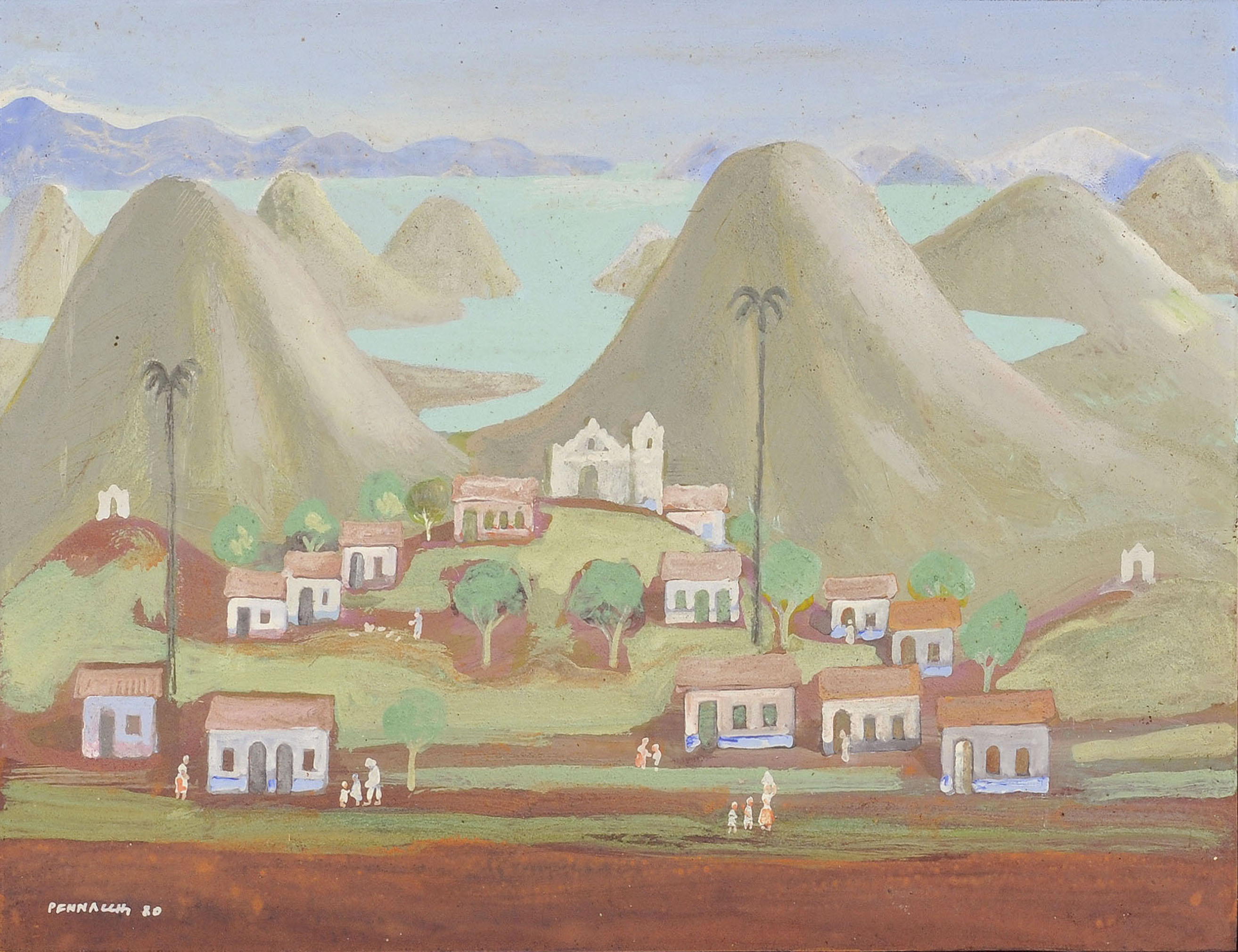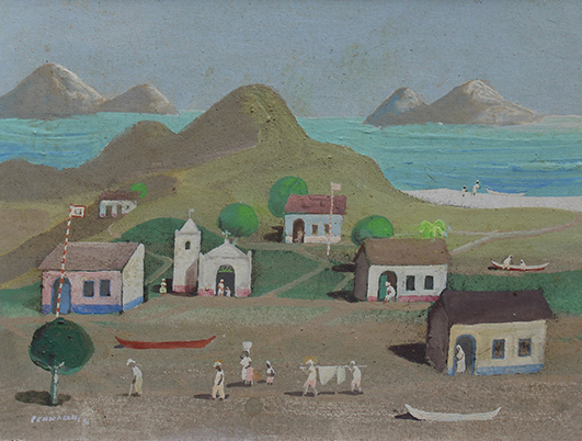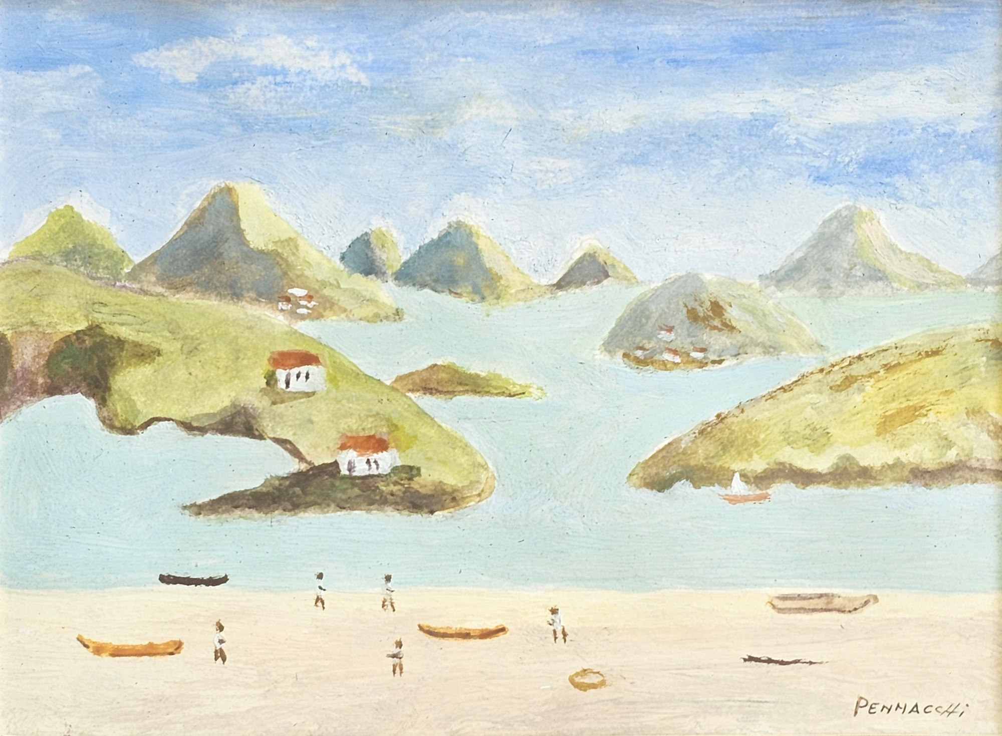 Fulvio Pennacchi - Vila de pescadores. Óleo sobre eucatex, 50x70 cm, 1980, A.C.I.E. e V. Com moldura