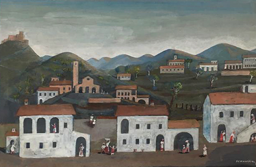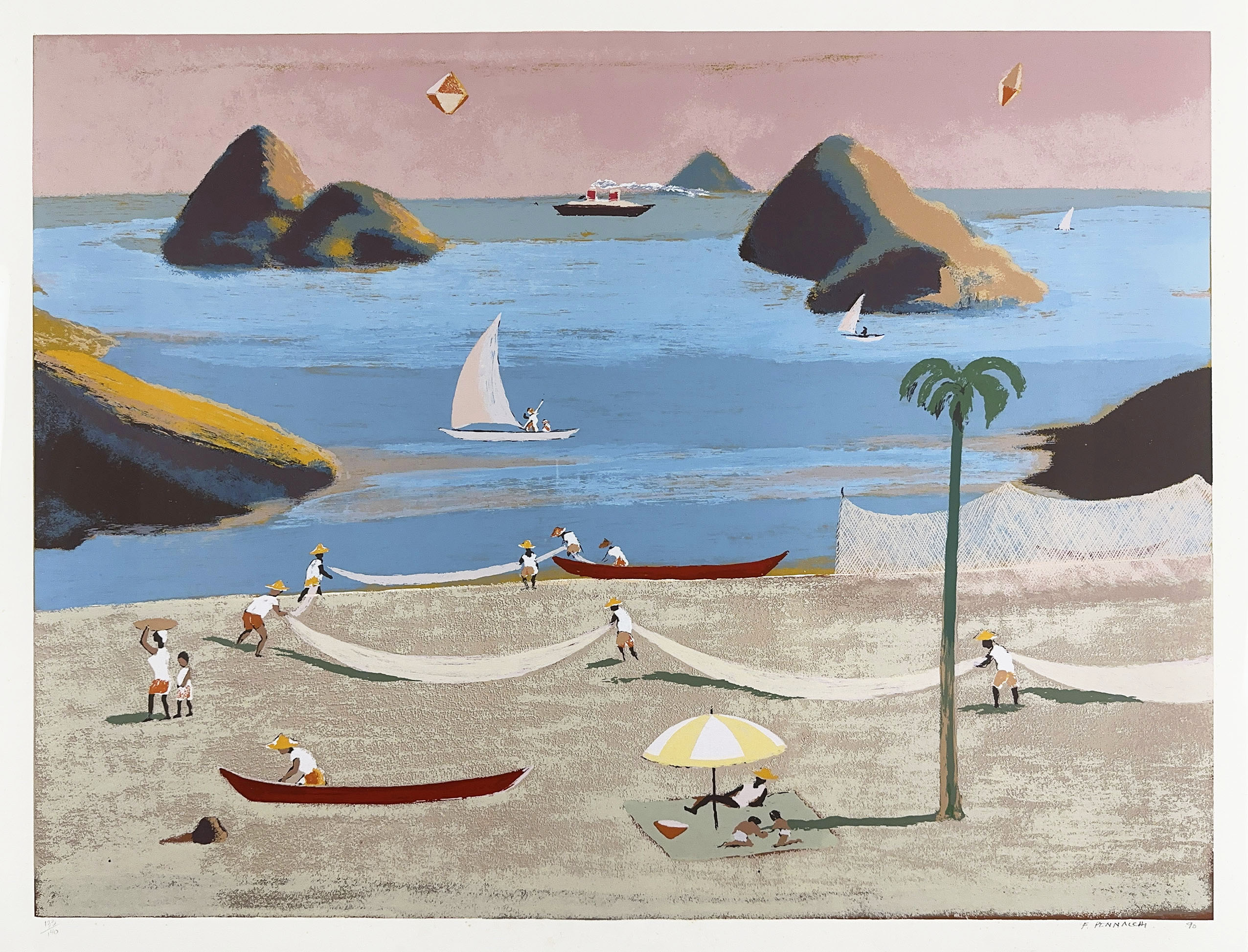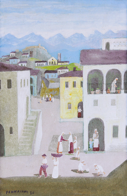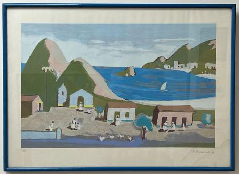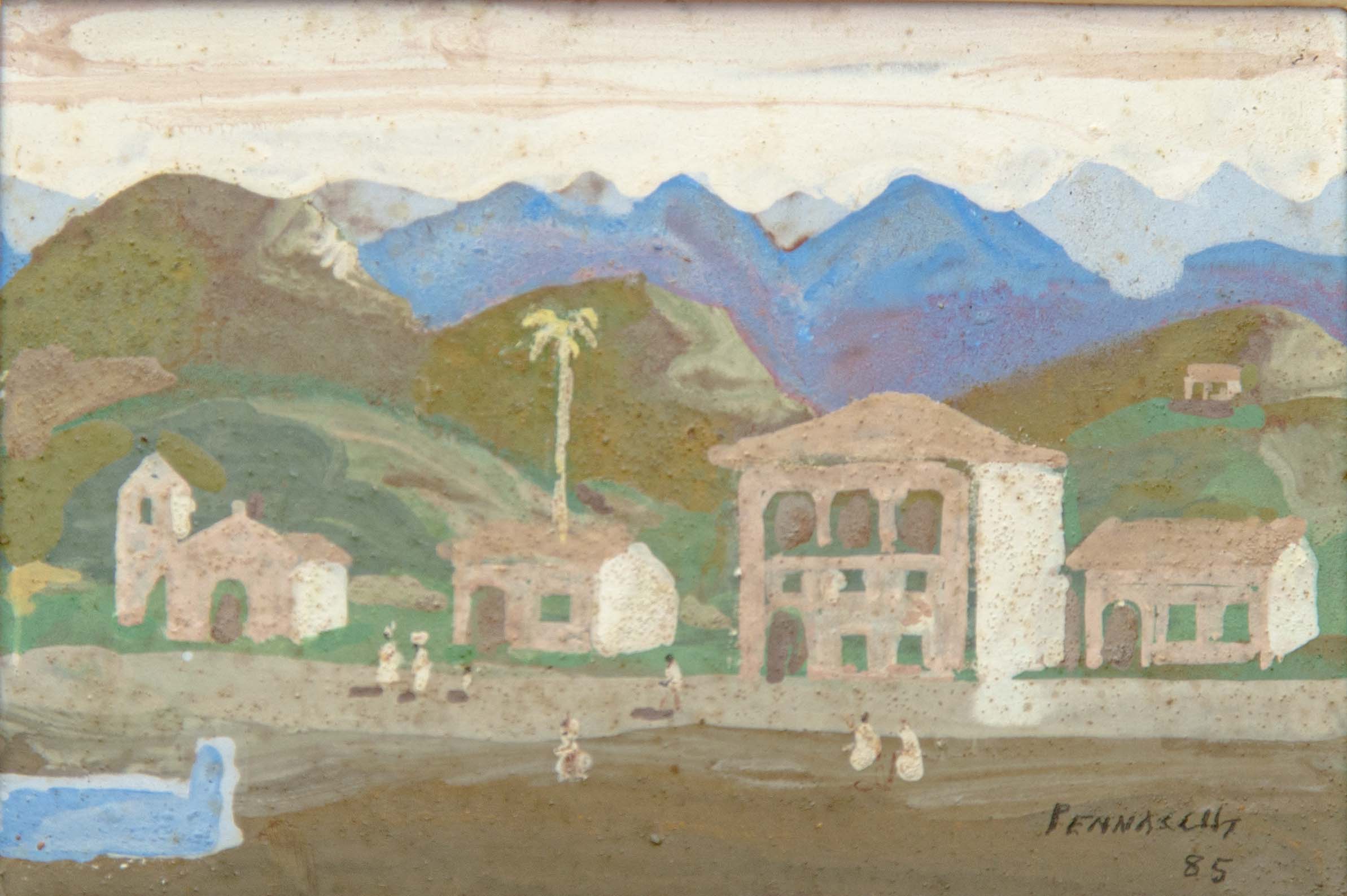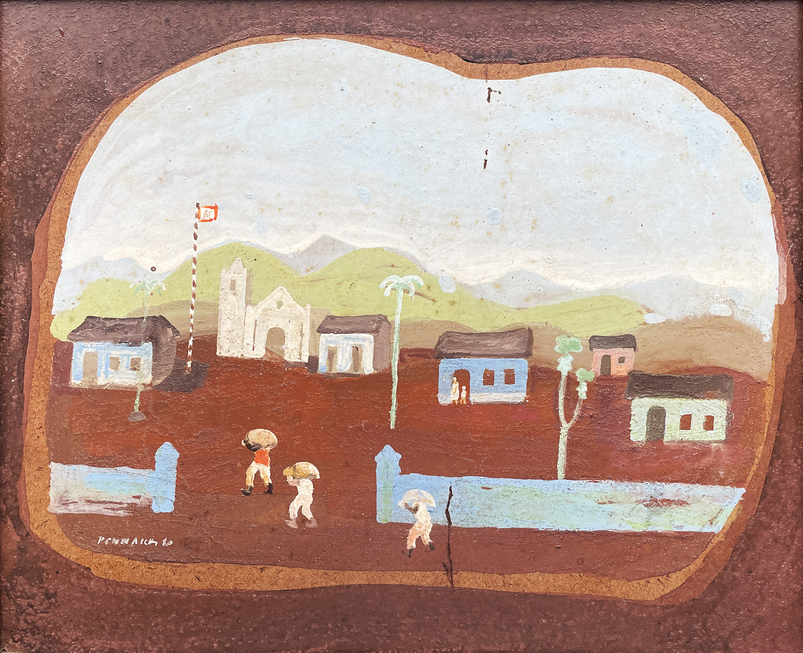 Fulvio Pennacchi - Vila de pescadores. Óleo sobre eucatex, 50x70 cm, 1980, A.C.I.E. e V. Com moldura