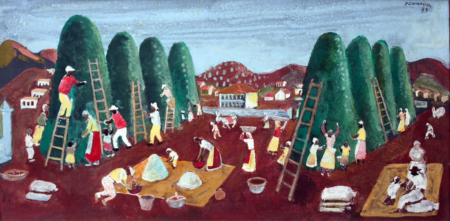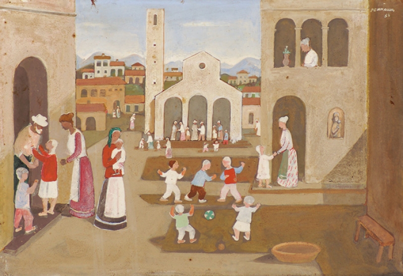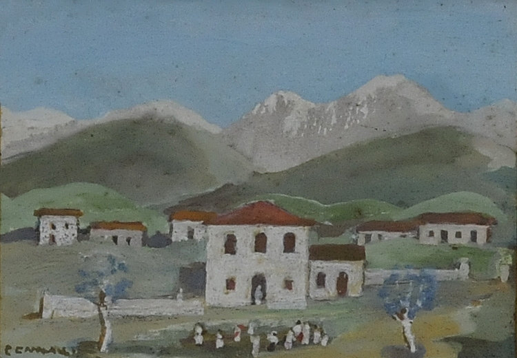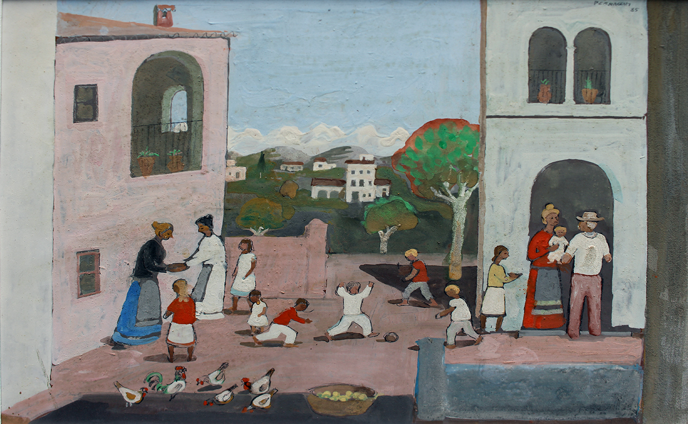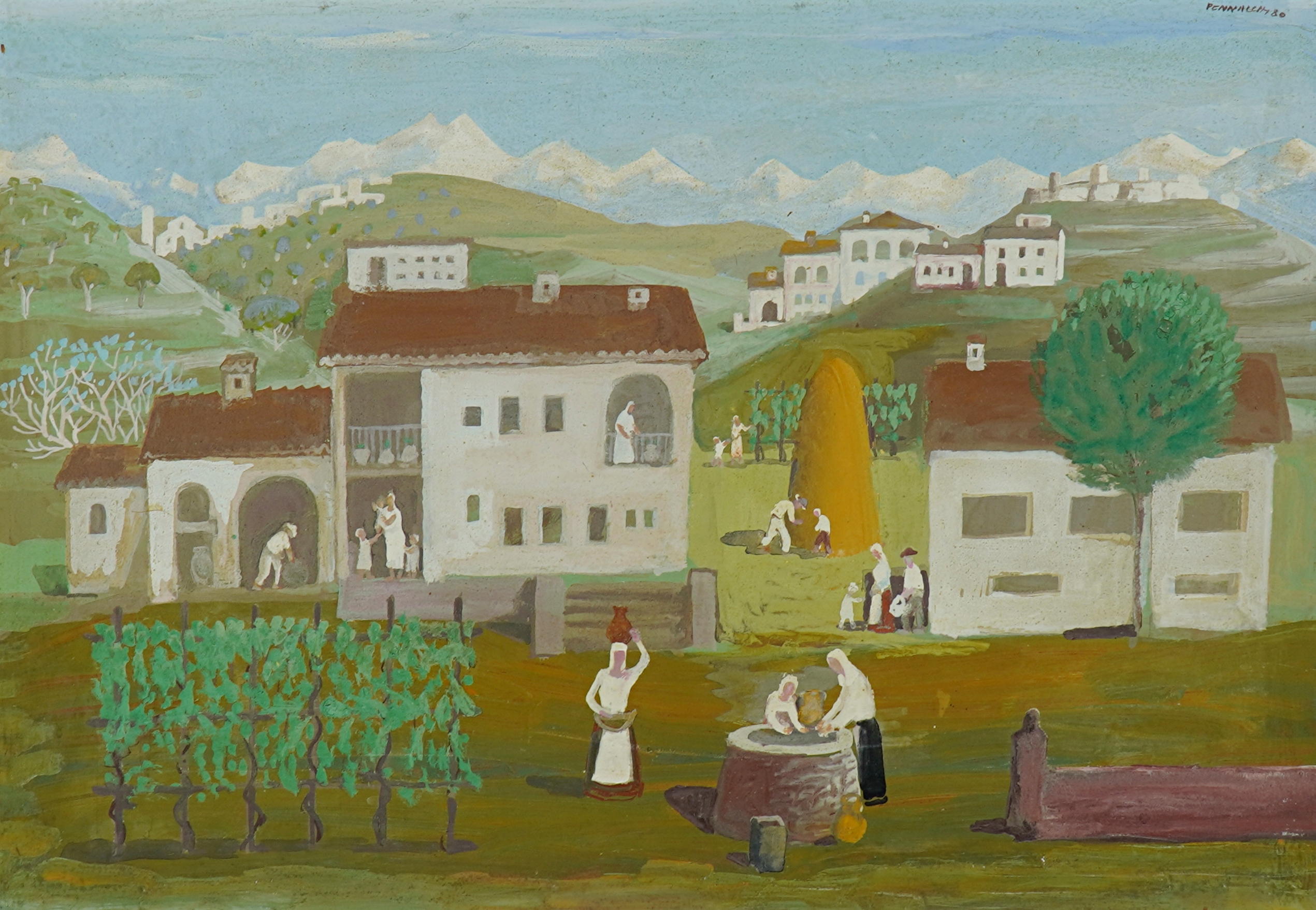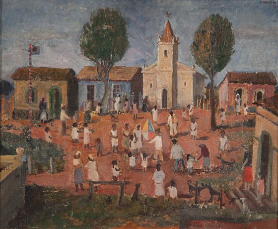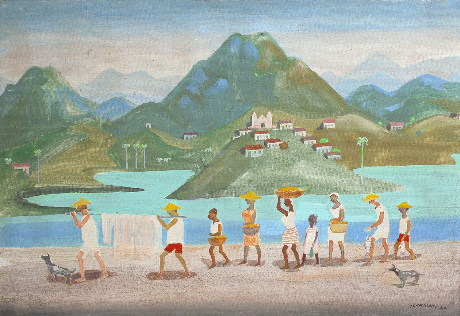 Fulvio Pennacchi - Vila de pescadores. Óleo sobre eucatex, 50x70 cm, 1980, A.C.I.E. e V. Com moldura