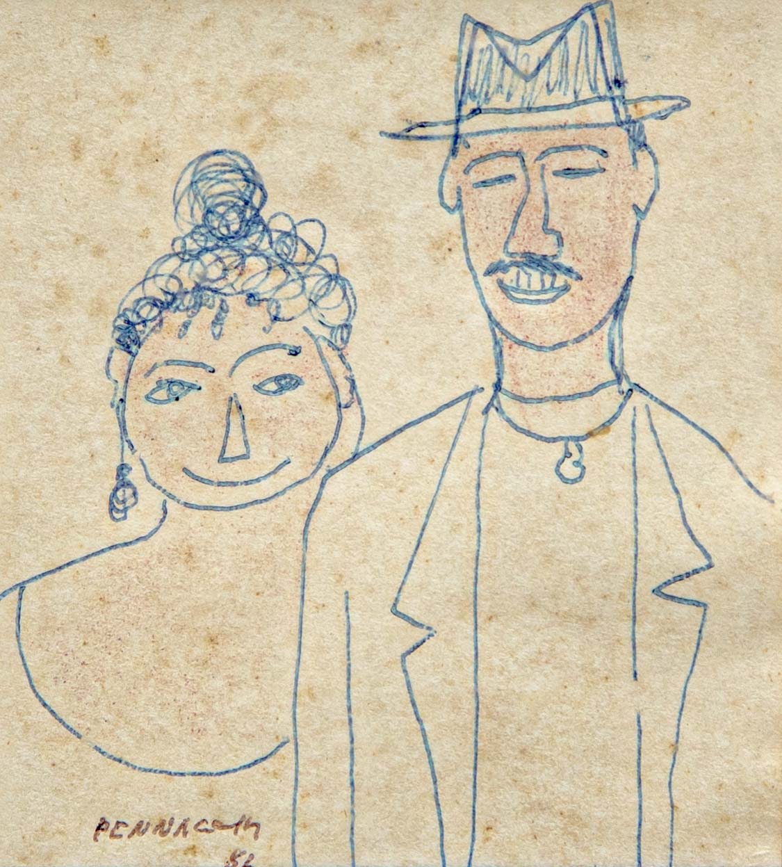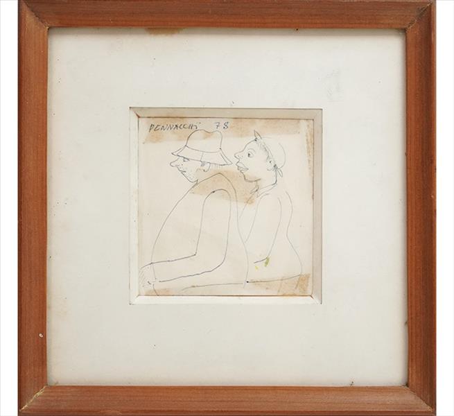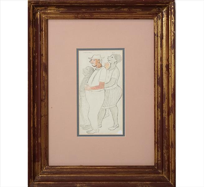 FULVIO PENNACCHI, Figuras, Desenho à Grafite, Crayon e Lápis de Cor sobre Papel, ACIE, 15 x 10cm (m.i). Datado 1959 (com vestígios de fungos)
