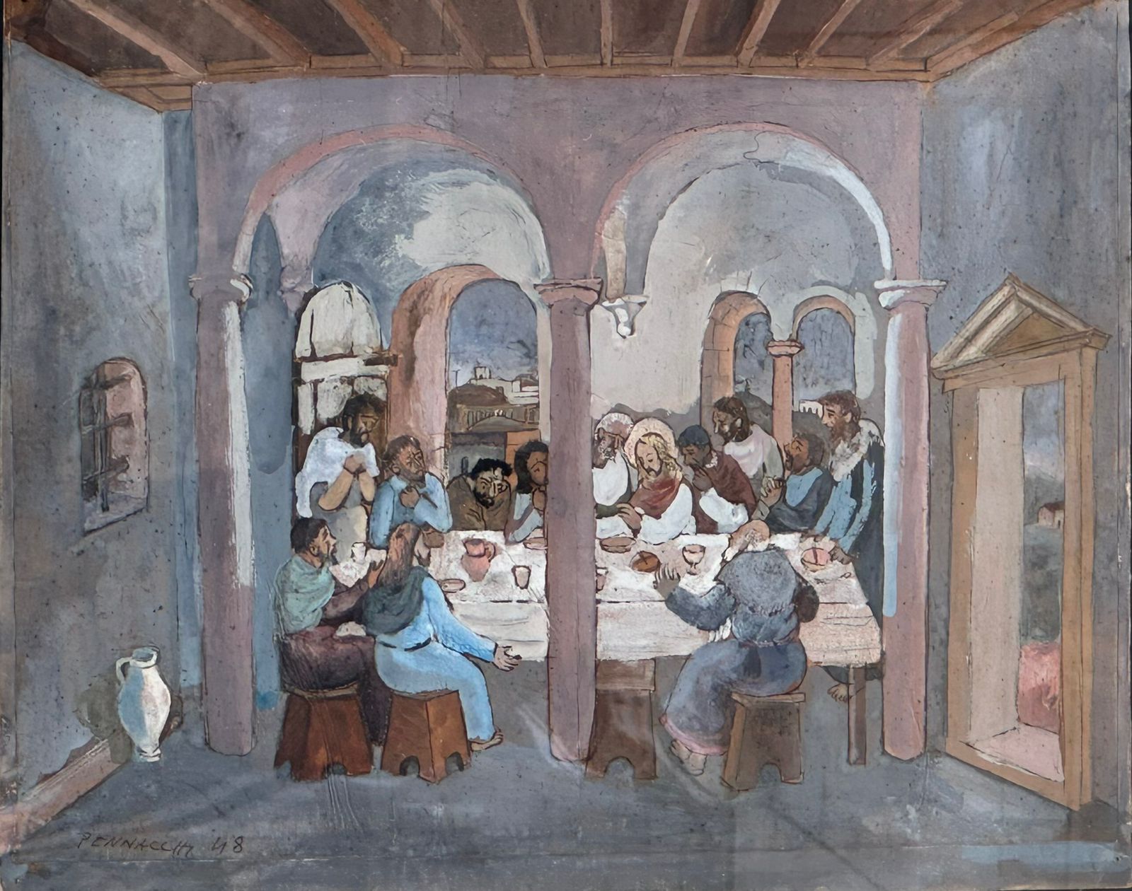 FULVIO PENNACCHI, Composição com Figuras, Técnica Mista sobre Papel, ACID, 10,5 x 13cm (m.i). Datado 1952
