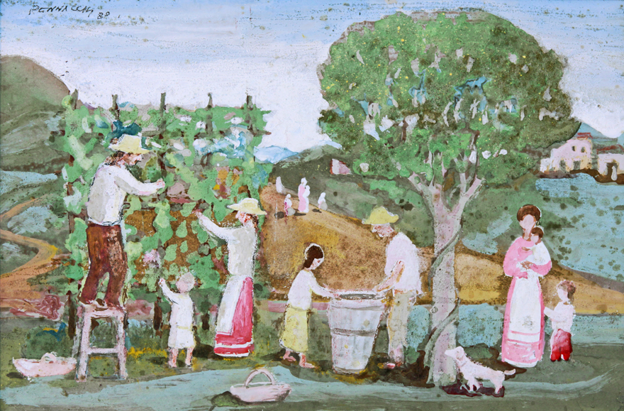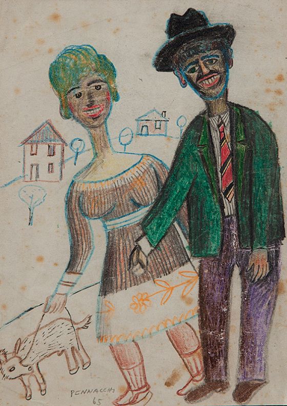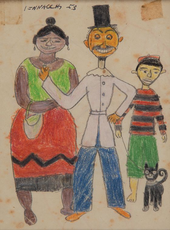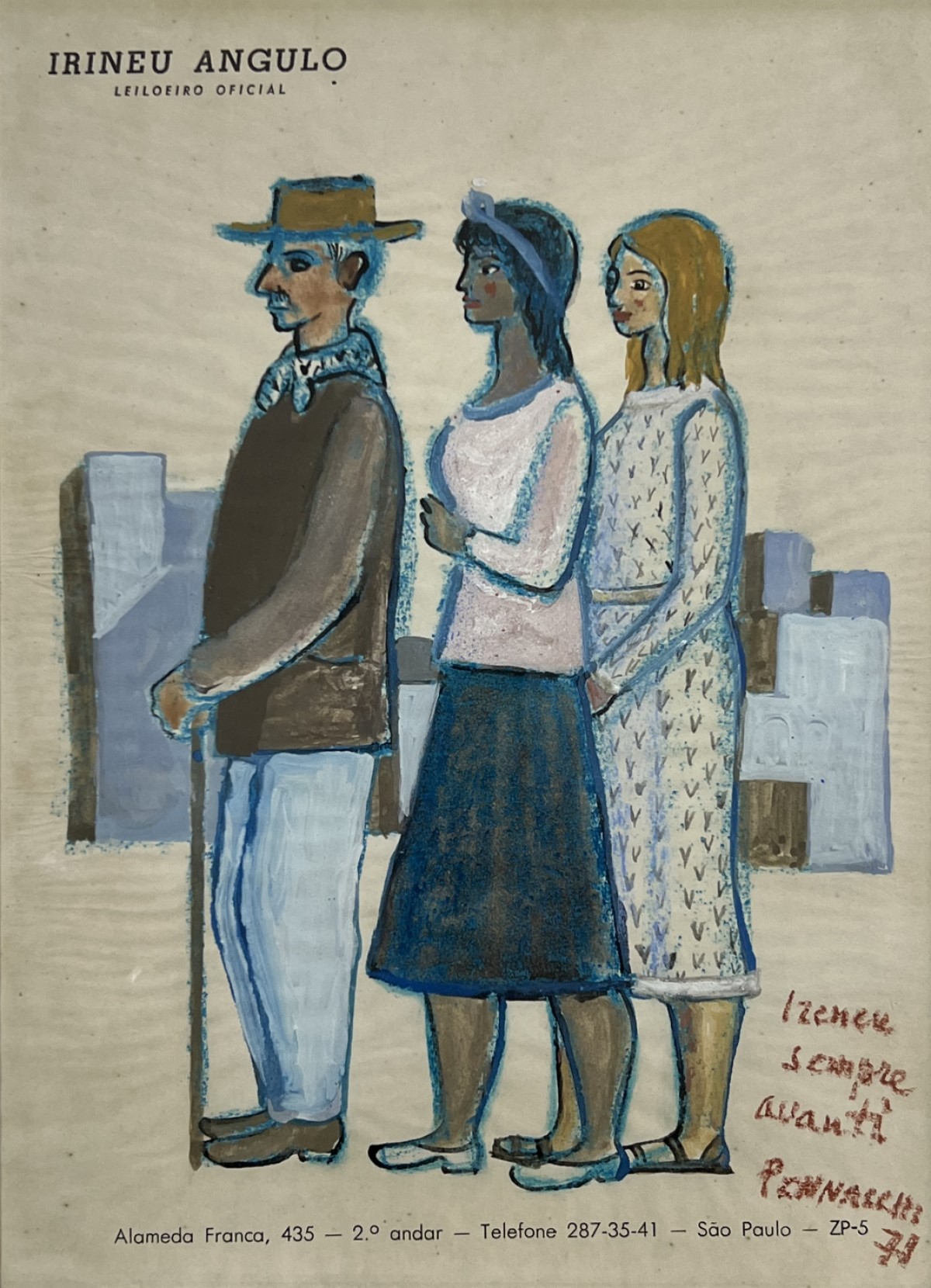 Fulvio Pennacchi - Família. Guache e giz de cera sobre papel, 29x21 cm, 1971, A.C.I.D. Com moldura