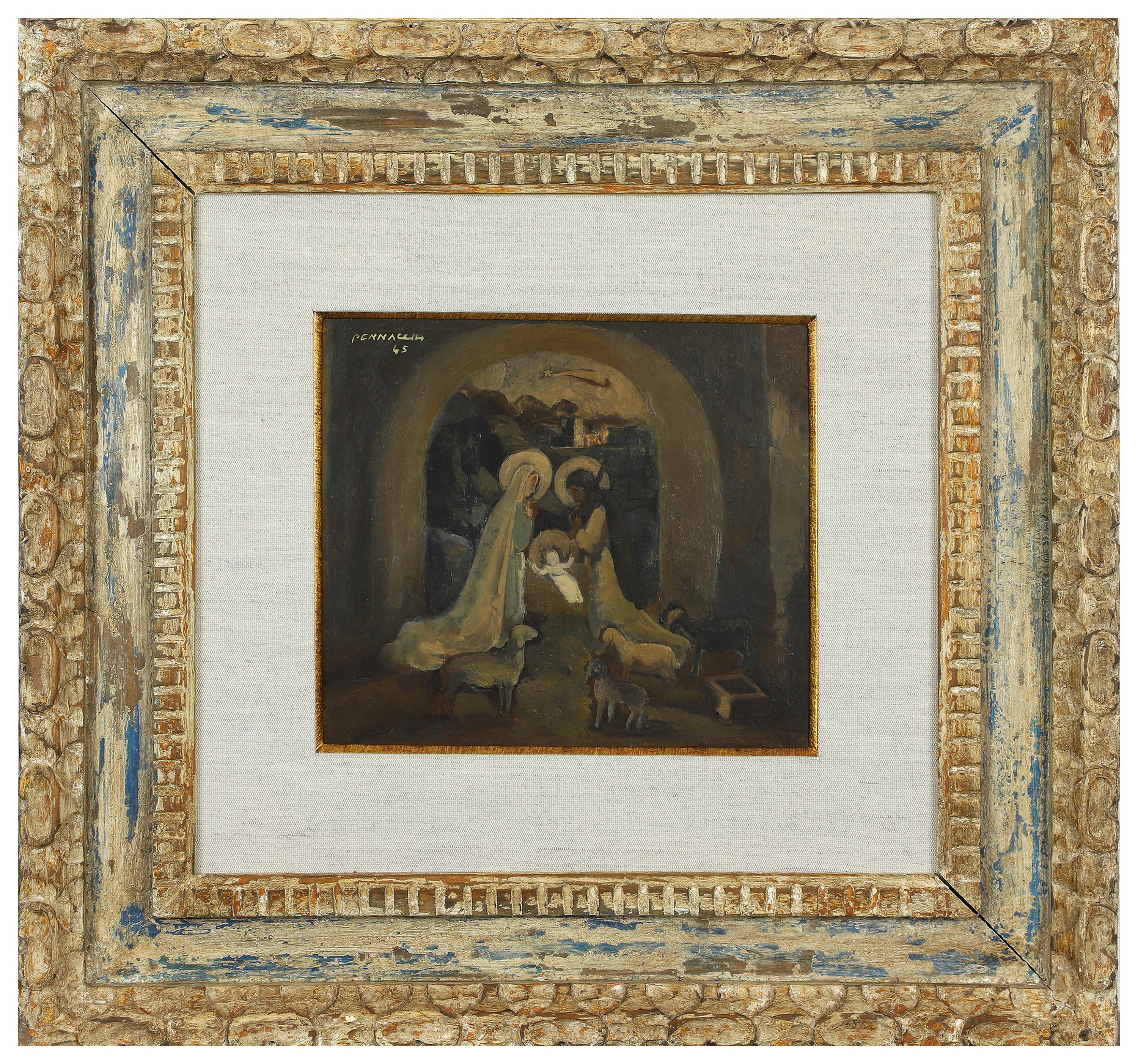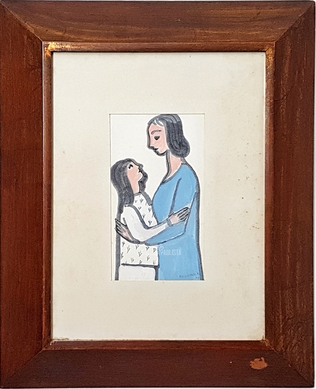 Fulvio Pennacchi - Maternidade. Óleo sobre cartão colado em eucatex, 55x39 cm, 1973, A.C.I.E. Com moldura