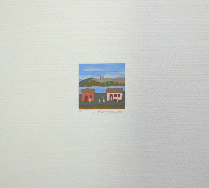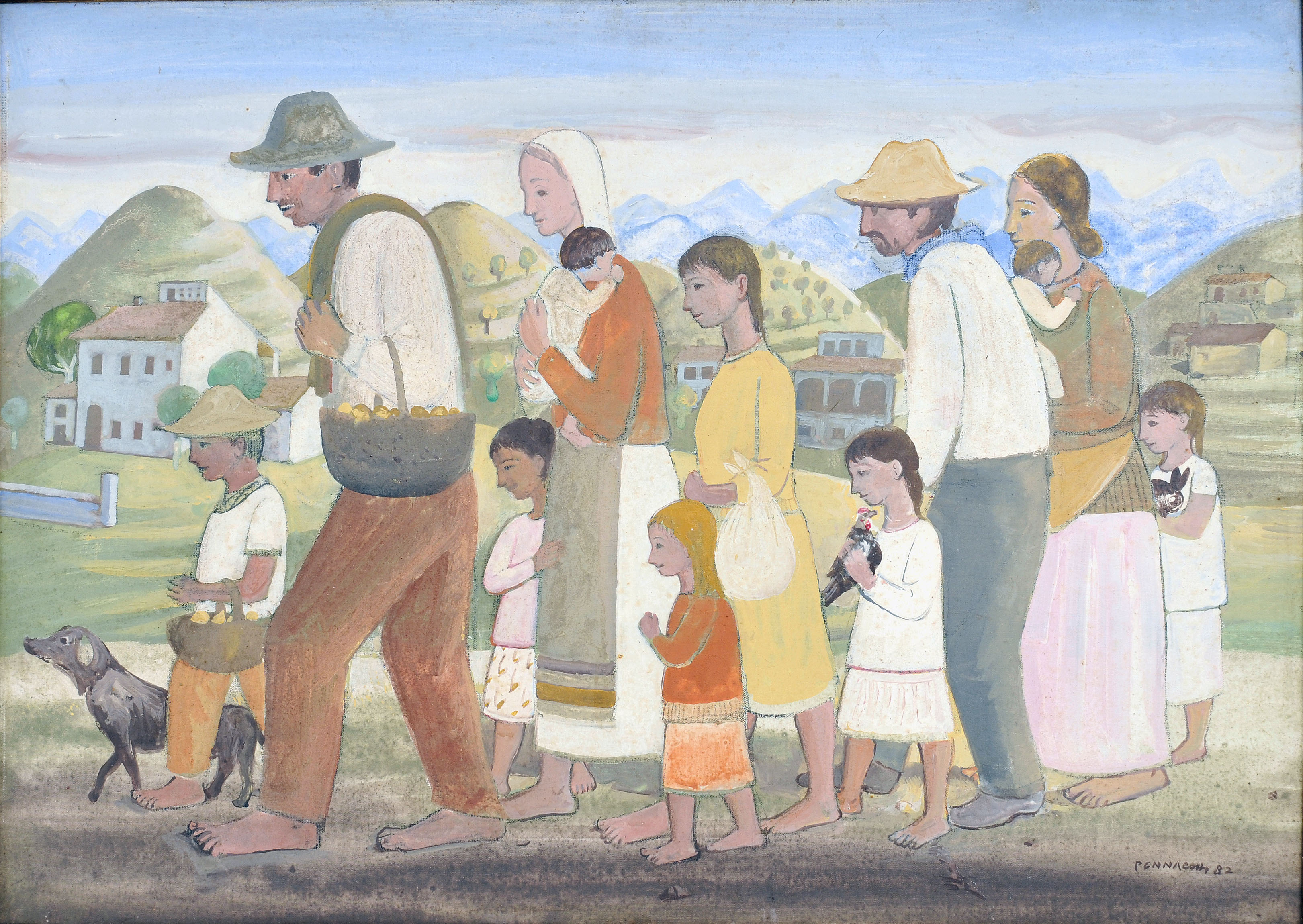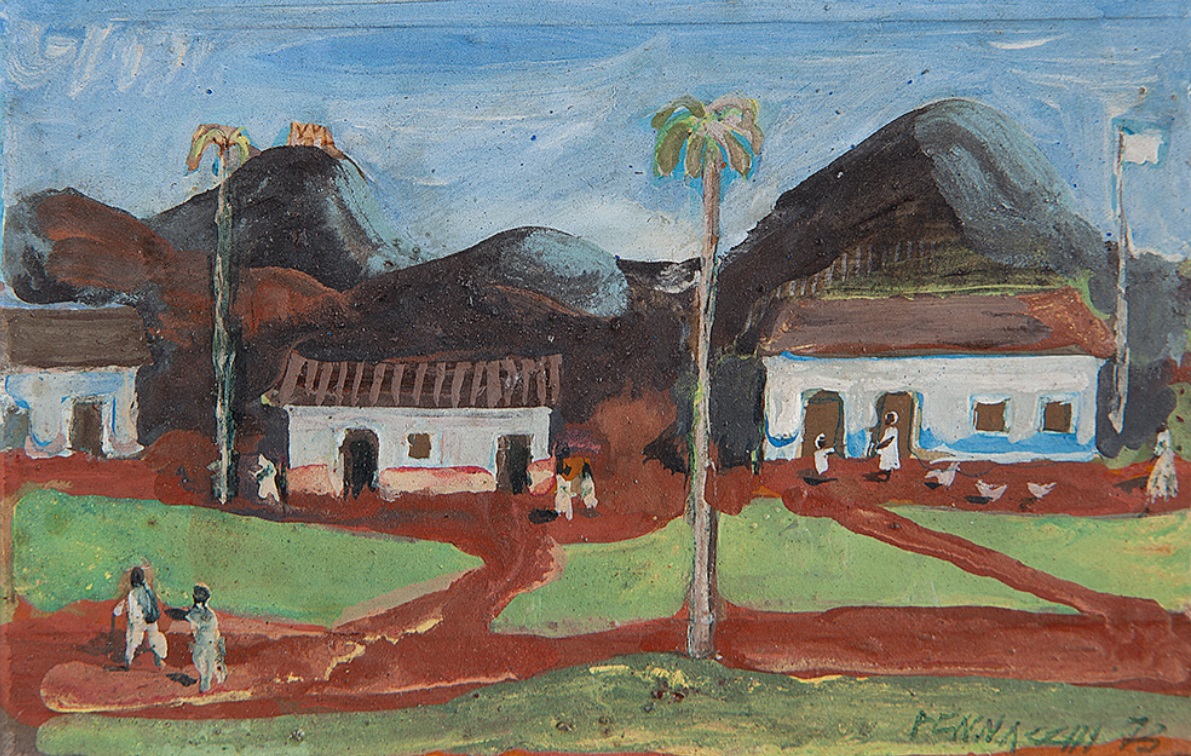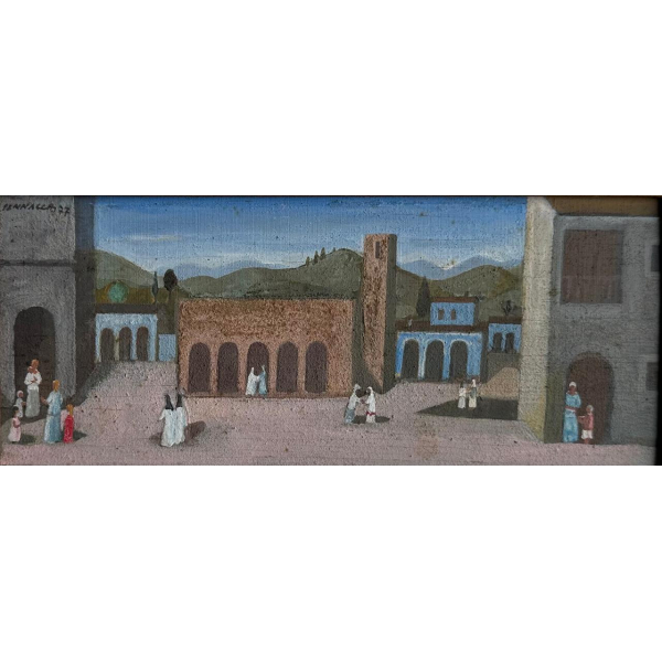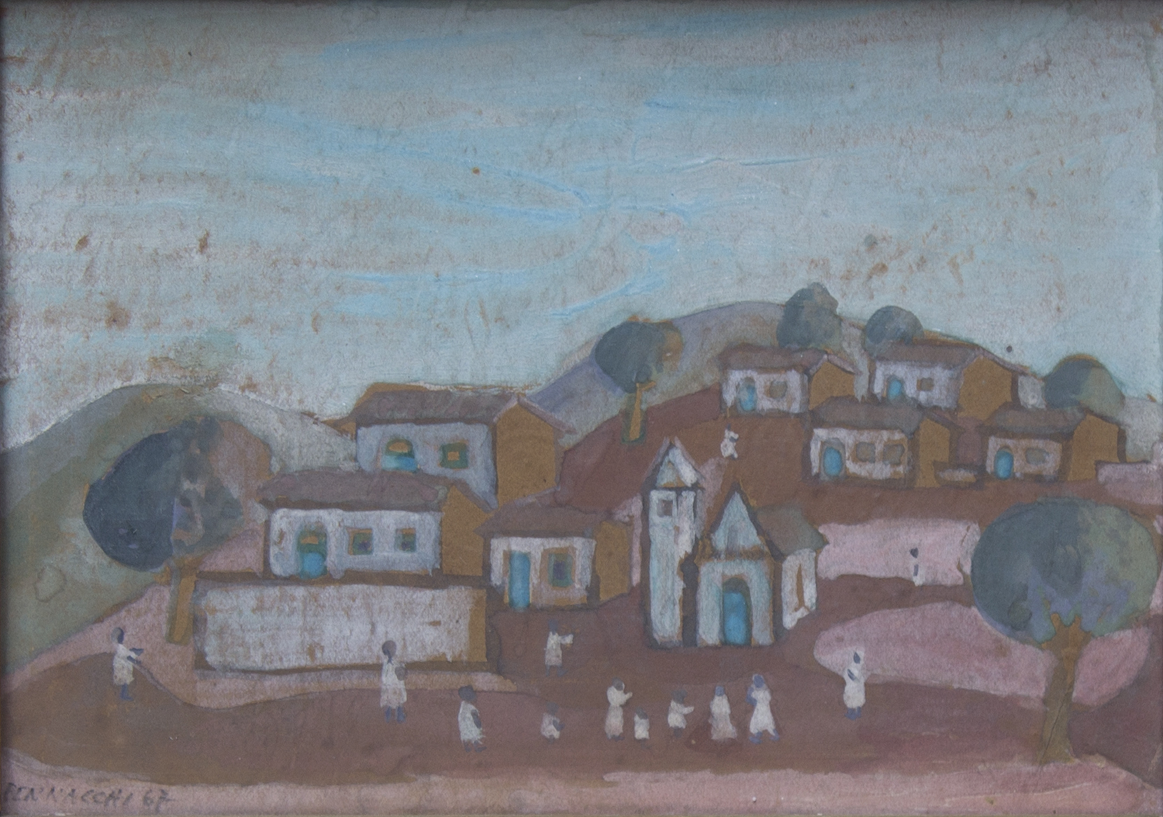 Fúlvio Pennacchi - Paisagem de Garfagnana, 1929 - Acrílica sobre cartão, assinado e datado inferior direito; assinado, datado e titulado no verso. Obra proveniente do espólio do artista. - 30 x 40 cm.
